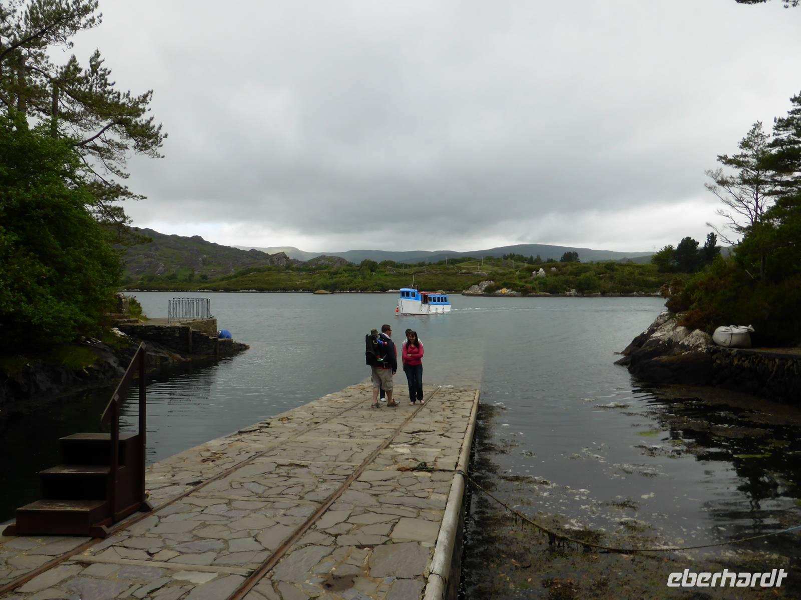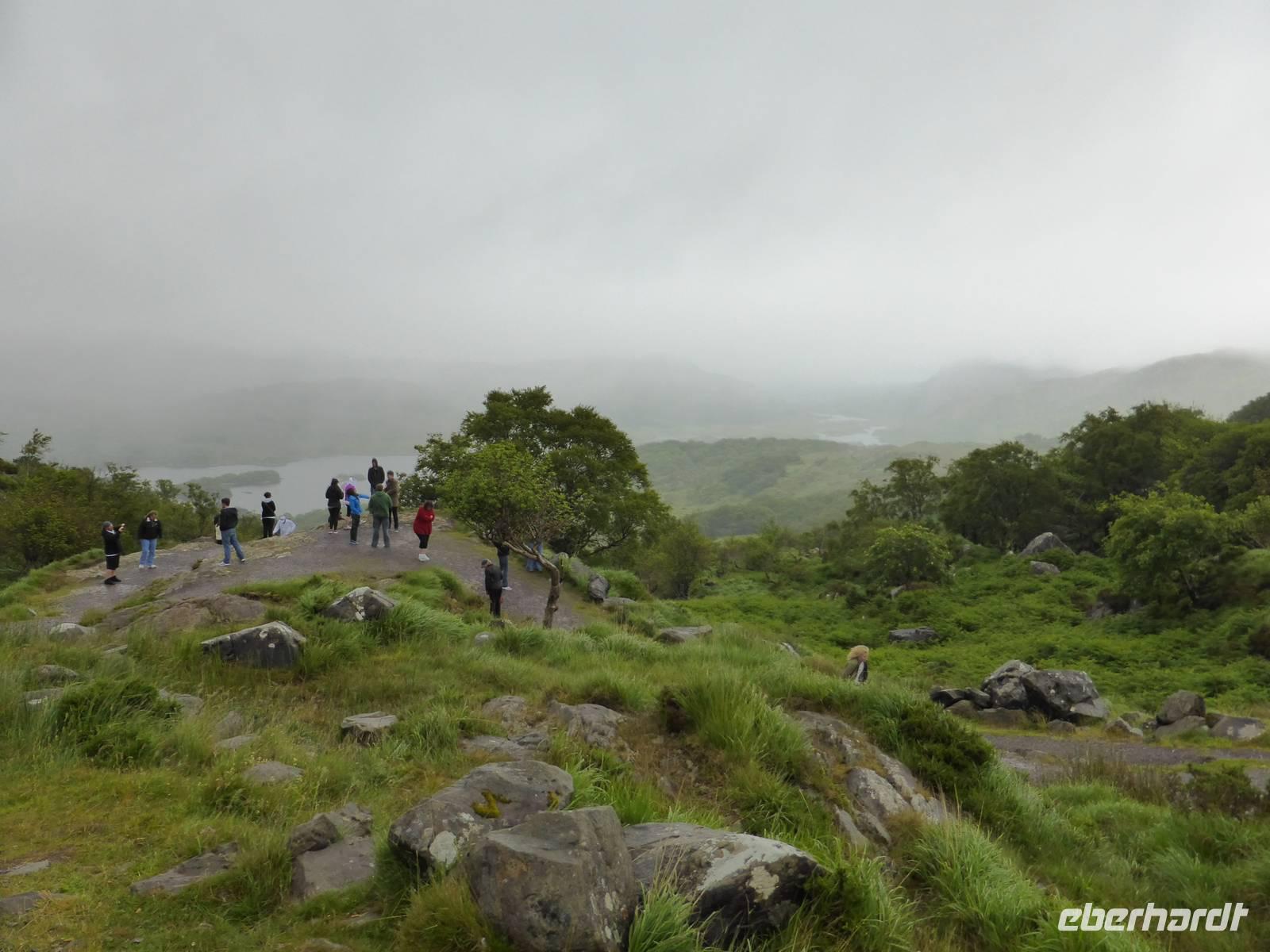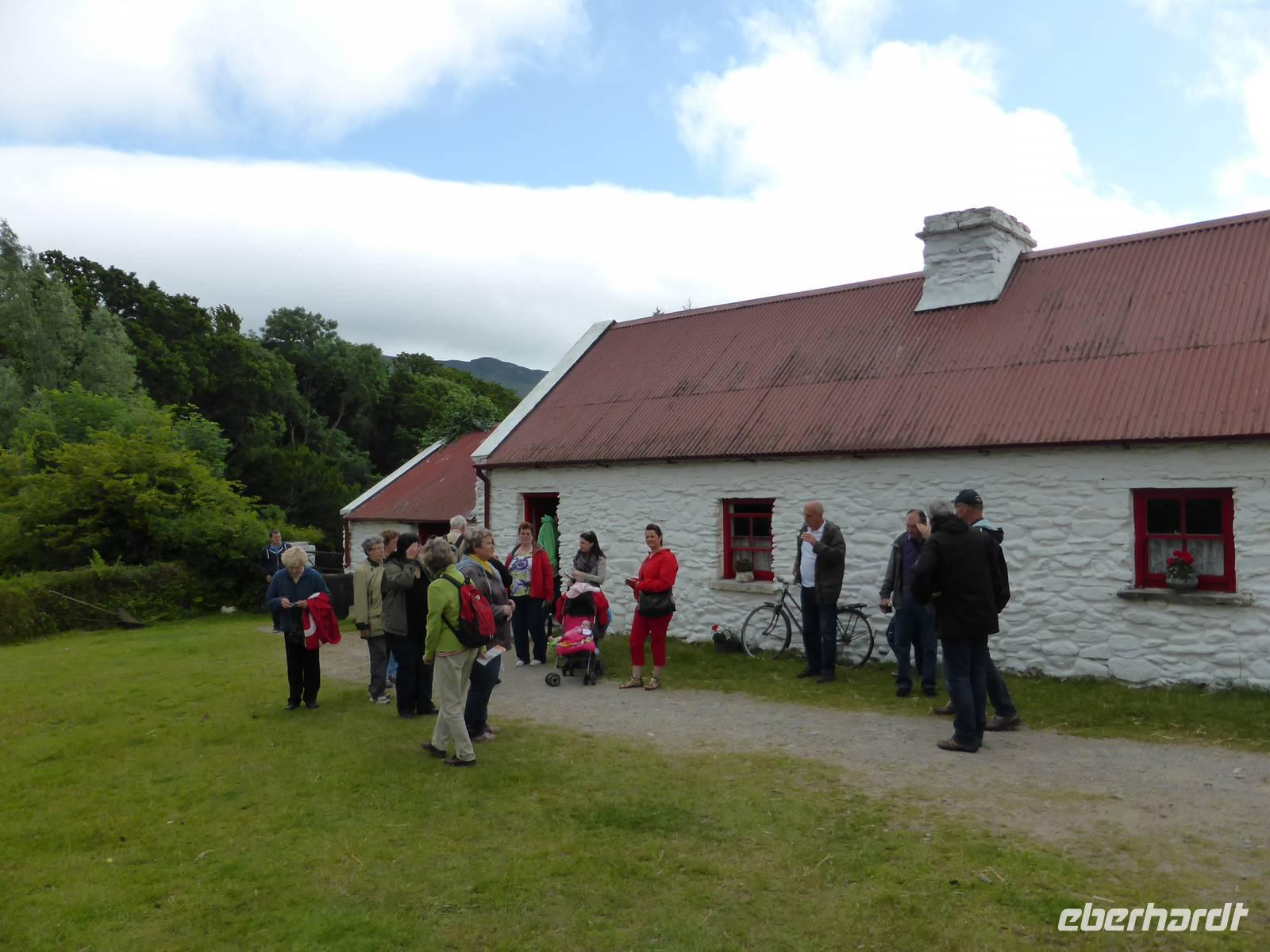 Nach dem Frühstück begann unser fakultativer Ausflug nach Garinish Island, an dem der größte Teil unserer Gruppe teilnahm. Den ersten Besichtigungsstopp legten wir bei Molly Callivan's Cottage ein. Molly war bekannt für das Brennen ihres Poitin- Whiskey. Anschließend ging es in den Hafen von Glengarriff zum Fährboot Harbour Queen. Auf unserer Fahrt zu der Insel Garinish Island fuhr der Kapitän langsam an den Felsbänken vorbei, damit wir die Seehunde gut sehen und fotografieren konnten. Nach der Ankunft auf Garinish Island gingen wir zum Italienischen Garten. Da das Wetter war gut war, aber kein Wind ging, bereiteten uns die kleine „Mitches" (Stechmücken) Probleme, indem es ständig am Kopf juckte. Wir spazierten durch ein tropisches Pflanzenparadies mit römischer Villa, Wehrturm und durch einen kleinen Botanischen Garten. In Glengarriff legten wir unsere Mittagspause ein und nutzten die Zeit für einen kleinen Stadtbummel. Unser Fahrer Olli, der Kevin an diesem Tag vertrat, hatte die Abfahrtszeit nicht richtig verstanden, so dass wir ein paar Minuten am Bus auf ihn warten mussten. Als er schließlich kam, wurde er mit einer Laola-Welle freudig begrüßt. Wir fuhren über den Ring of Beara zum Healy Pass (330 m) und hier hielten wir für zwei Fotostopps. Die Aussicht war trotz der eingeschränkten Fernsicht toll! Vom Pass aus fuhren wir über Kenmare, Molls Gap und Ladies View zur „Muckross traditional farm". Auf dem Gelände gibt es mehrere Bauernhäuser verschiedenster Größe zu sehen, vollgestopft mit nostalgischem Arbeitsgerät. Für diejenigen, denen der Spaziergang zu den einzelnen Gehöften zu anstrengend war, stand ein Bus-shuttle bereit. Anschließend ging es zurück zum Hotel. Nach dem Abendessen bestand in Killarney die Möglichkeit, die Veranstaltung „Celtic Steps" zu besuchen. Es war eine tolle Show!