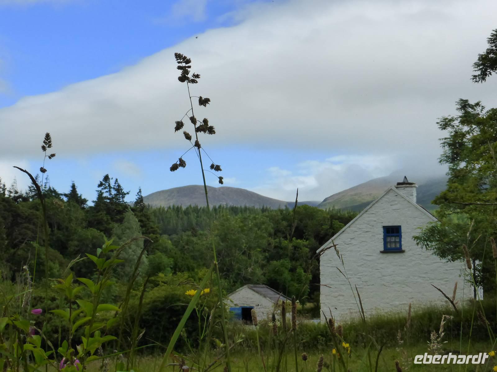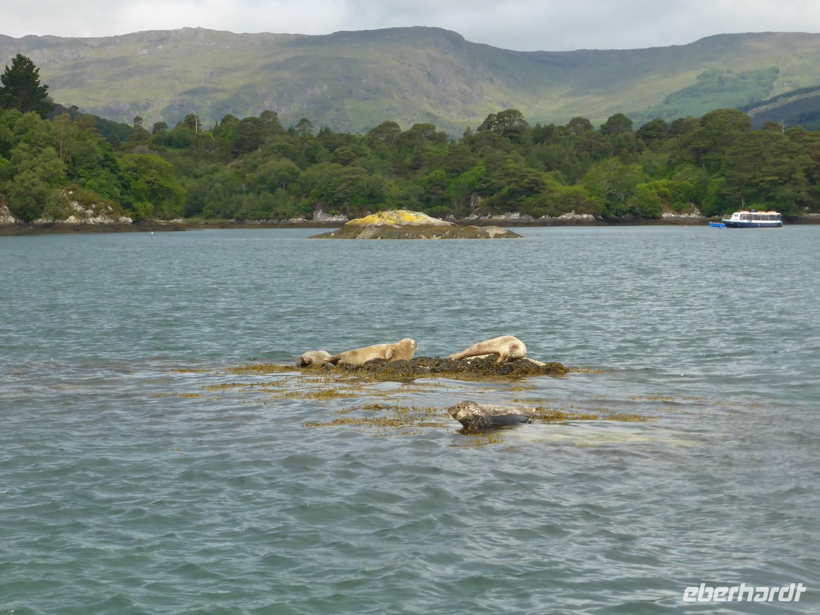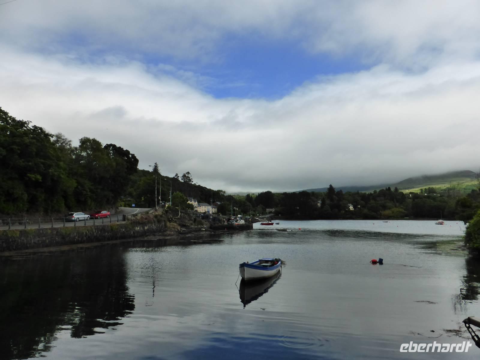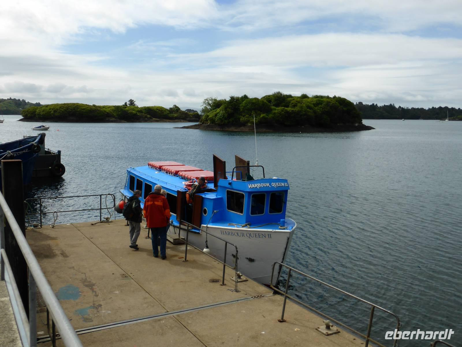 Nach dem Frühstück begann unser fakultativer Ausflug nach Garinish Island, an dem der größte Teil unserer Gruppe teilnahm. Den ersten Besichtigungsstopp legten wir bei Molly Callivan's Cottage ein. Molly war bekannt für das Brennen ihres Poitin- Whiskey. Anschließend ging es in den Hafen von Glengarriff zum Fährboot Harbour Queen. Auf unserer Fahrt zu der Insel Garinish Island fuhr der Kapitän langsam an den Felsbänken vorbei, damit wir die Seehunde gut sehen und fotografieren konnten. Nach der Ankunft auf Garinish Island gingen wir zum Italienischen Garten. Da das Wetter war gut war, aber kein Wind ging, bereiteten uns die kleine „Mitches" (Stechmücken) Probleme, indem es ständig am Kopf juckte. Wir spazierten durch ein tropisches Pflanzenparadies mit römischer Villa, Wehrturm und durch einen kleinen Botanischen Garten. In Glengarriff legten wir unsere Mittagspause ein und nutzten die Zeit für einen kleinen Stadtbummel. Unser Fahrer Olli, der Kevin an diesem Tag vertrat, hatte die Abfahrtszeit nicht richtig verstanden, so dass wir ein paar Minuten am Bus auf ihn warten mussten. Als er schließlich kam, wurde er mit einer Laola-Welle freudig begrüßt. Wir fuhren über den Ring of Beara zum Healy Pass (330 m) und hier hielten wir für zwei Fotostopps. Die Aussicht war trotz der eingeschränkten Fernsicht toll! Vom Pass aus fuhren wir über Kenmare, Molls Gap und Ladies View zur „Muckross traditional farm". Auf dem Gelände gibt es mehrere Bauernhäuser verschiedenster Größe zu sehen, vollgestopft mit nostalgischem Arbeitsgerät. Für diejenigen, denen der Spaziergang zu den einzelnen Gehöften zu anstrengend war, stand ein Bus-shuttle bereit. Anschließend ging es zurück zum Hotel. Nach dem Abendessen bestand in Killarney die Möglichkeit, die Veranstaltung „Celtic Steps" zu besuchen. Es war eine tolle Show!