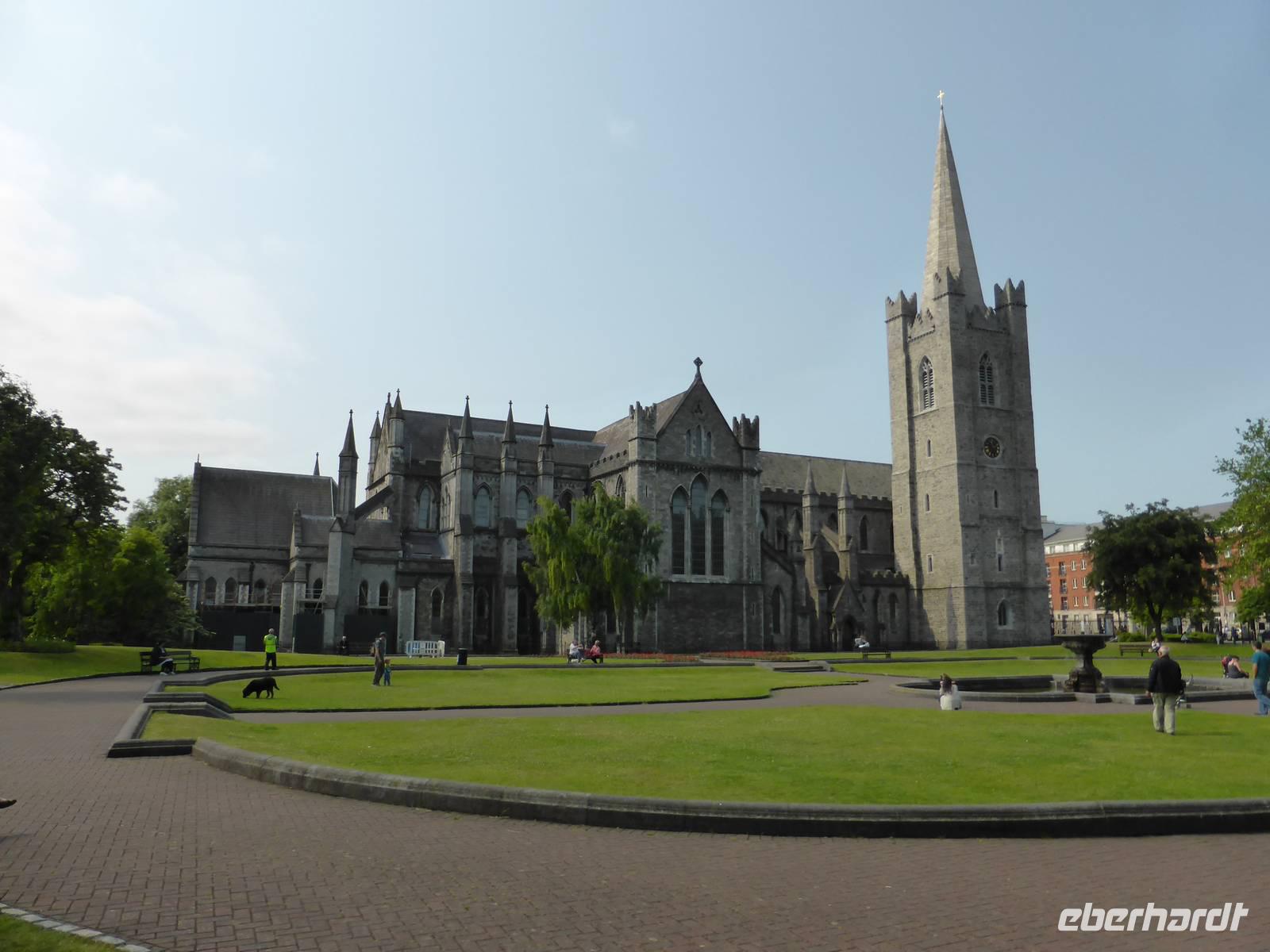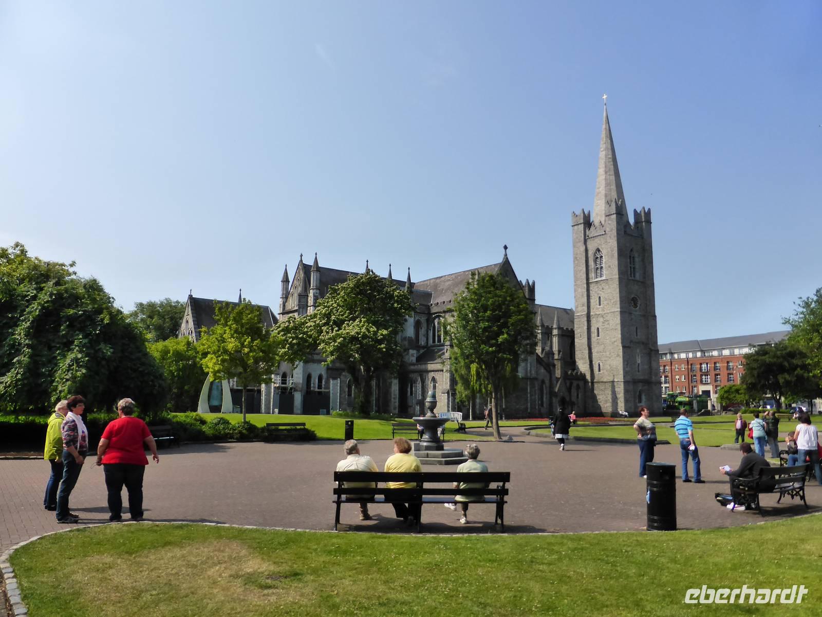 Vor dem Hotel begrüßte uns am Morgen unser Stadtführer Sean zur gemeinsamen Stadtrundfahrt. Zuerst fuhren wir zum Merrion Square und spazierten zum Denkmal von Oskar Wilde. Auf dem Rückweg zum Bus fotografierten wir die farbigen Eingangstüren der georgianischen Häuser. Anschließend ging es entlang des Flusses Liffey zum Phoenix Park, wo wir eine kleine Pause einlegten. Unser nächster Halt war an der St. Patrick's Cathedral. Die Kathedrale ist die größte Irlands und im Inneren befindet sich das Grab des Schriftstellers Jonathan Swift (1667-1745), des Schöpfers von „Gullivers Reisen". An der Innenmauer des kleinen Parks konnten wir die zwölf Gedenktafeln sehen, die zu Ehren irischer Schriftsteller in die Mauer eingelassen wurden. Von der St. Patrick's Cathedral fuhren wir zur Daniel O. Connell-Street, wo Sean seine Stadtführung beendete und einige unserer Gäste auch gleich ausstiegen. Anschließend ging es zurück zum Hotel. Der Nachmittag war frei für eigene Entdeckungen und Erkundungen in Dublin.