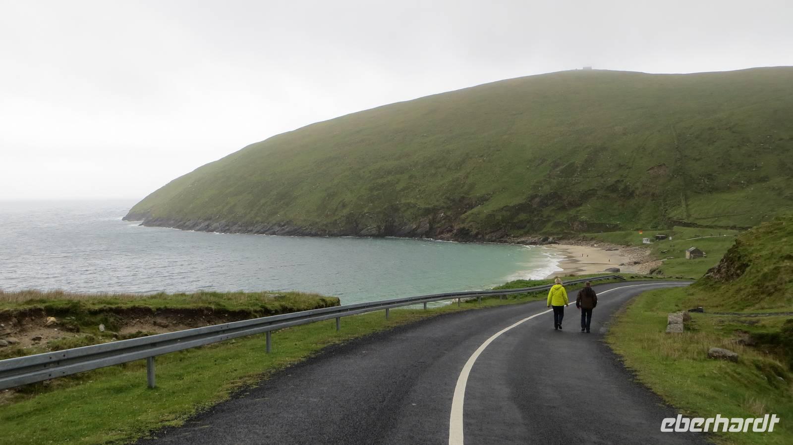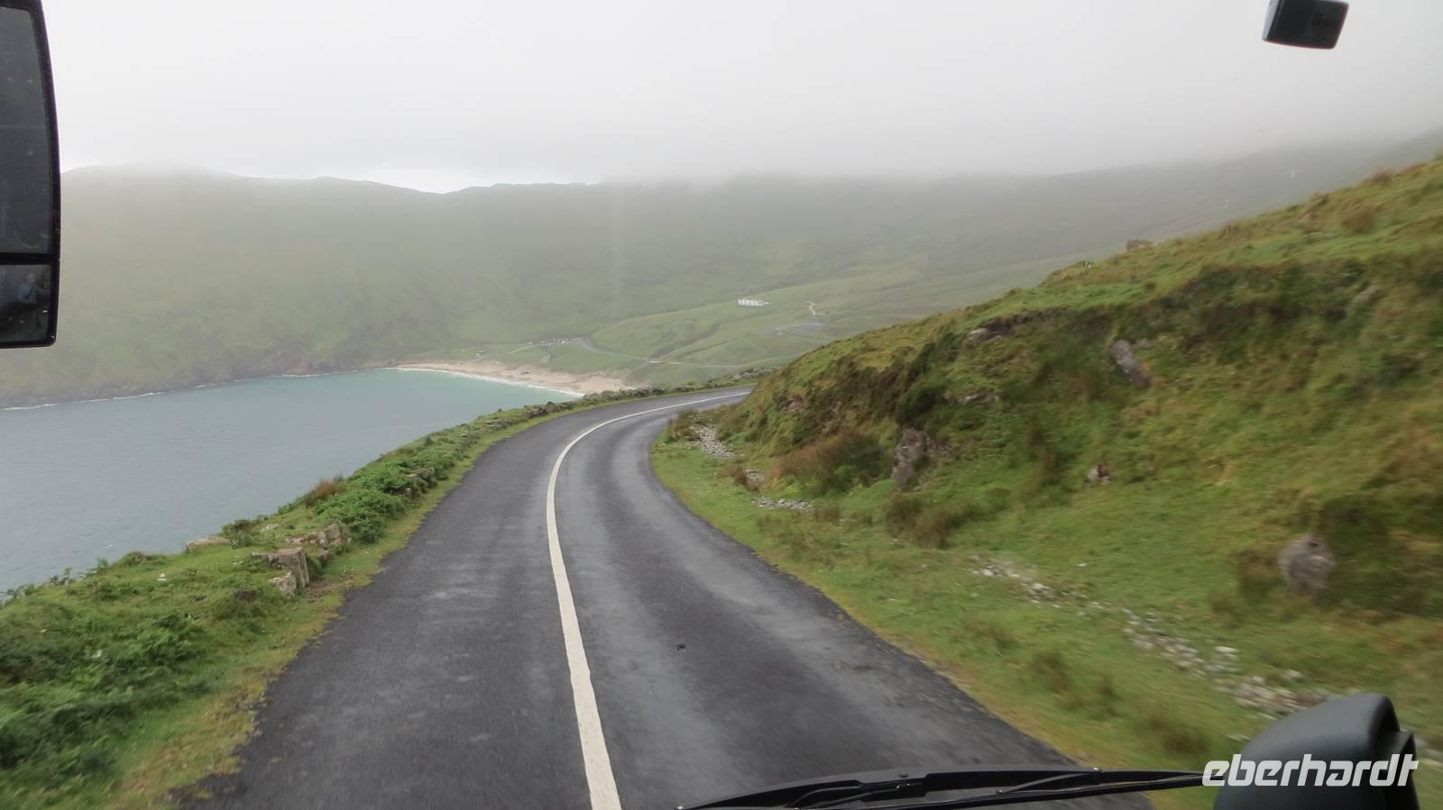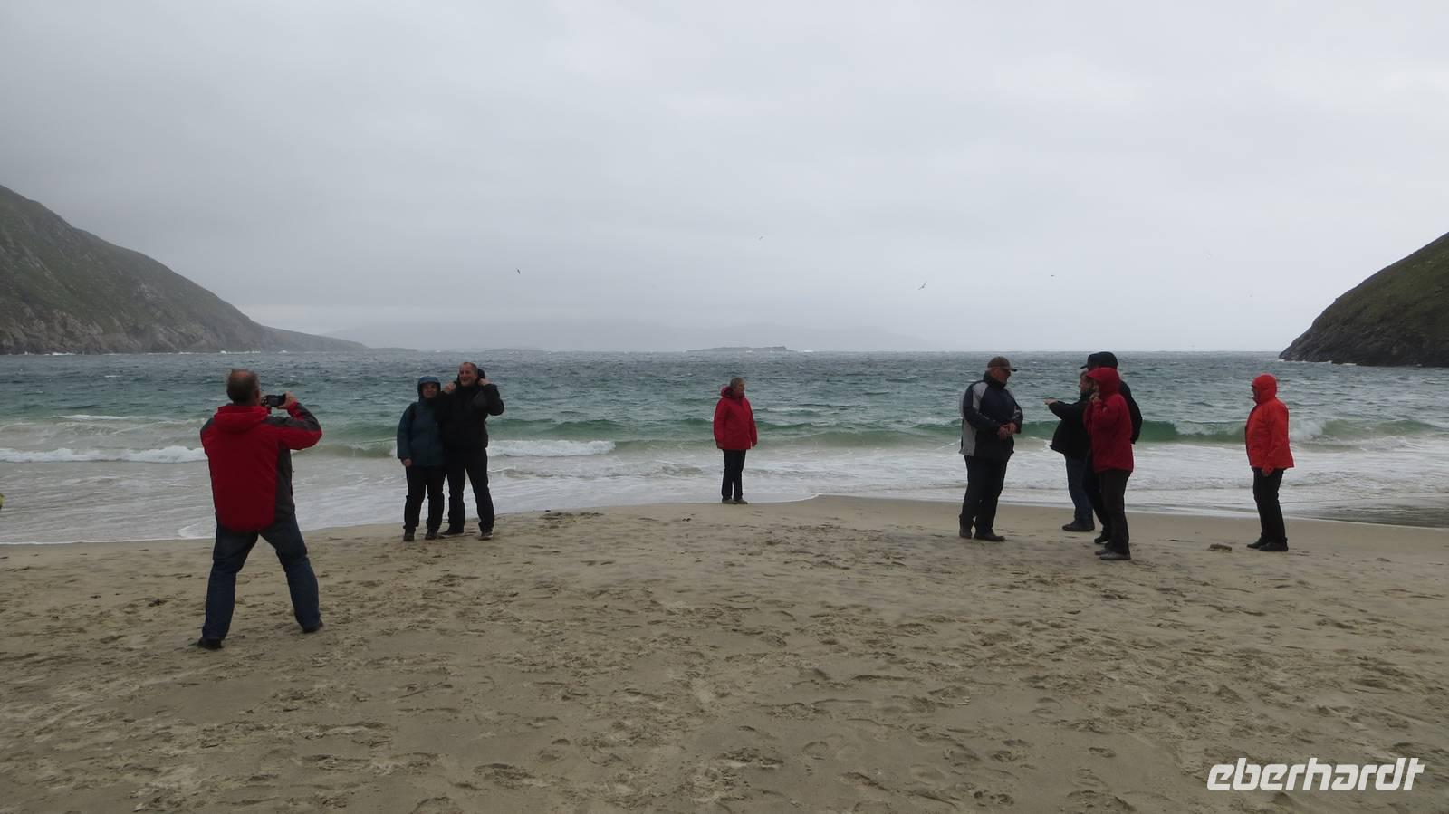 Nach einem Mittagsimbiss führt uns die Fahrt quer durch Mayo, zur Achill Island, Irlands größter Insel! Wir machten am herrlichen Strand von Keem Bay einen Stopp, allerdings läd das Wetter heute nicht zum Baden ein. Es ist stürmisch und eben irisch. Durch die einsame Landschaft fahren wir wieder zurück nach Ballina.