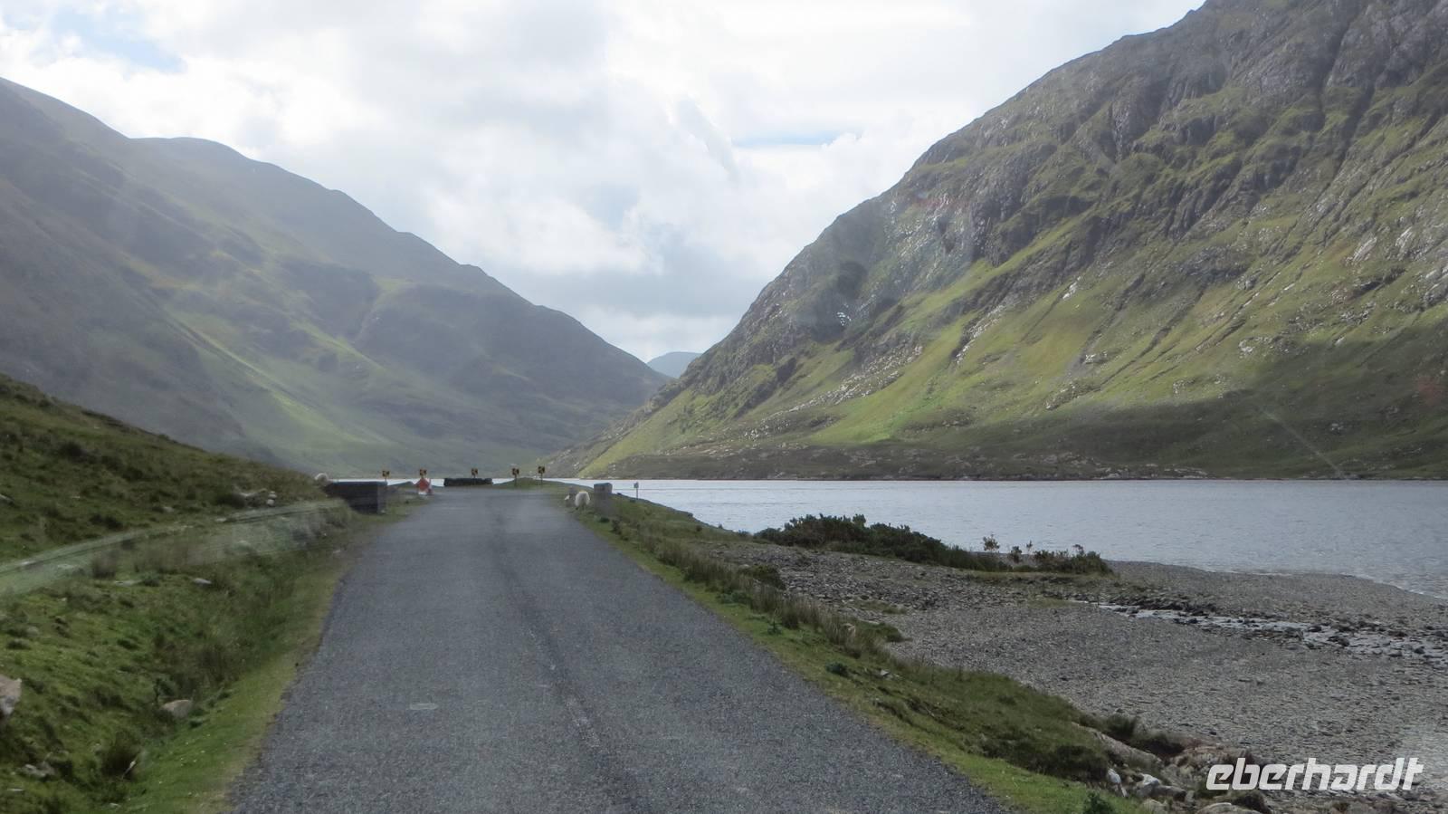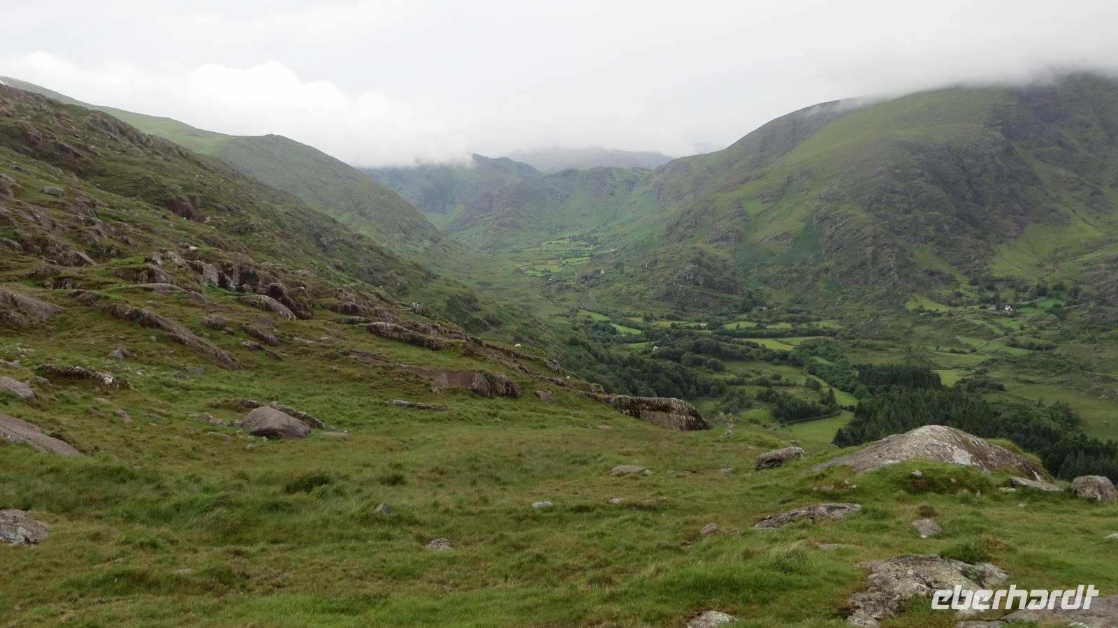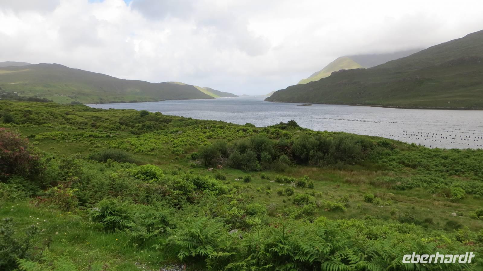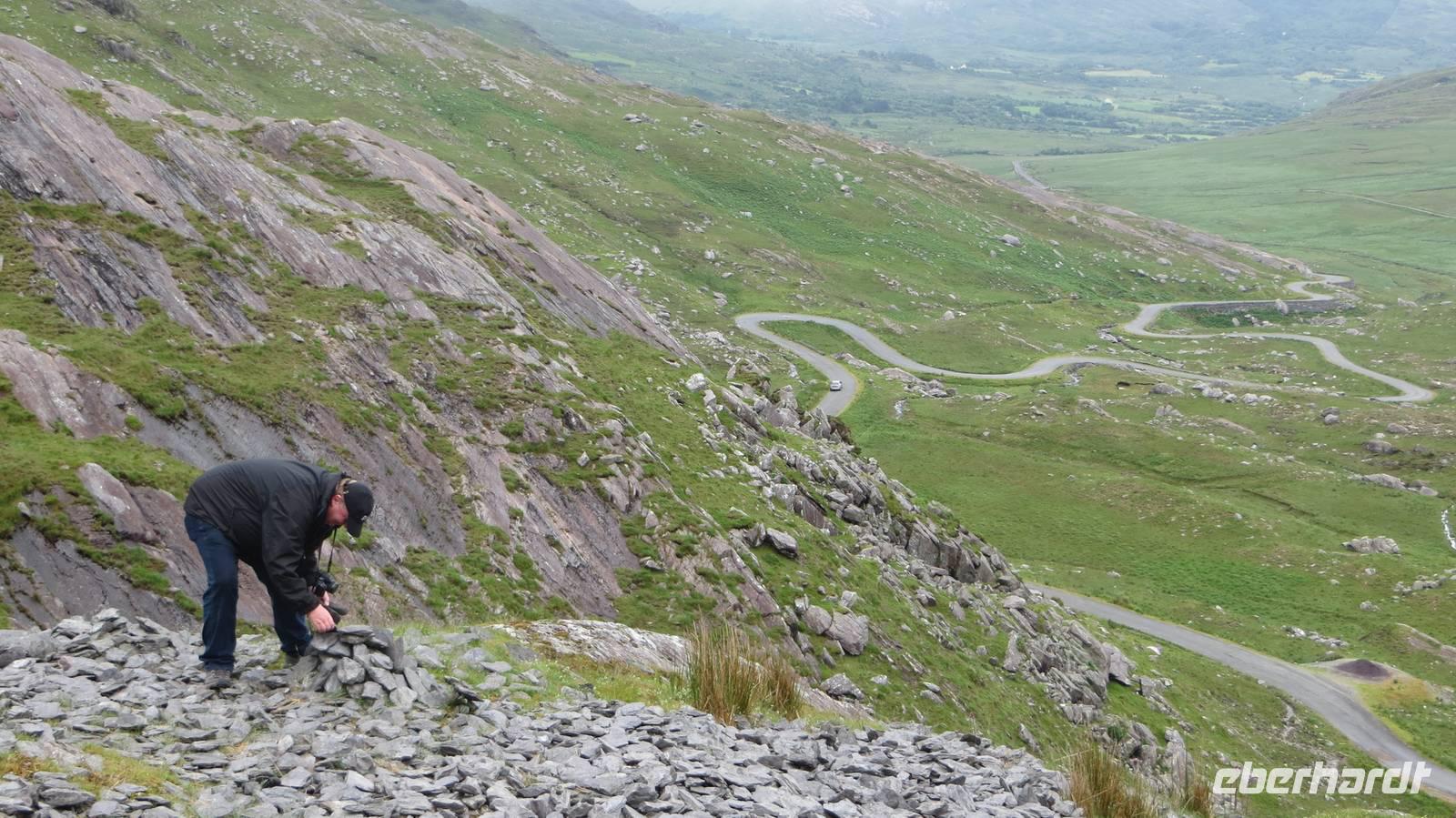 Über Kenmare fahren wir auf die Beara Halbinsel. Ein Stück geht es über die Küstenstraße auf dem Ring of Beara, und dann durch die Berge über den Healy Pass Richtung Glengarriff. Eine kleine Wanderung über den 334 m hoch gelegenen Pass lässt uns die Aussichten genießen, bei schönem Wetter sicher noch imposanter.