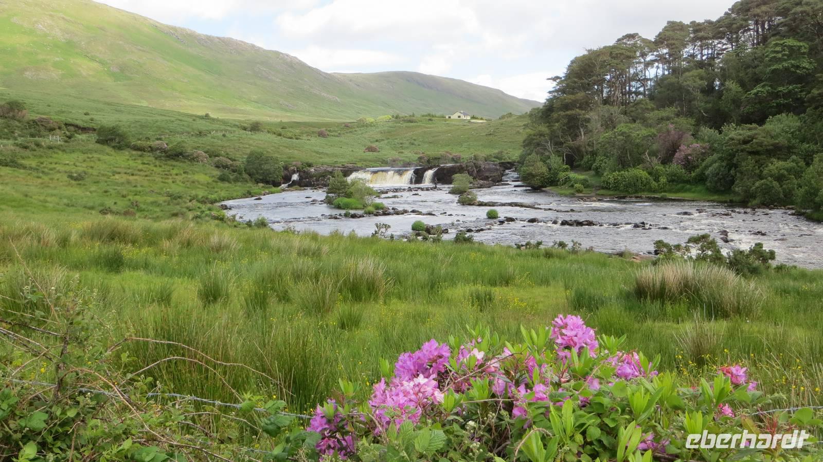 Hinter Westport stoppen wir an Irlands heiligem Berg, dem Croagh Patrick und fahren weiter durch das idyllische Tal von Delphi mit kleinen Seen. Natürlich sind Fotostopps angesagt, um die Natur auch mal zu erfühlen, nicht nur vom Bus aus zu betrachten. Auch am Aasleagh Wasserfall und am Killary Harbour, dem einzigen Fjord Irlands, machen wir Fotos. Aber das graue Wetter macht die Fotografen nicht so ganz glücklich. Wir besichtigen die Schlossanlage Kylemore Abbey mit der Klosterkirche und dem herrlich angelegten Garten.