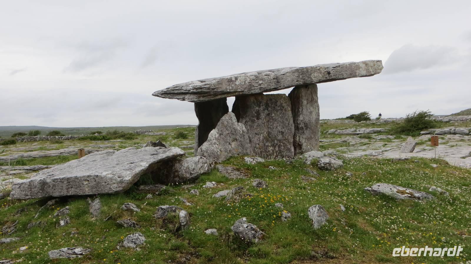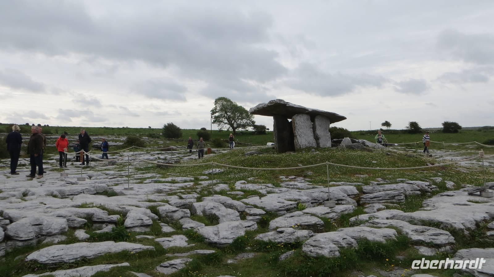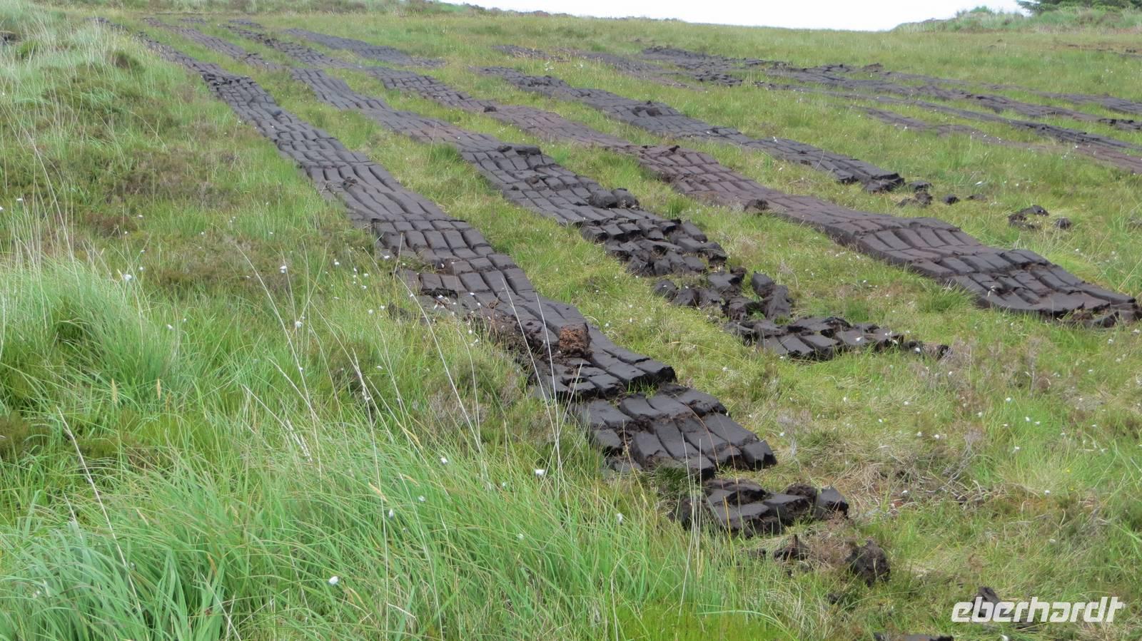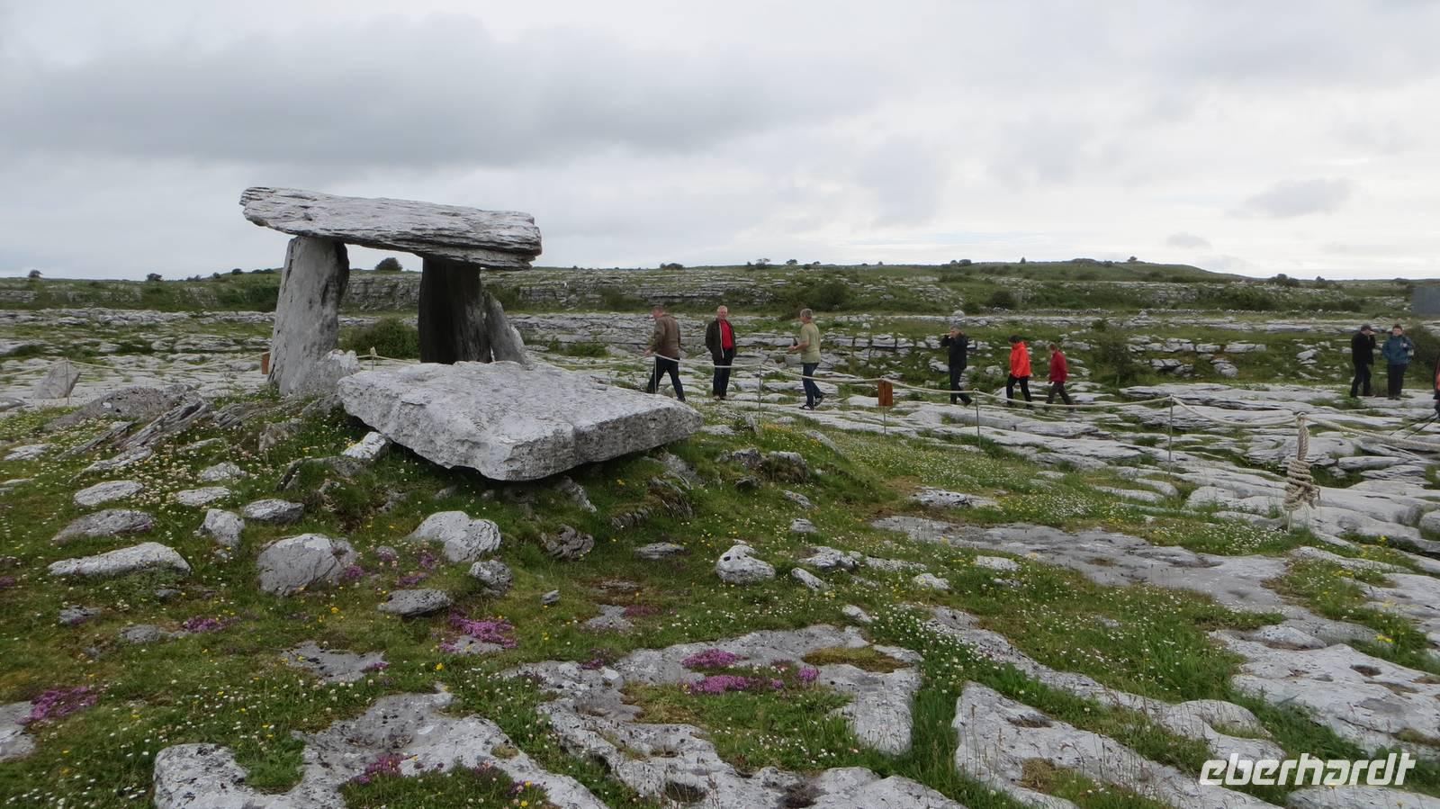 Der Bus bringt uns weiter durch die karge eigenartige Karstlandschaft des Burren. Wir schauen uns Irlands schönstes Megalithgrab den Poulnabrone Dolmen an. Sein Foto darf in keinem Reisebericht über Irland fehlen. Da das Wetter trocken bleibt, treffen wir uns mit Joe, um in seinem Moor etwas über die Arbeit des Torfstechens zu erfahren und sogar selbst Hand anzulegen. Gar nicht so leicht, stellen wir fest!