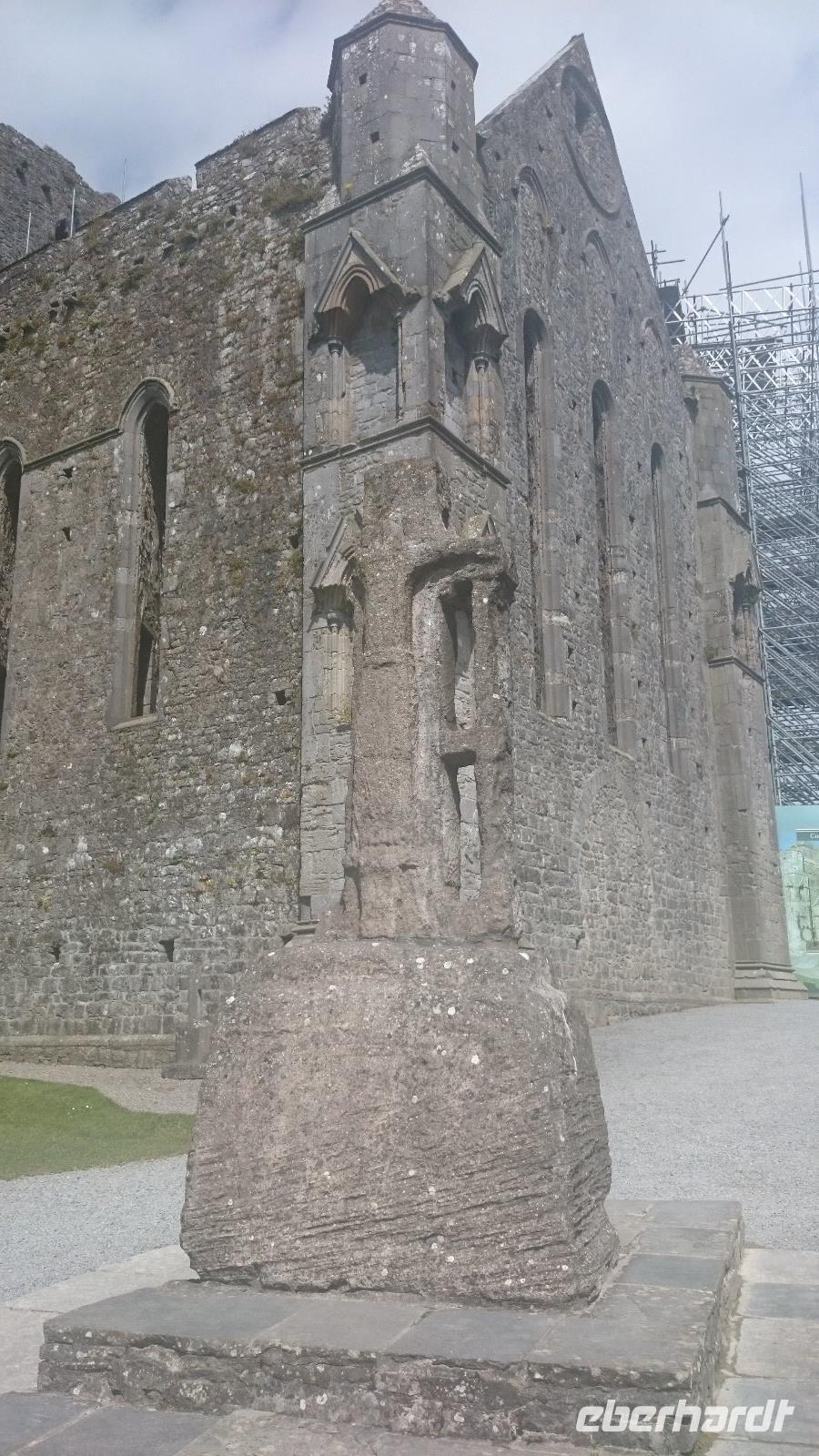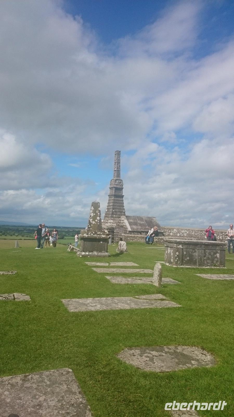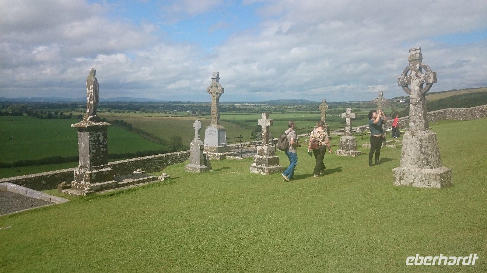 Nur knapp zwei Stunden beträgt die Flugzeit von Berlin nach Dublin. Am Meetingpoint werden wir bereits von unserem irischen Chauffeur Bill erwartet. Auch die Gäste aus dem Saarland waren für die Weiterfahrt bereit. Schnell wurde das Gepäck im Bus verstaut und schon waren wir Richtung Rock of Cashel unterwegs. Den kulturellen Auftakt für unsere Reise durch Irland bildete der Besuch von Rock of Cashel. Direkt am Eingang werden wir von St. Patrick, dem Schutzheiligen Irlands begrüßt. Auf dem Areal der Kirchen- und Klosteranlagen hat man einen wunderbaren Ausblick in die weite Ebene im Landesinneren Irlands.