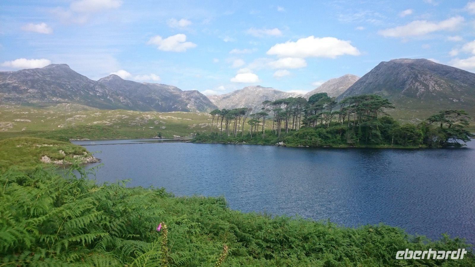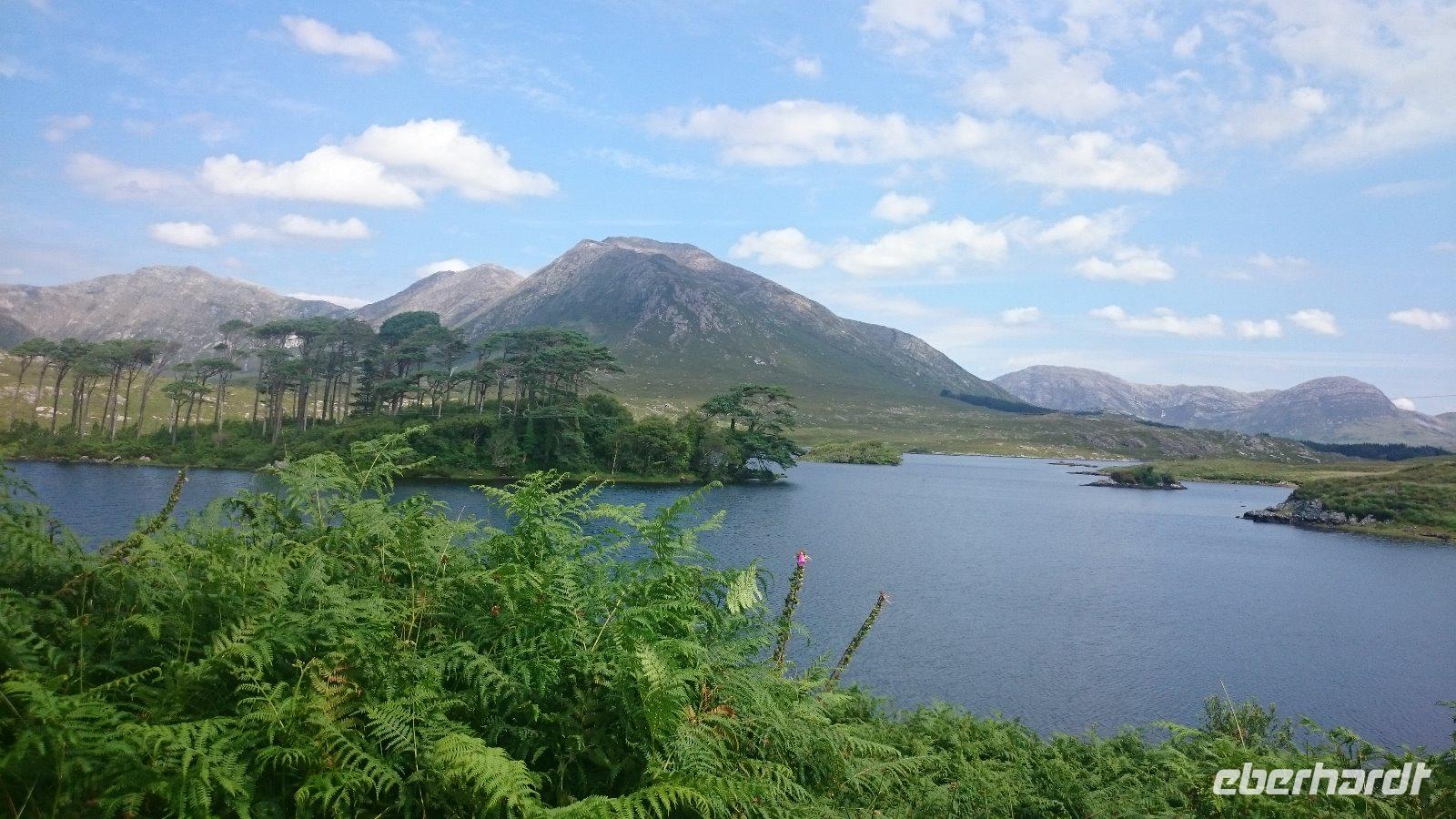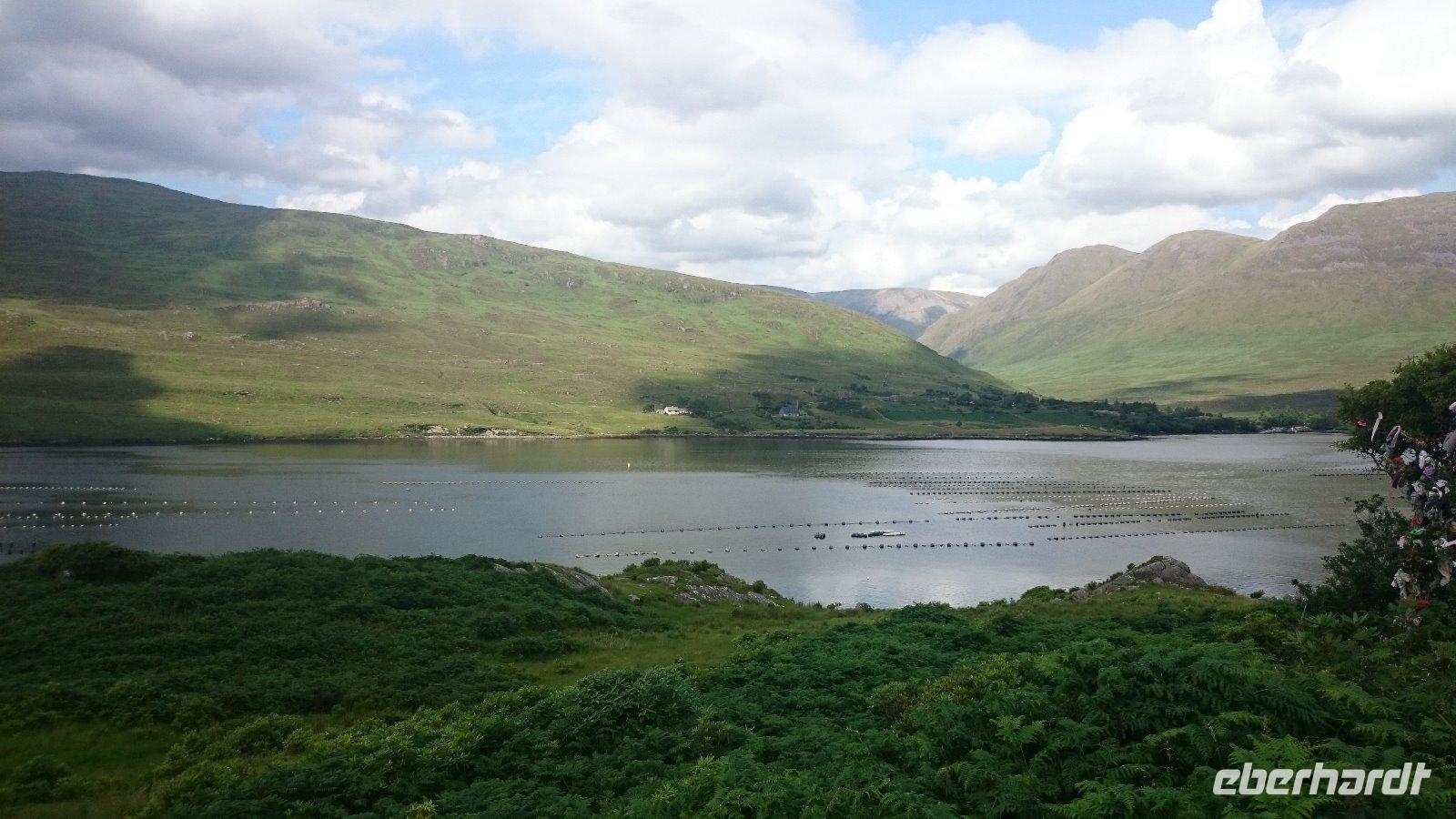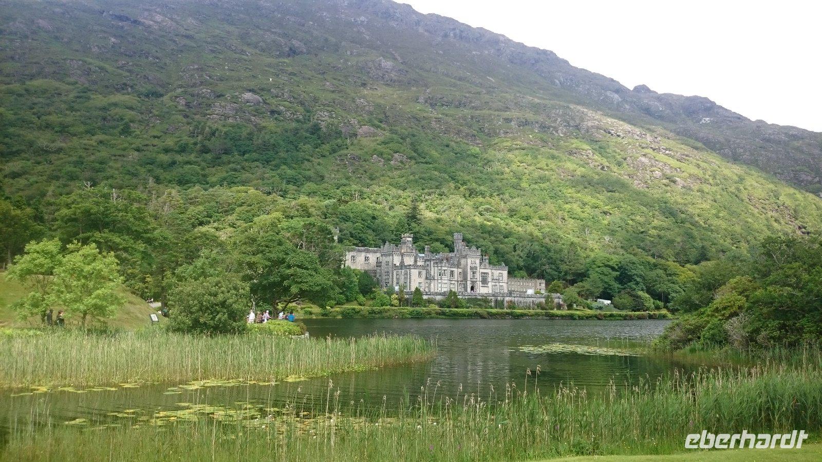 Die Sonne war nun zu unserem ständigen Begleiter geworden. Ein guter Grund, den Tag mit einem Spaziergang an der Promenade von Saltyhill in Galway zu beginnen. Vom Geldautomaten bis zum starken Cafe konnte man alles finden, was für einen guten Start in einen schönen Urlaubstag notwendig war. Laut Wetterbericht erwarten uns heute 30 Grad C - für Irland völlig untypische Temperaturen. Auch die Klimaanlage unseres Busses scheint nicht auf solche Hitzeperioden eingestellt. Also erzeugen wir die Kühle durch viele Fotostopps. Die dramatischen Landschaftsbilder braucht man nicht lang zu suchen. Grüne Wiesen, glänzende Seen und Bäche vereinen sich auf den Fotos mit schroffen Bergen im Hintergrund. Und ob der Nebel am Horizont wirklich Nebel war oder doch eher der Schleier einer guten Fee - wer weiß das schon so genau. Wir wissen, dass die Connemara Region ein exklusives Abenteuer in Europa ist, von dem man einfach nicht genug kriegen kann. Selbst Kylemore Abbey - ursprünglich ein Schloss aus dem 19. Jahrhundert - taucht auf wie ein Wunder in einer sonst eher einsamen Landschaft.