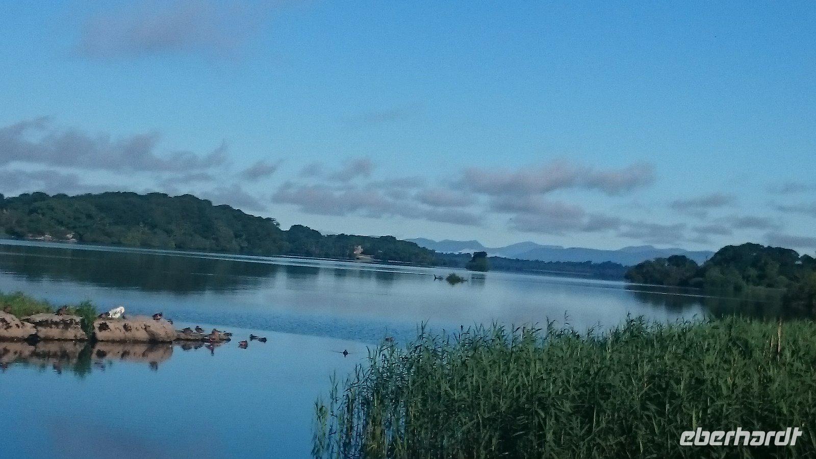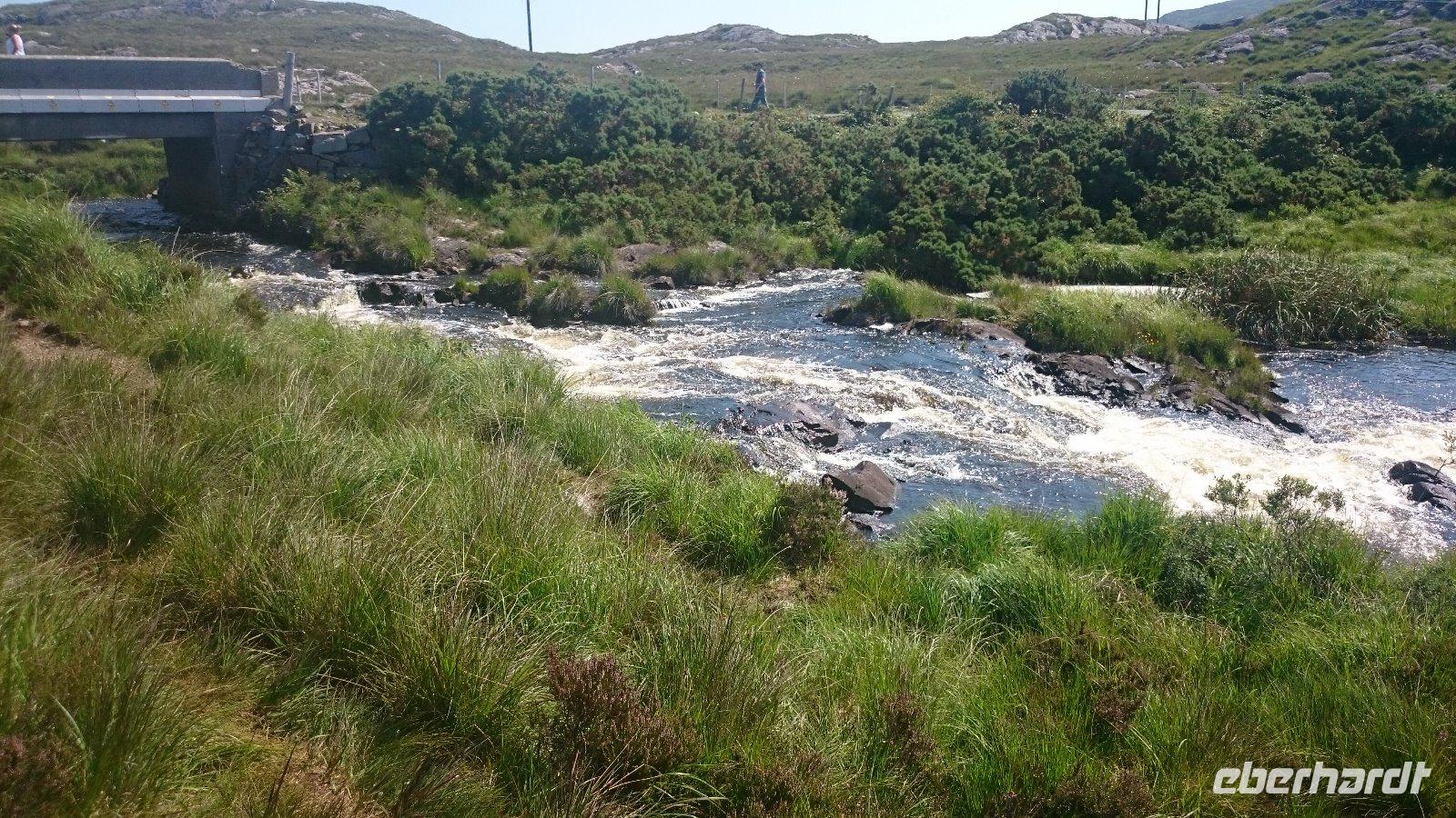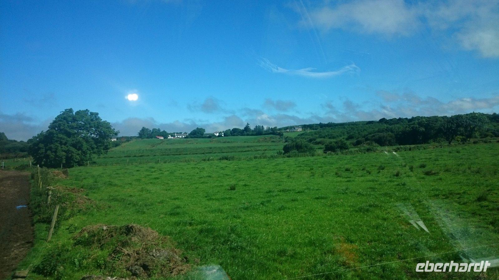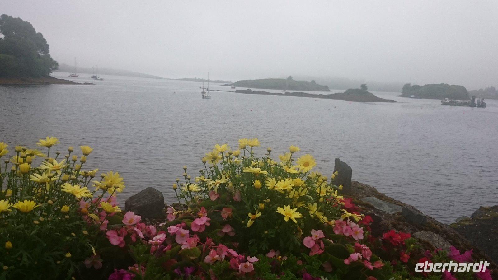 Die Sonne war nun zu unserem ständigen Begleiter geworden. Ein guter Grund, den Tag mit einem Spaziergang an der Promenade von Saltyhill in Galway zu beginnen. Vom Geldautomaten bis zum starken Cafe konnte man alles finden, was für einen guten Start in einen schönen Urlaubstag notwendig war. Laut Wetterbericht erwarten uns heute 30 Grad C - für Irland völlig untypische Temperaturen. Auch die Klimaanlage unseres Busses scheint nicht auf solche Hitzeperioden eingestellt. Also erzeugen wir die Kühle durch viele Fotostopps. Die dramatischen Landschaftsbilder braucht man nicht lang zu suchen. Grüne Wiesen, glänzende Seen und Bäche vereinen sich auf den Fotos mit schroffen Bergen im Hintergrund. Und ob der Nebel am Horizont wirklich Nebel war oder doch eher der Schleier einer guten Fee - wer weiß das schon so genau. Wir wissen, dass die Connemara Region ein exklusives Abenteuer in Europa ist, von dem man einfach nicht genug kriegen kann. Selbst Kylemore Abbey - ursprünglich ein Schloss aus dem 19. Jahrhundert - taucht auf wie ein Wunder in einer sonst eher einsamen Landschaft.