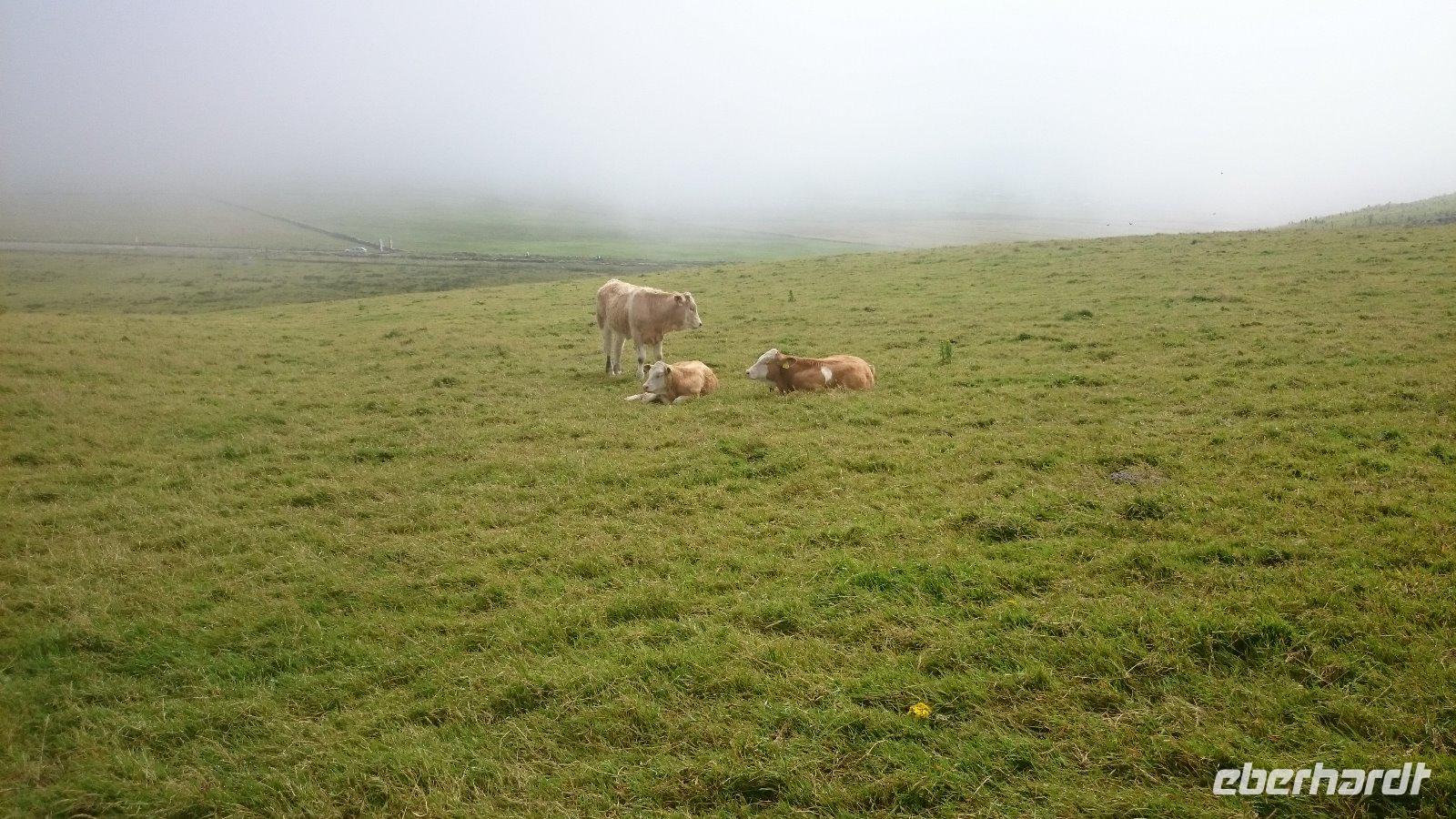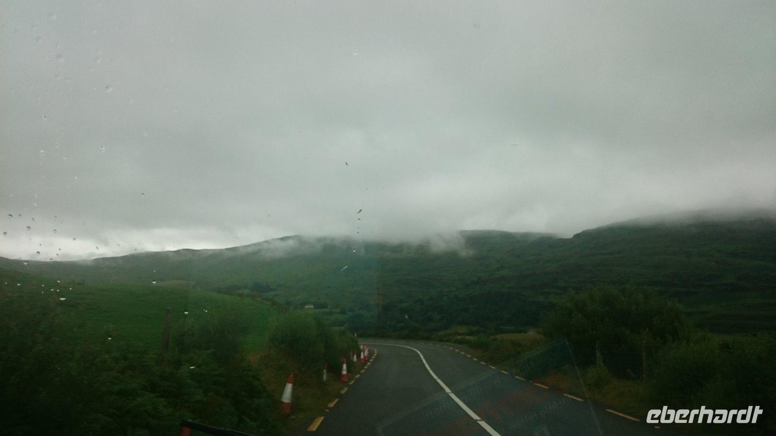 Von Killarney aus erreichen wir in einer reichlichen Stunde den legendären River Shannon. Wir haben Glück, die Fähre wartet noch auf uns. Von der anderen Uferseite des Shannon folgen wir der Straße Richtung Atlantikküste. Immer wieder bereisen wir Abschnitte der bekannten Wild Atlantik Way Route. Schmale Straßen, gesäumt von grünen Büschen, Steinmauern, noch schmalere Straßen - ein Glück, dass unser Fahrer so souverän sein Fahrzeug lenkt.