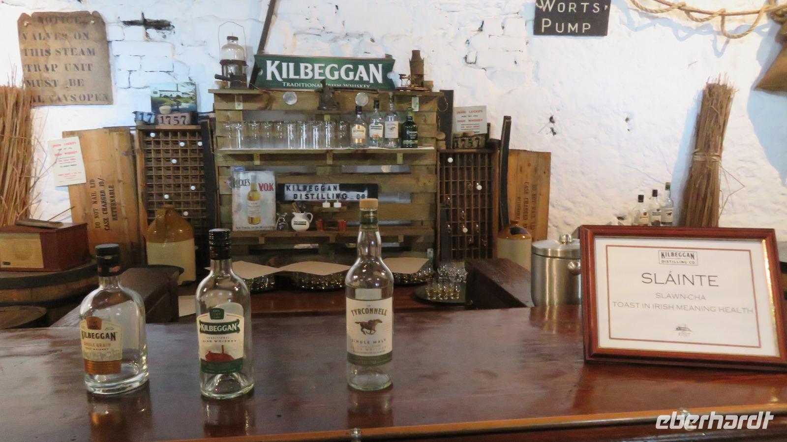 Wir starten sofort gen Westen, denn in Kilbeggan ist unser erster Stopp geplant. Wie es sich für Irland gehört, starten wir mit einer Spezialität des Landes, Whiskey. Wir erfahren von Dean vieles zur Geschichte der kleinen Brennerei Locke's Whiskey Distillery, der ältesten kontinuierlich lizenzierten Destillerie der Welt. Natürlich darf eine Kostprobe vom „Irischen Lebenswasser", dem Kilbeggan-Whiskey, nicht fehlen.