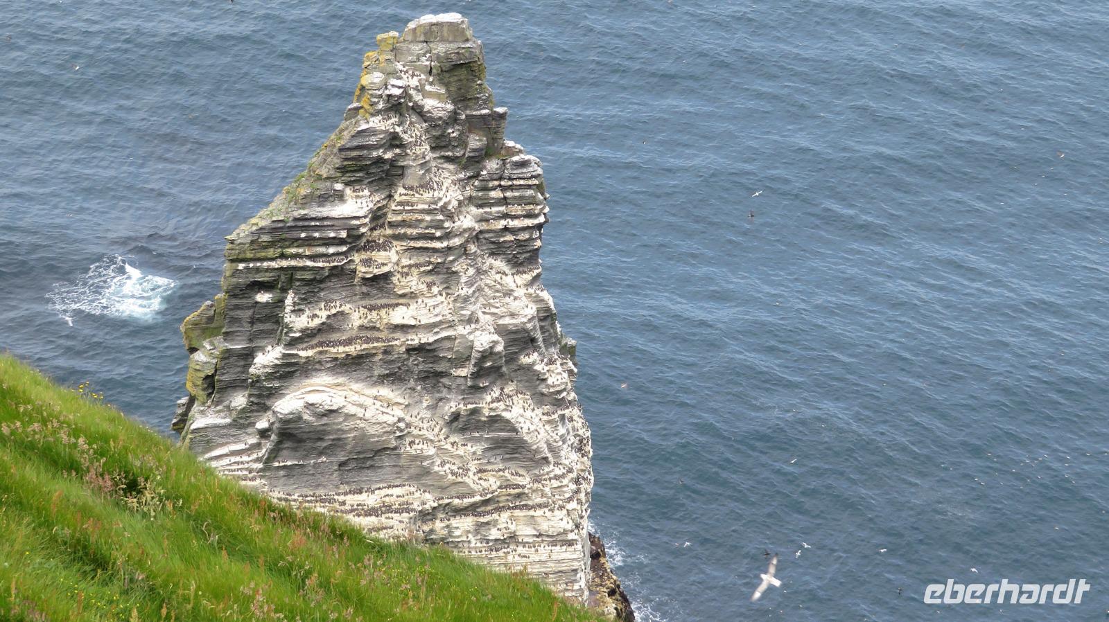 Heute steht der Burren auf unserem Plan, eine in Europa einzigartige Karstlandschaft. Zuerst besuchen wir die Klosteranlage von Kilmacduagh mit dem schiefen Rundturm. Nach einem Boxenstop in Kilfenora fahren wir zu den eindrucksvollen Cliffs of Moher, die bis zu 200 m zum Meer steil abfallen. Hier haben wir genügend Zeit, ein Stück an den Klippen entlang zu wandern, ehe wir zu einem Besuch bei Farmer Joe im Moor starten. Wir probieren selbst, ein Stück Torf abzustechen. Gar nicht so einfach! Wenn man das einen Monat lang für den eigenen Gebrauch machen muss... Dann lieber Ölheizung!