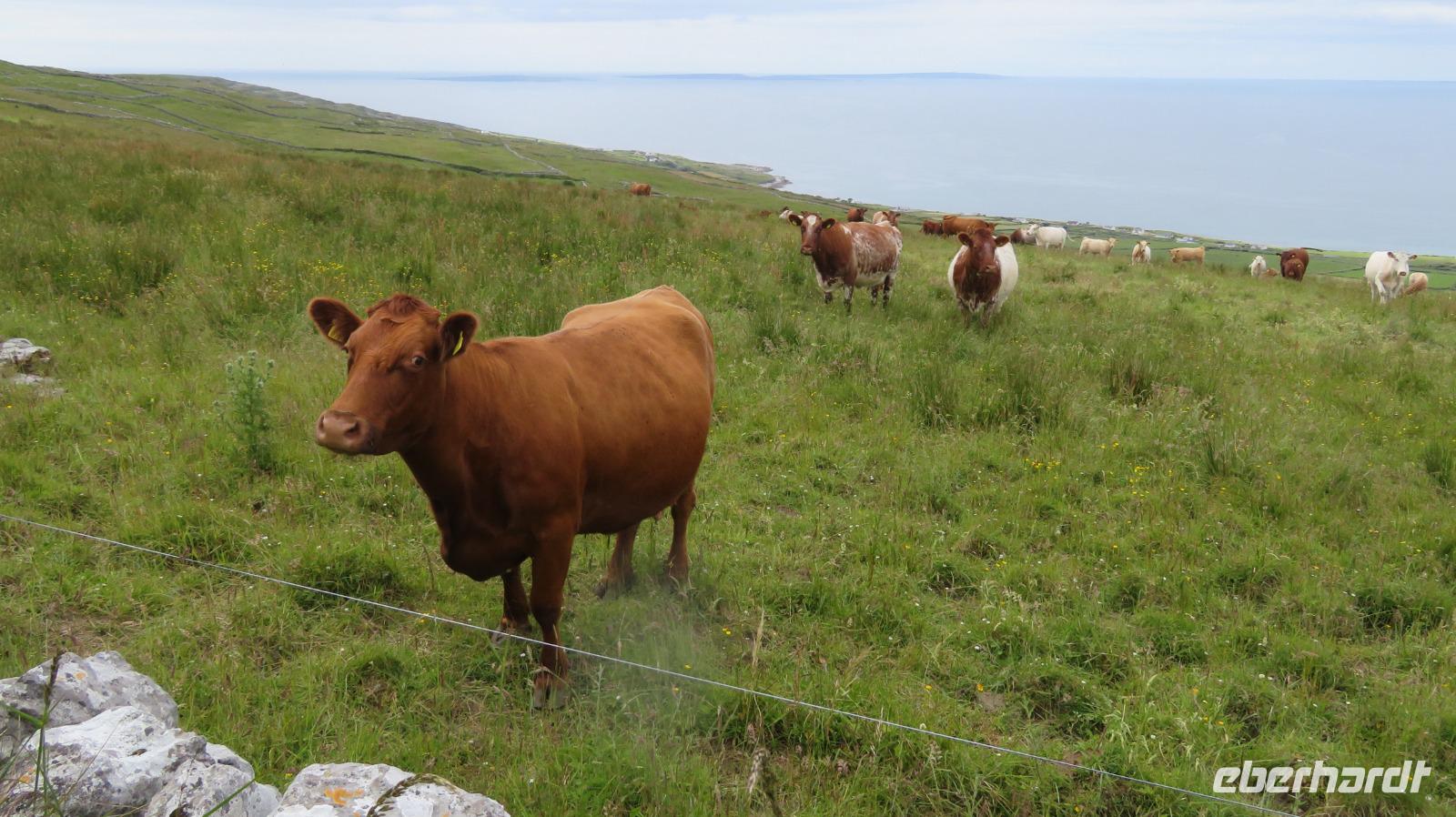 Wir fahren Richtung Meer eine enge Straße, die auch unser Team noch nicht kennt. Wir sind begeistert von dem Blick über den Atlantik bis zu den Aran Inseln und nach Connemara. Am Black Head vorbei bringt Frank uns entlang der Küstenstraße bis Kinvarra. Ein Fotostopp am Dunguaire Castle, ehe wir wieder zu unserem Hotel nach Gort abbiegen.