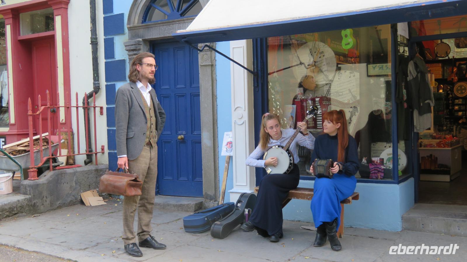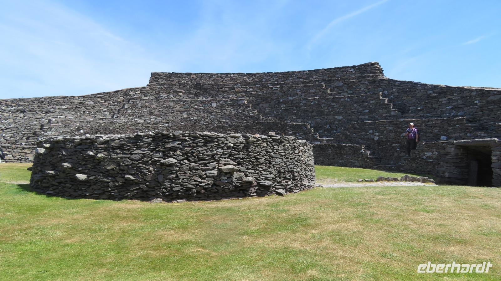 Petra führt uns zum Ringfort Cahergall bei Cahirsirveen. Die Mittagszeit verbringen wir in Waterville. Ein Fotostopp bei Charlie Chaplin, der hier oft seinem Urlaub verbrachte, darf nicht fehlen.