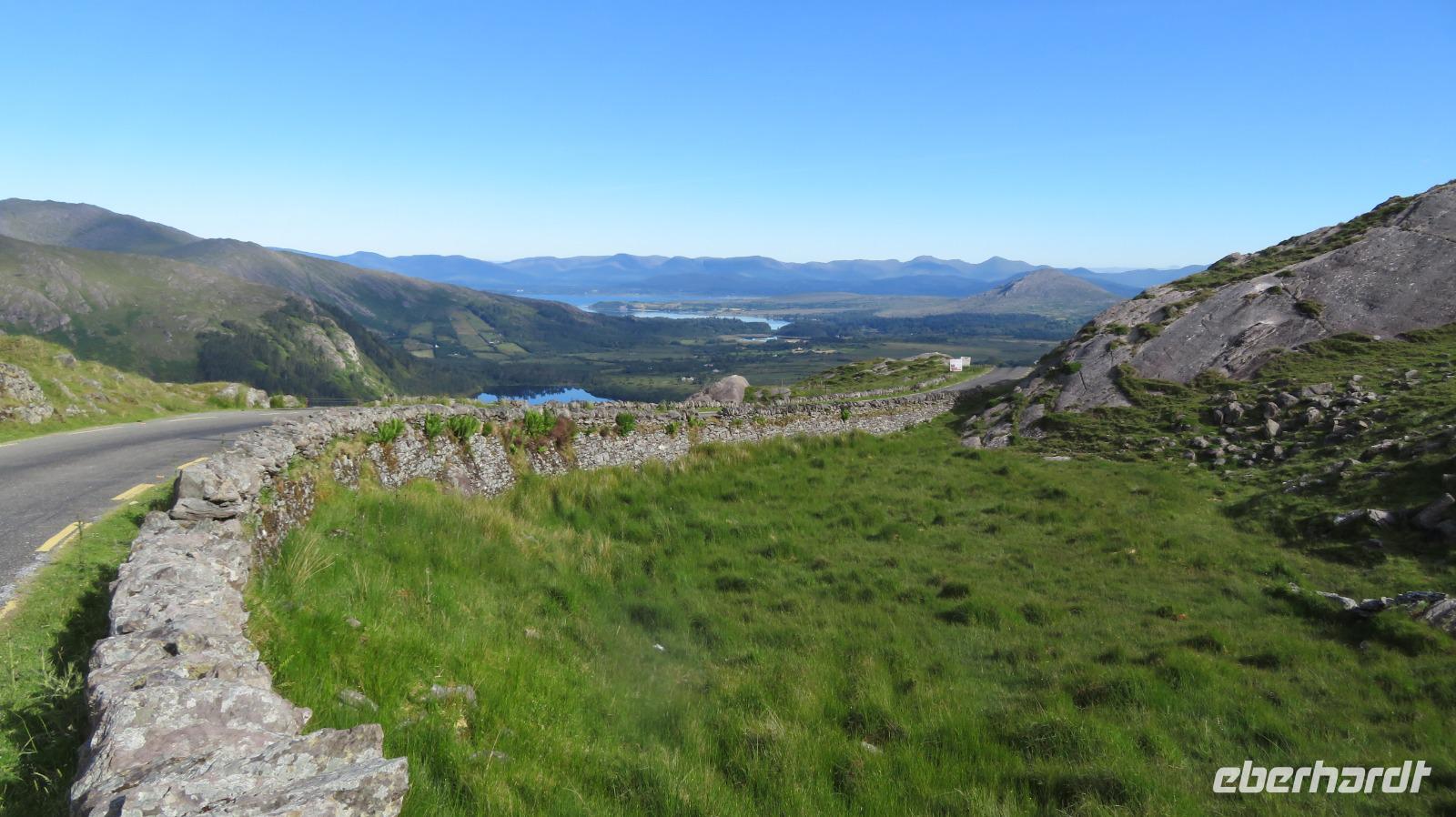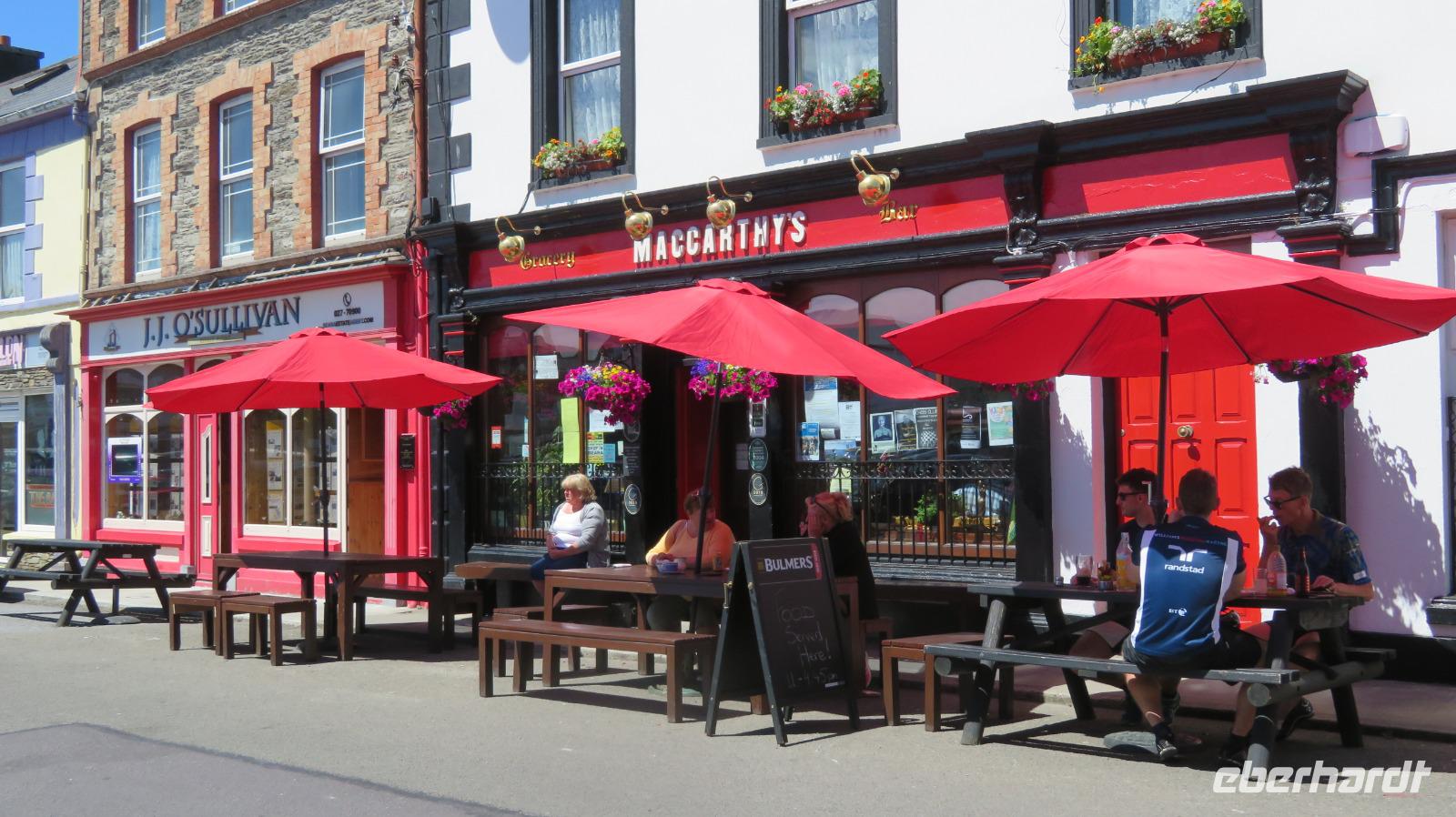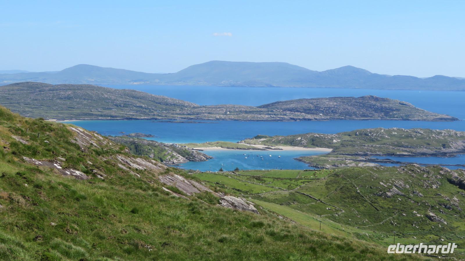Dann geht es hinauf zum Coomakiste Pass. Bei dem phantastischen Wetter haben wir heute einen tollen Blick auf den Atlantik und die Derrynane Bay. Im Touristenort Sneem gönnen wir uns noch ein Eis oder als Attraktion eine deutsche Bratwurst mit Bautzener Senf!