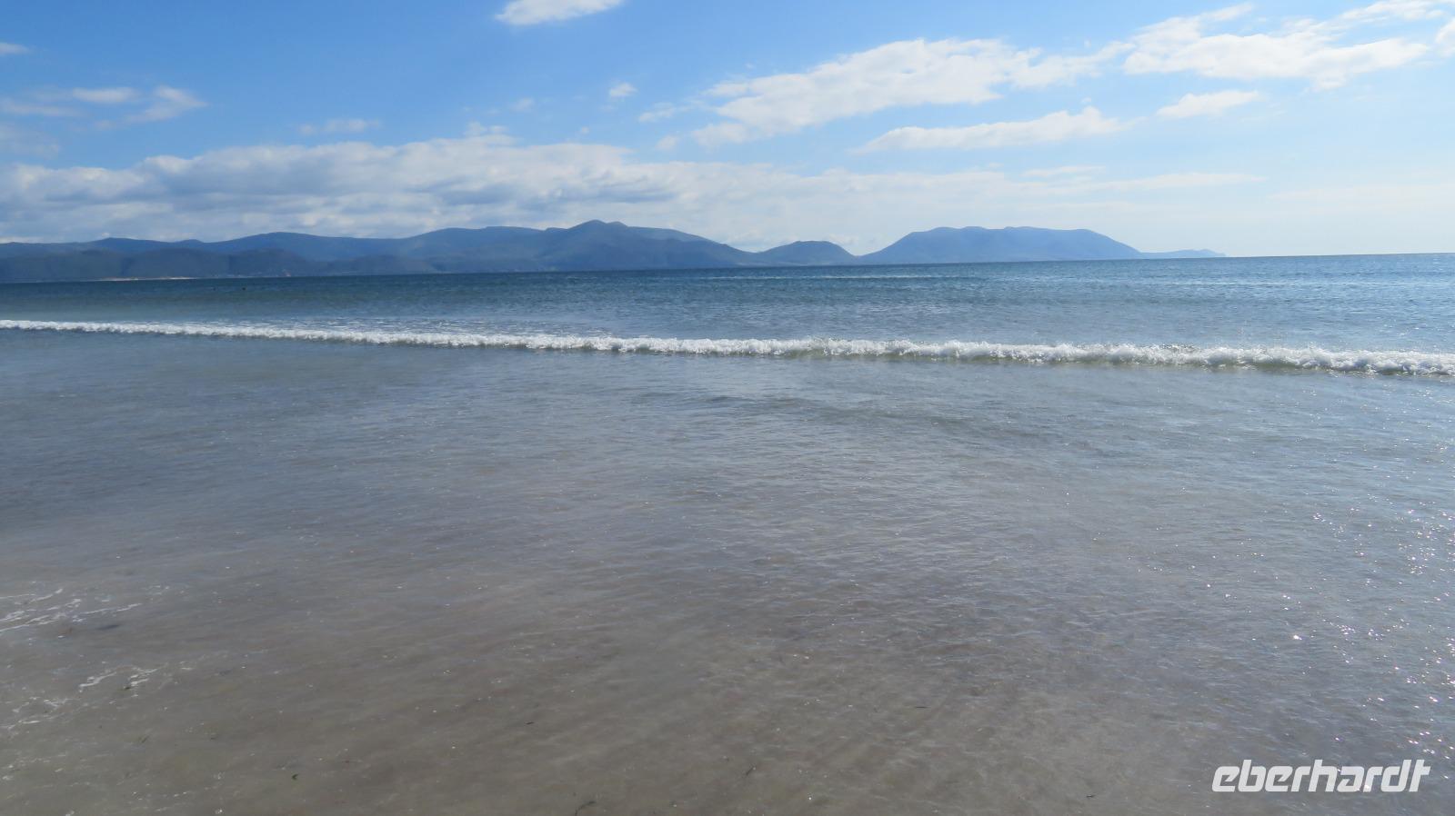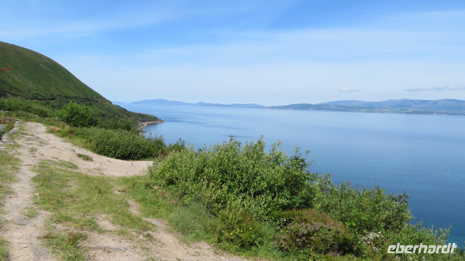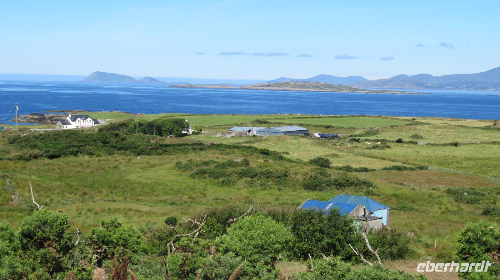 Dann geht es hinauf zum Coomakiste Pass. Bei dem phantastischen Wetter haben wir heute einen tollen Blick auf den Atlantik und die Derrynane Bay. Im Touristenort Sneem gönnen wir uns noch ein Eis oder als Attraktion eine deutsche Bratwurst mit Bautzener Senf!