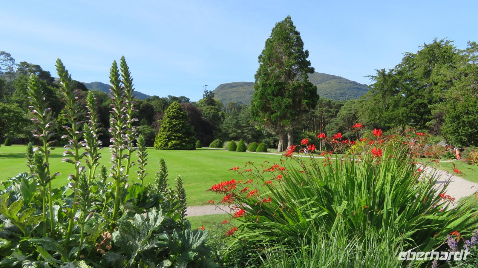 Alle möchten Kylemore besuchen, und gemeinsam fahren wir zuerst mit einem Shuttlebus zum Garten. Die Anlage ist fantastisch angelegt und nach Besuch von Schloss und Kathedrale durchstöbern wir noch den Souvenirladen und nehmen eine Kleinigkeit zum Lunch.