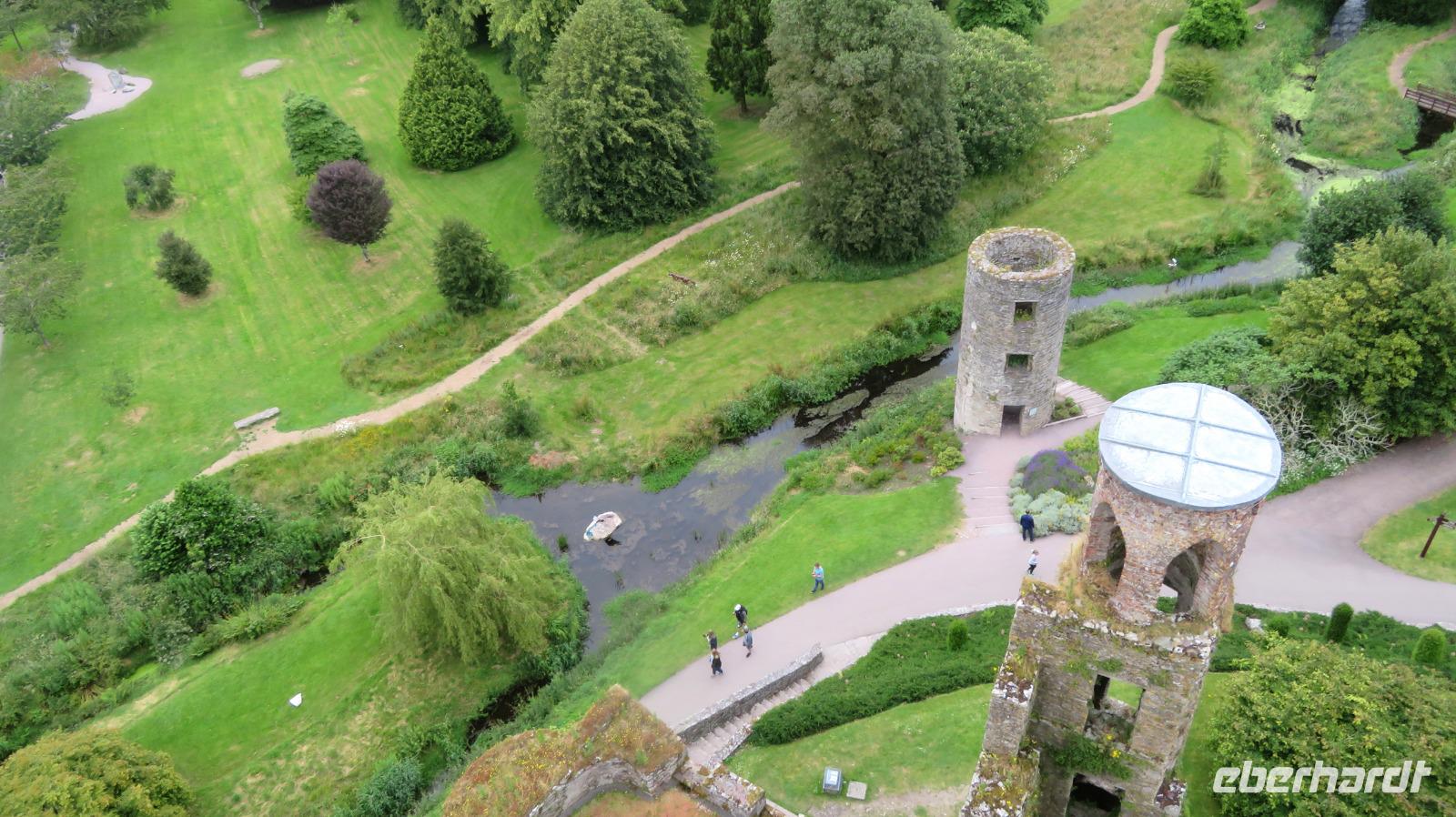Nach einem Mittagsimbiss fahren wir weiter zu unserer nächsten Übernachtung nach Blarney, bekannt durch Blarney Castle und den Blarney Stone. Wer den "Stein der Sprachgewandtheit" küsst, kommt zu entsprechenden Fähigkeiten. Das ist aber gar nicht so einfach, denn man muss sich dazu rückwärts auf den Boden und über den Abgrund legen. Lieber ein Spaziergang im schönen Park mit australischen Farnen und anderen seltenen Pflanzen ...