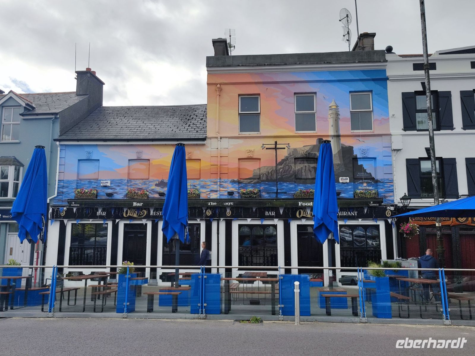 Von Ballincollig ging es am Morgen zunächst zu unserem nächsten Hotel in Killarney, bei dem wir einen kurzen Stopp auf unserer Fahrt zur Dingle-Halbinsel einlegten. In Annascoul, einem kleinen Ort auf der Südseite der Dingle-Halbinsel hat der irische Polarforscher Thomas Crean den Pub „The South Pole Inn“ betrieben, welcher bis heute existiert. Thomas Crean nahm Anfang des 20. Jahrhunderts an drei Expeditionen in die Antarktis teil. Wir fuhren weiter entlang der Südküste in westliche Richtung. Das Wetter war fantastisch und auf der Panoramastraße „Slea Head“ sahen wir die Blasket-Inseln und legten mehrere ausgedehnte Fotostopps ein. Anschließend hielten wir für einen weiteren Fotostopp oberhalb von Smerwick Harbour und besuchten danach das Gallus-Observatorium. Von dort ging es wieder nach Dingle zurück, wo wir Freizeit für Erkundungen und für die Mittagspause hatten. In der Bucht von Dingle lebte lange Zeit der Delphin Fungie, welcher die Nähe zu Menschen suchte. Er hatte große Bedeutung für die Geschäftsleute im Ort, denn überall sieht man ihn als Werbeträger. Seit 2021 hat er sich leider nicht mehr sehen lassen. Zum Abschluss unserer Rundfahrt ging es von Dingle zum Inch Beach, einem langen, flach zum Meer abfallenden Sandstrand und einem Paradies für Surfer und Freizeitsportler. Danach fuhren wir nach zurück zu unserem Hotel in Killarney.