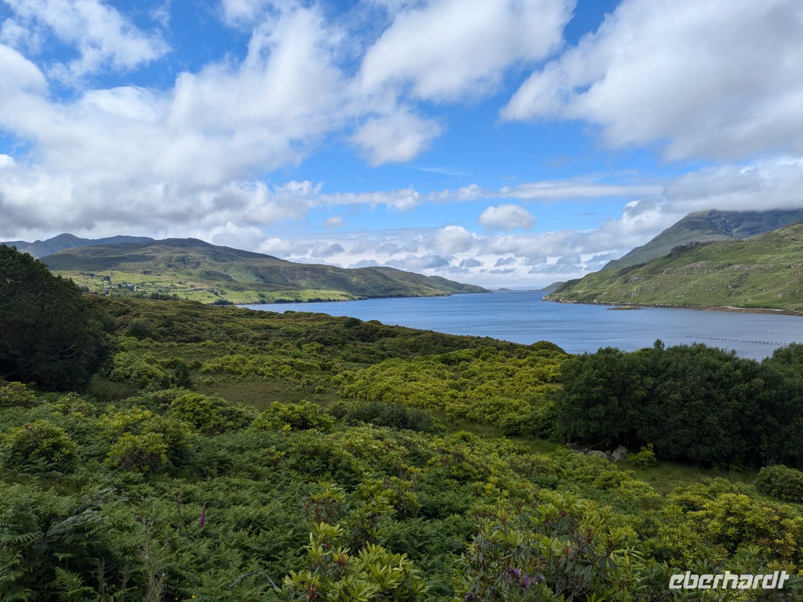 Unsere Fahrt setzte sich fort entlang der atemberaubenden Küstenlandschaft mit ihren sattgrünen Wiesen und wilden Stränden. Ein Höhepunkt war der Besuch der Skelligs Schokoladenfabrik, wo wir verschiedene Schokoladensorten probierten und uns mit einer heißen Schokolade aufwärmten. In Waterville, einst ein Lieblingsort des berühmten Schauspielers Charlie Chaplin, machten wir einen kleinen Strandspaziergang und stärkten uns mit einer leichten Mahlzeit. Nach weiteren beeindruckenden Aussichtspunkten, darunter der Coomakista Viewpoint und Moll’s Gap, erreichten wir schließlich unsere nächste Unterkunft in Glengarriff.