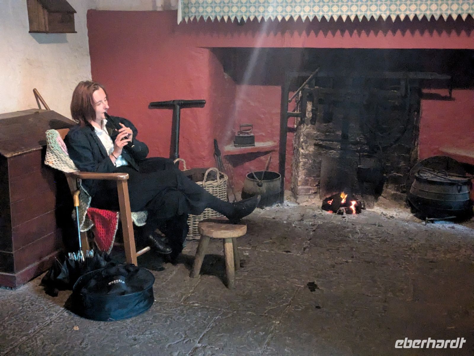 Im Folk Park gab es viel zu entdecken: Eine Dame in historischer Tracht erklärte uns das Schulleben vor etwa 200 Jahren. Neben einem Torf-Kamin spielte ein junges Mädchen auf der Flöte, während eine andere Dame uns zeigte, wie man über dem offenen Feuer Brot backt, das man im nahegelegenen Tea Room erwerben konnte.