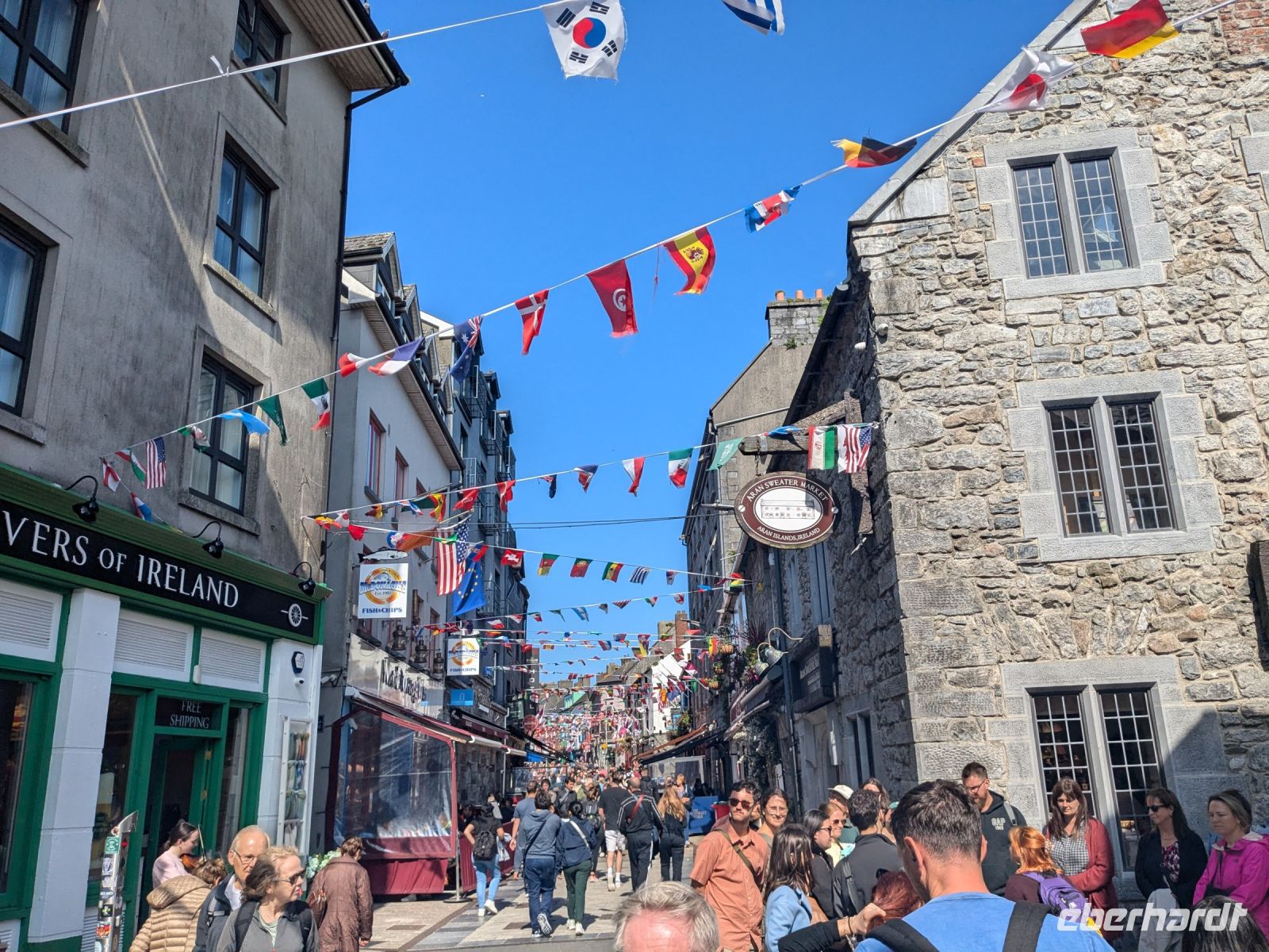 Unser Weg führte uns weiter nach Galway, vorbei am Dunguaire Castle, einem malerischen Fotomotiv direkt am Wasser. In Galway schlenderten wir von der Kathedrale zum Lynch’s Memorial Window und hielten schließlich am Spanish Arch, der historischen Steinbogenbrücke aus dem 16. Jahrhundert, die einst Teil der Stadtmauer war. Die Stadt, lebendig und jung – kein Wunder bei dem großen Studentenanteil – verzauberte uns mit ihren belebten Gassen und den Straßenmusikern.