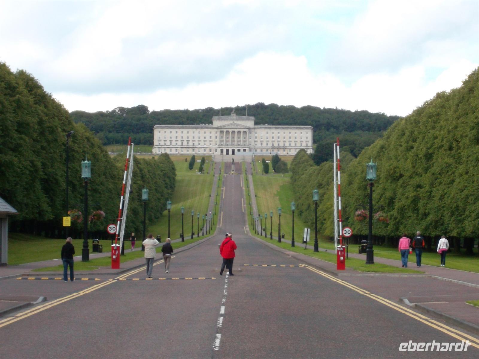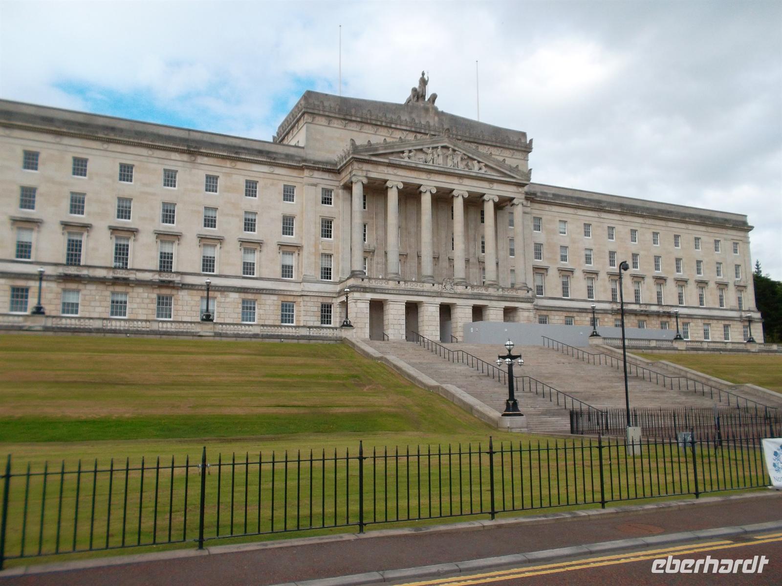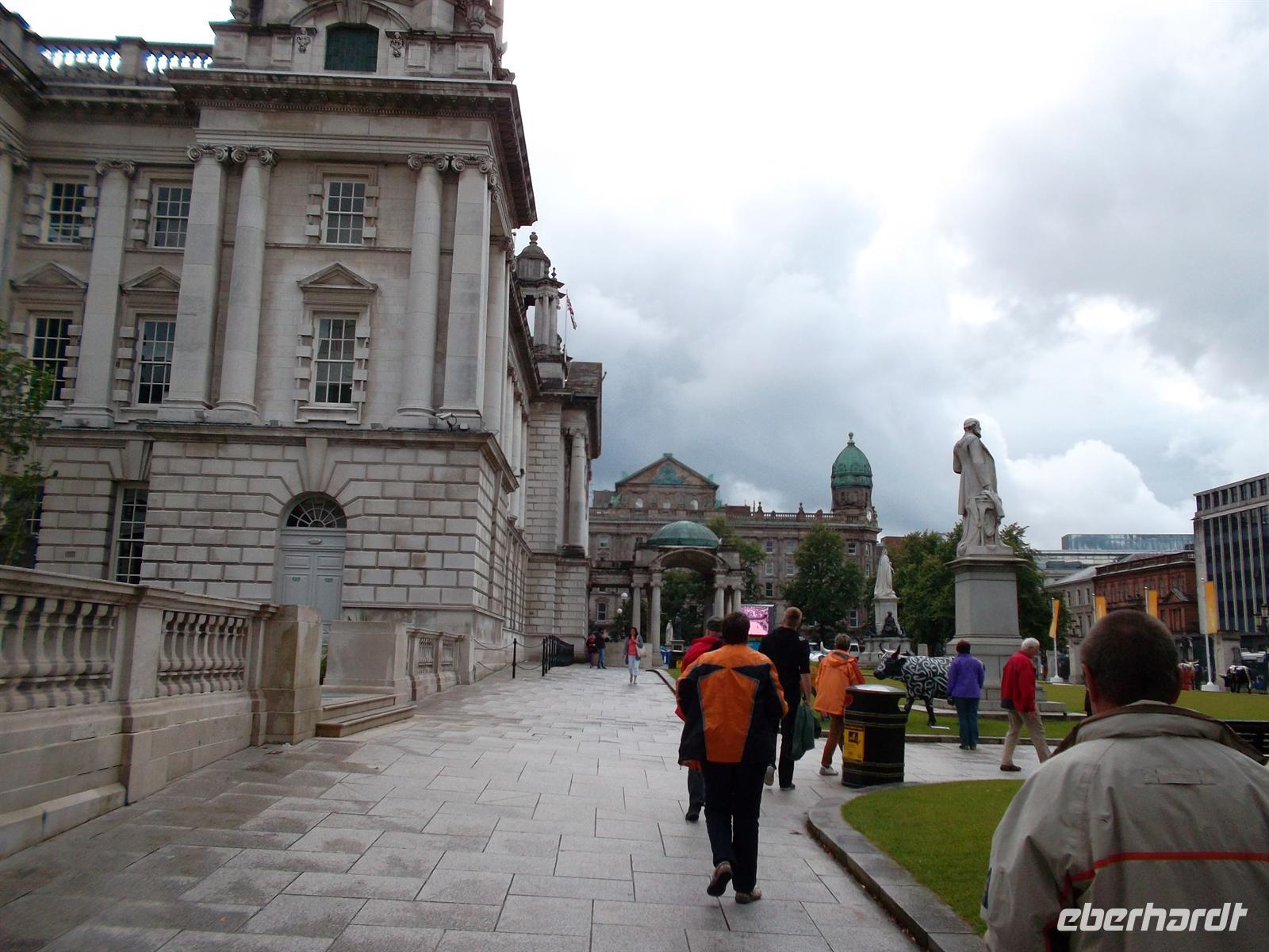 Am frühen Nachmitag setzten wir mit unserem Bus die auf der neugebauten Autobahn in Richtung Nordirland fortzusetzen. Auch hier gab es ein kleines „Extra“. Unweit der Autobahn liegt das alte, berühmte Kloster Monasterboice, dass neben Kirchenruinen einen interessanten Rundturmrest und zwei berühmte, reichverzierte Hochkreuze aufweist: Das Muireadachs Cross soll bereits aus dem neunten Jahrhundert stammen und ist mit biblischen Szenen verziert. Das ungewöhnlich große „Tall Cross“ - ebenfalls reich mit Skulpturenschmuck verziert - gilt als eines der höchsten in Irland. Nach kurzen Erklärungen und ausführlichem Fotostopp setzten wir dann die Reise in die Hauptstadt Nordirlands fort. Belfast erreichten wir recht früh und konnten sogleich einchecken. Unser Stadtführer Willie Swann zeigte uns die Highlights von Belfast: das gewaltige Rathaus aus viktorianischer Zeit und den neogotischen Uhrturm, das herrlich gelegene Parlamentsgebäude Stormont etwas außerhalb Belfasts und das Werftgelande mit dem neuen Titanic-Besucherzentrum. Sicher als faszinierendster Teil aber wurde die Fahrt durch jene Straßen von West- und Ost-Belfast empfunden, die durch ihre bedeutenden und bekannten Wandmalereien bis heute von der Teilung der Religionen in Belfast zeugen und einst Teil der nordirischen Unruhen waren .Dennoch ist Belfast vor allem eine schöne Stadt mit recht quirligem Leben. Wer es nicht glaubte, der konnte sich abends davon im berühmtesten Pub der Stadt überzeugen, dem denkmalgeschützten „Crown Liquor Saloon“, dem Gaslampen, eine Marmortheke und viel Mahagoni ein besonderes Ambiente verleihen - auch wenn er stets hoffnungslos überfüllt ist.