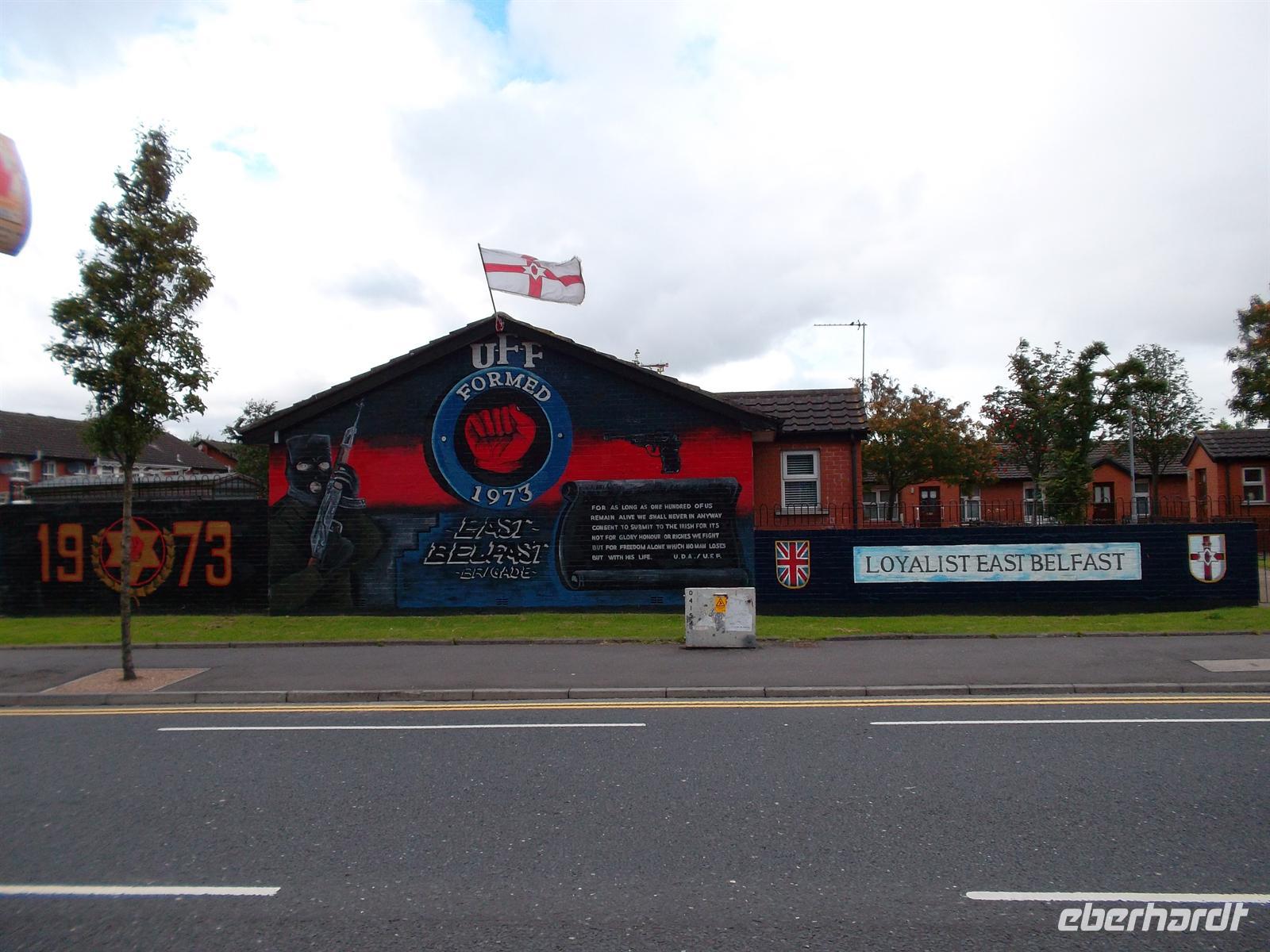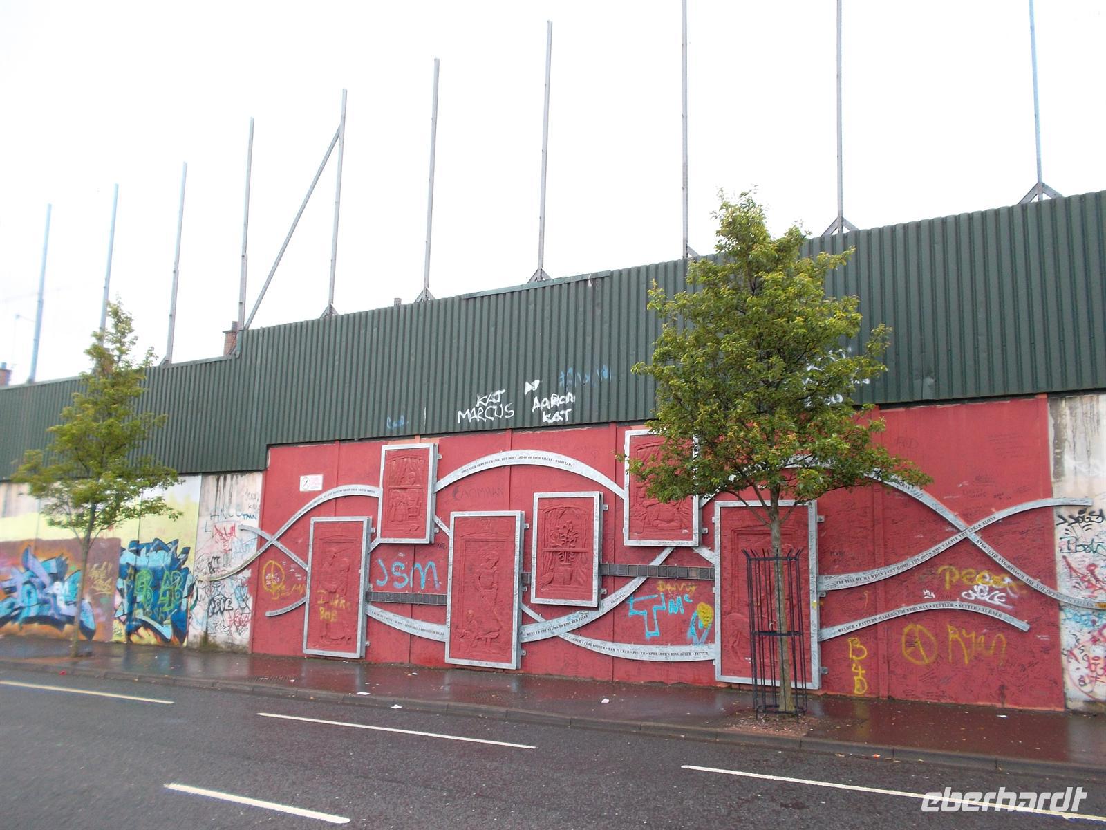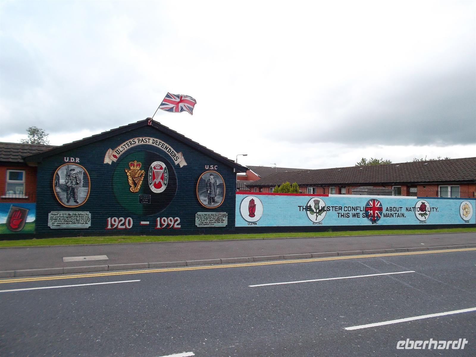 Am frühen Nachmitag setzten wir mit unserem Bus die auf der neugebauten Autobahn in Richtung Nordirland fortzusetzen. Auch hier gab es ein kleines „Extra“. Unweit der Autobahn liegt das alte, berühmte Kloster Monasterboice, dass neben Kirchenruinen einen interessanten Rundturmrest und zwei berühmte, reichverzierte Hochkreuze aufweist: Das Muireadachs Cross soll bereits aus dem neunten Jahrhundert stammen und ist mit biblischen Szenen verziert. Das ungewöhnlich große „Tall Cross“ - ebenfalls reich mit Skulpturenschmuck verziert - gilt als eines der höchsten in Irland. Nach kurzen Erklärungen und ausführlichem Fotostopp setzten wir dann die Reise in die Hauptstadt Nordirlands fort. Belfast erreichten wir recht früh und konnten sogleich einchecken. Unser Stadtführer Willie Swann zeigte uns die Highlights von Belfast: das gewaltige Rathaus aus viktorianischer Zeit und den neogotischen Uhrturm, das herrlich gelegene Parlamentsgebäude Stormont etwas außerhalb Belfasts und das Werftgelande mit dem neuen Titanic-Besucherzentrum. Sicher als faszinierendster Teil aber wurde die Fahrt durch jene Straßen von West- und Ost-Belfast empfunden, die durch ihre bedeutenden und bekannten Wandmalereien bis heute von der Teilung der Religionen in Belfast zeugen und einst Teil der nordirischen Unruhen waren .Dennoch ist Belfast vor allem eine schöne Stadt mit recht quirligem Leben. Wer es nicht glaubte, der konnte sich abends davon im berühmtesten Pub der Stadt überzeugen, dem denkmalgeschützten „Crown Liquor Saloon“, dem Gaslampen, eine Marmortheke und viel Mahagoni ein besonderes Ambiente verleihen - auch wenn er stets hoffnungslos überfüllt ist.
