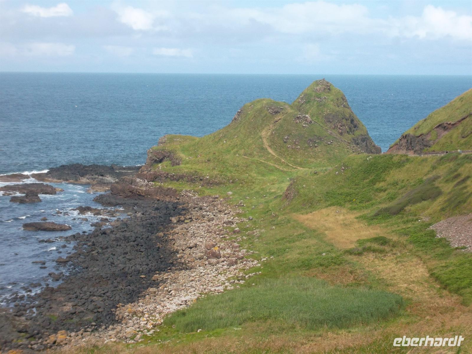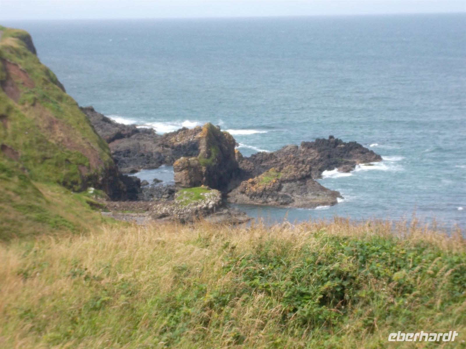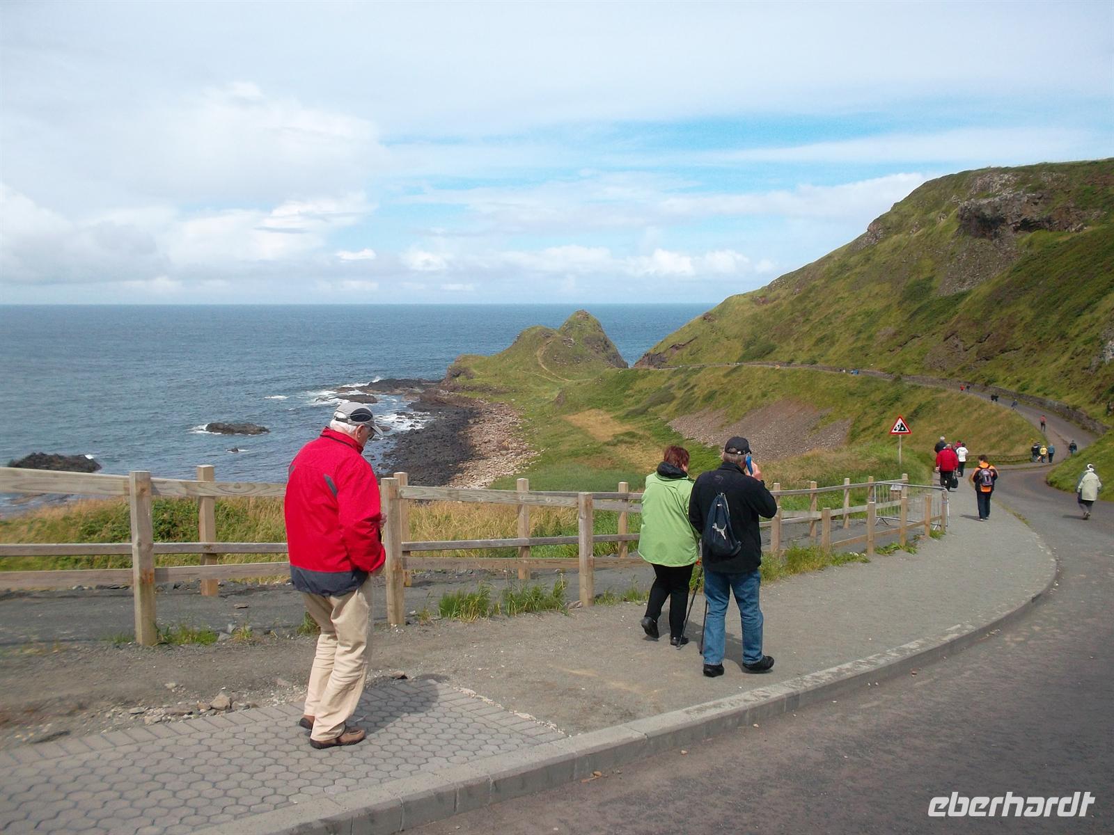 Über das malerische Ballycastle erreichten wir dann die wohl größte Sehenswürdigkeit des nordirischen Nordens: den Giants Causeway, der zum UNESCO-Weltnaturerbe gerechnet wird. Der „Damm der Riesen“ besteht aus über 40.000 regelmäßig geformten Basaltsäulen, alle über 60 Millionen Jahre alt und mit sechseckigem Querschnitt. Die größten der Steinsäulen erreichen eine Höhe von bis zu zwölf Metern, und die dicke Basaltschicht führt etwa fünf Kilometer entlang der Klippen und endet schließlich im Meer