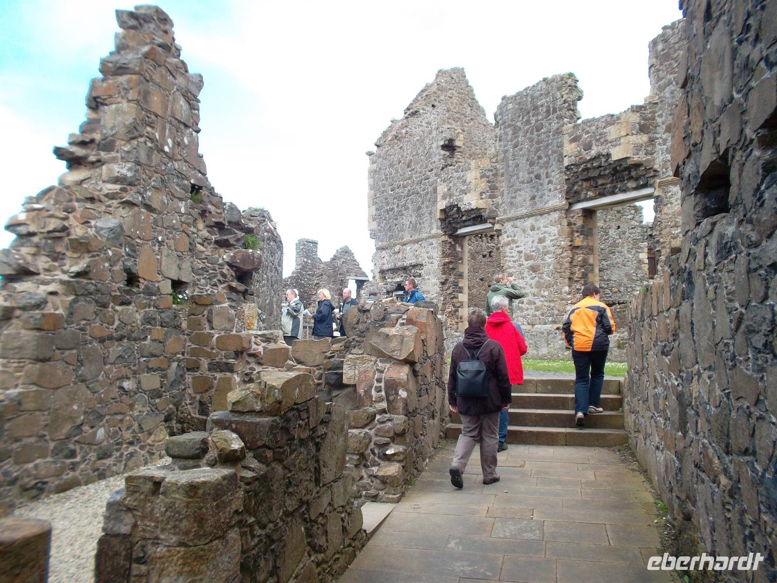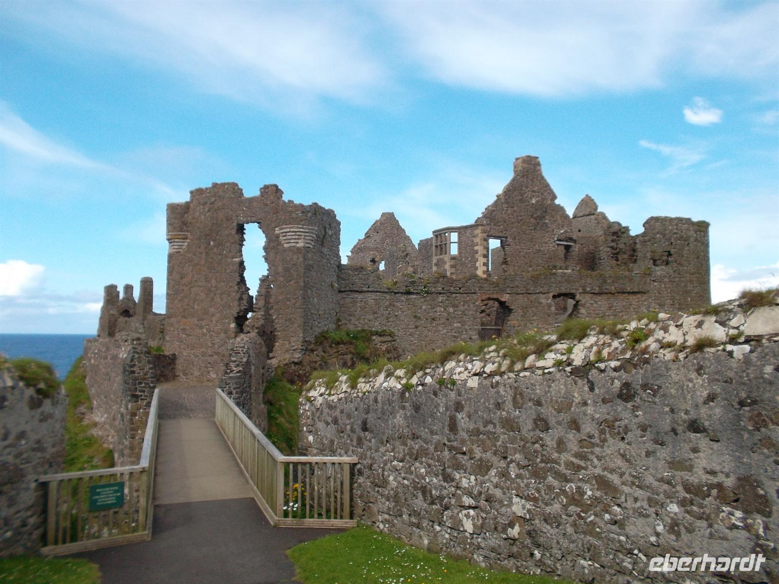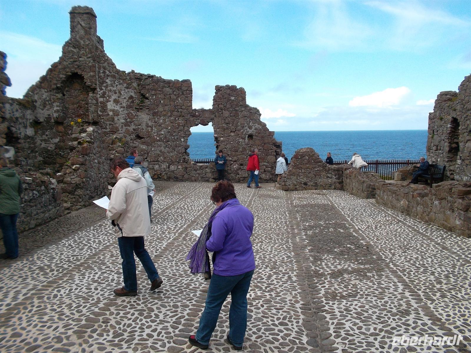 Nach der Abfahrt hatten wir noch ein Extra zu bieten: Dunluce Castle auf einem Basaltfelsen über der Causeway-Küste gilt als die malerischste Burgruine in Nordirland. Eine bewegte Geschichte zeugt von der Bedeutung und ihre gefährlichen Lage - die Küche rutschte 1639 samt Personal ins Meer - trug dazu bei, dass sie bald danach aufgegeben wurde.