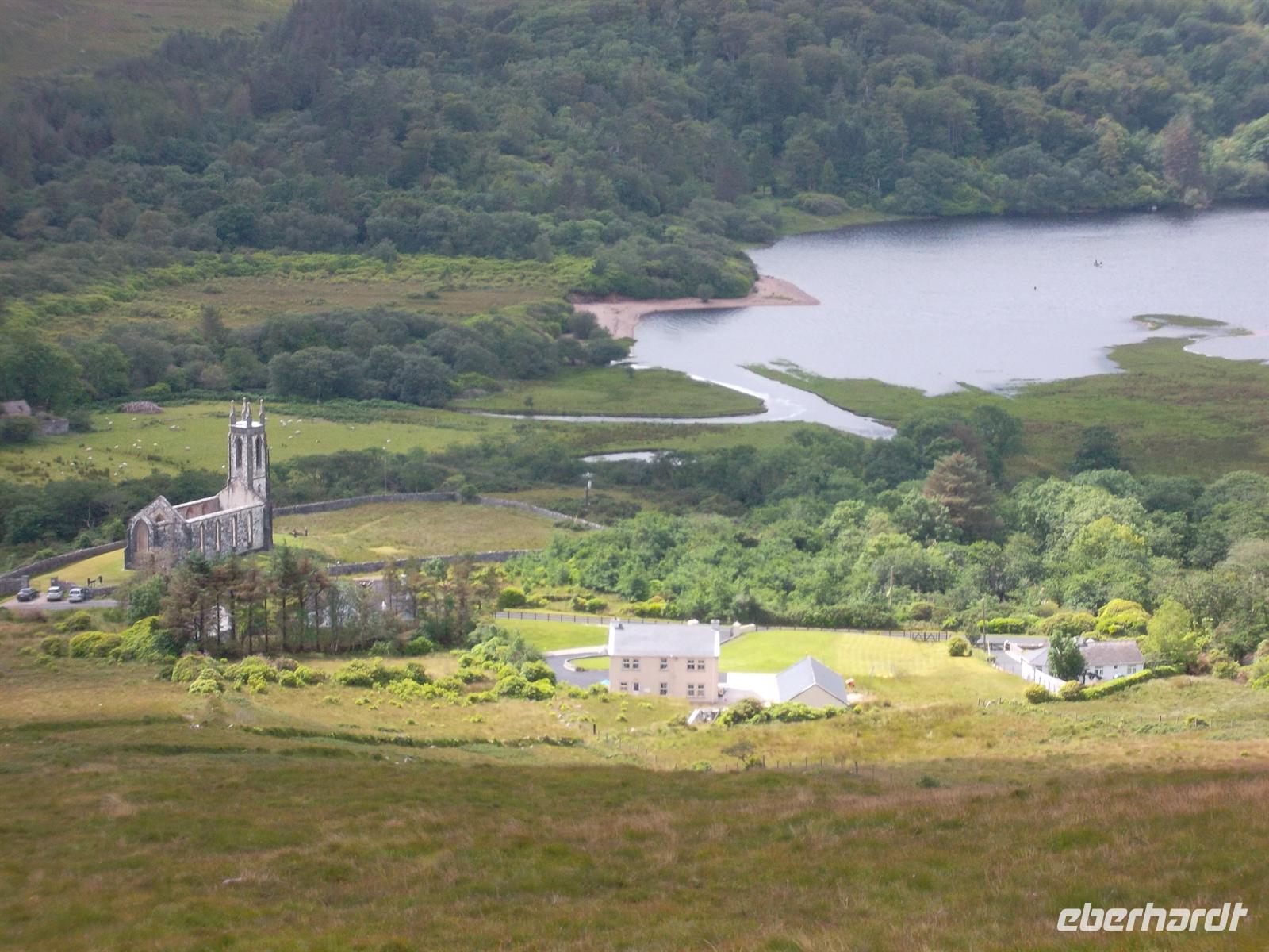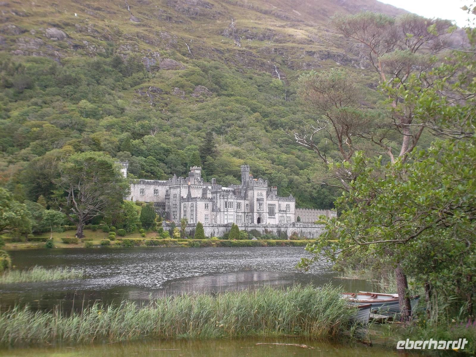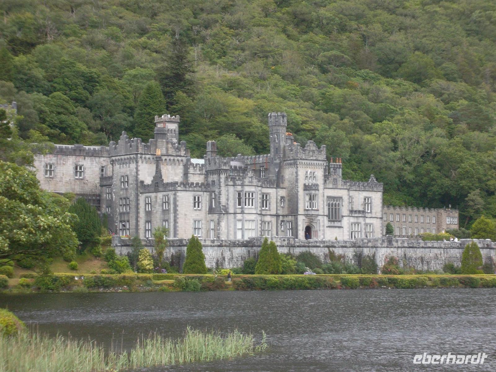 Später ging es, bei typisch irischem Wetter, zu einer Rundfahrt um die „Twelve Bens“, das nördliche Gebirge von Connemara, das bis auf 730 m am Berg Benbaum ansteigt. Erster Fotostopp war diesmal in der bekannten Kylemore Abbey, der ältesten irischen Benediktinerinnenabtei. Das 1665 gegründete Kloster ist nach mehreren Umzügen seit 1920 in dem 1871 fertiggestellten Schloss Kylemore untergebracht. Die Nonnen hatten das um 1870 von einer Industriellenfamilie erbaute Schloß sowie 4.000 Hektar Land erworben, das bis heute als Park zum Kloster-Schloß gehört.