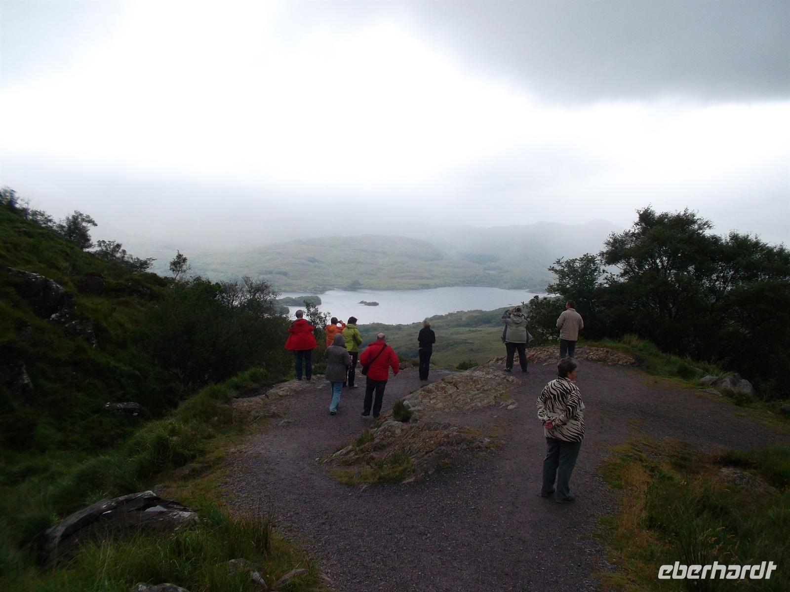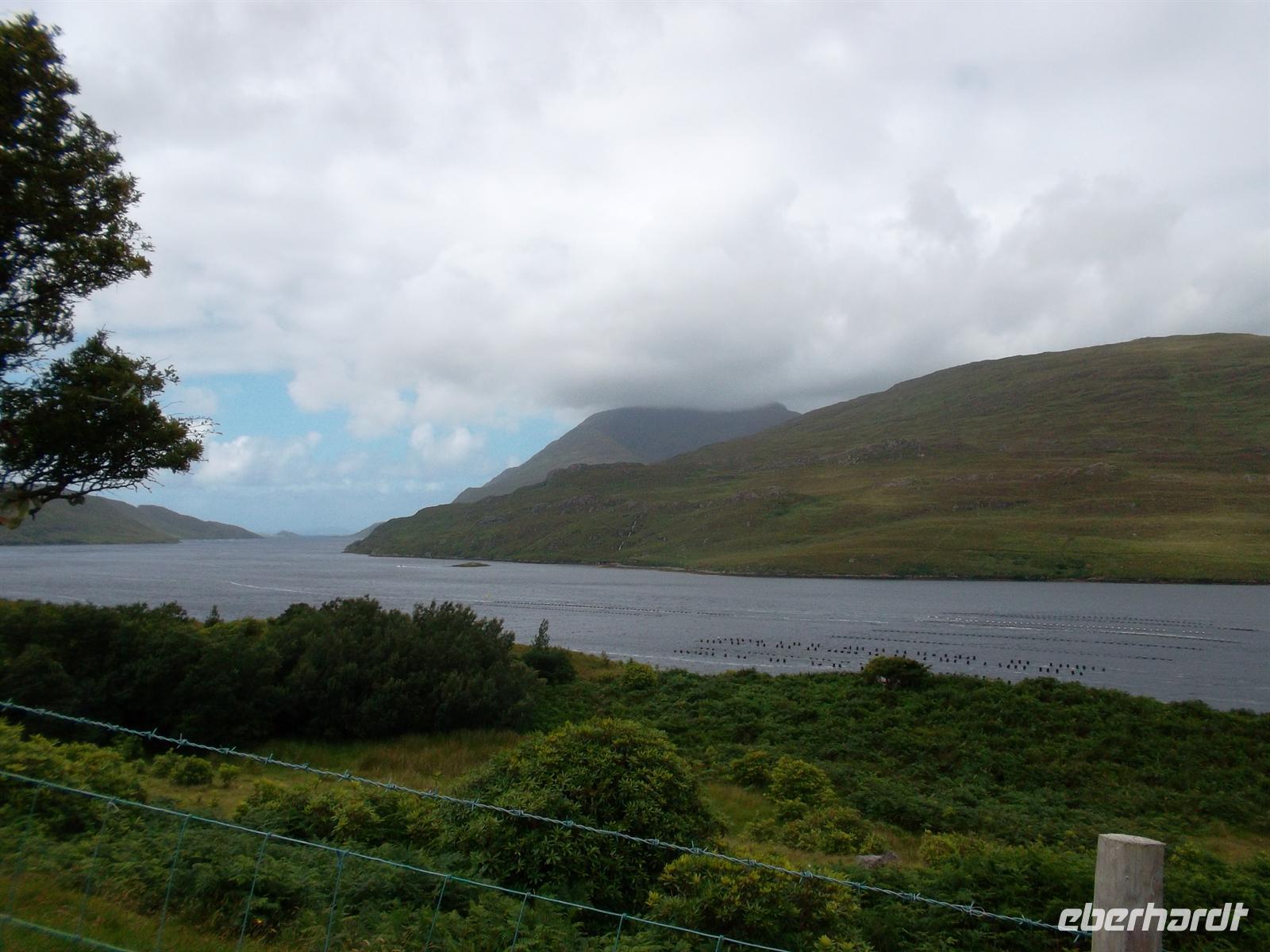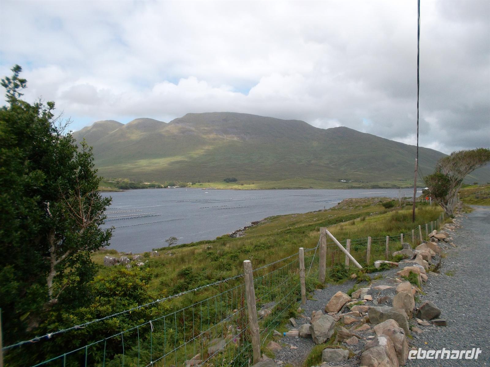 Später ging es, bei typisch irischem Wetter, zu einer Rundfahrt um die „Twelve Bens“, das nördliche Gebirge von Connemara, das bis auf 730 m am Berg Benbaum ansteigt. Erster Fotostopp war diesmal in der bekannten Kylemore Abbey, der ältesten irischen Benediktinerinnenabtei. Das 1665 gegründete Kloster ist nach mehreren Umzügen seit 1920 in dem 1871 fertiggestellten Schloss Kylemore untergebracht. Die Nonnen hatten das um 1870 von einer Industriellenfamilie erbaute Schloß sowie 4.000 Hektar Land erworben, das bis heute als Park zum Kloster-Schloß gehört.