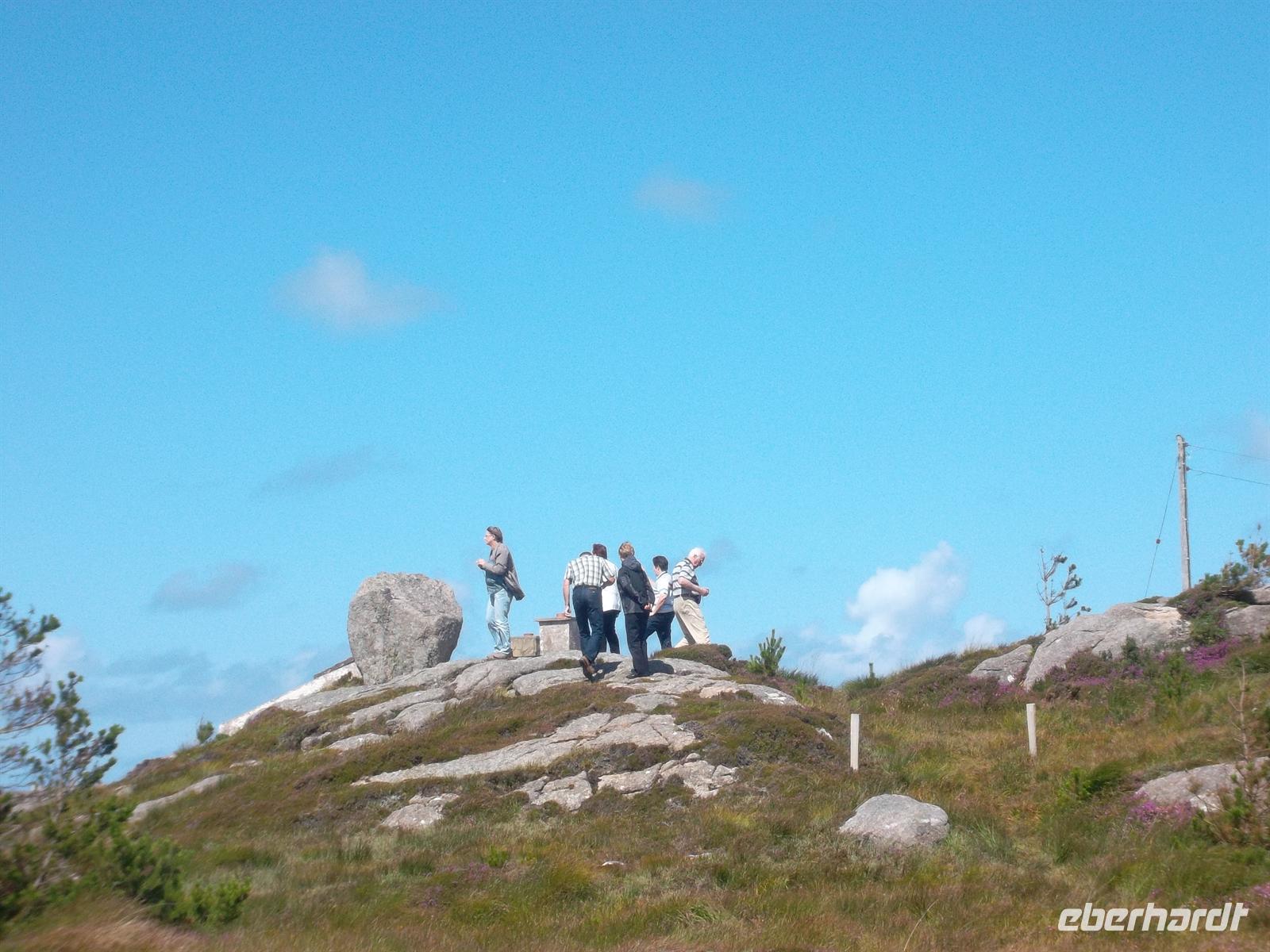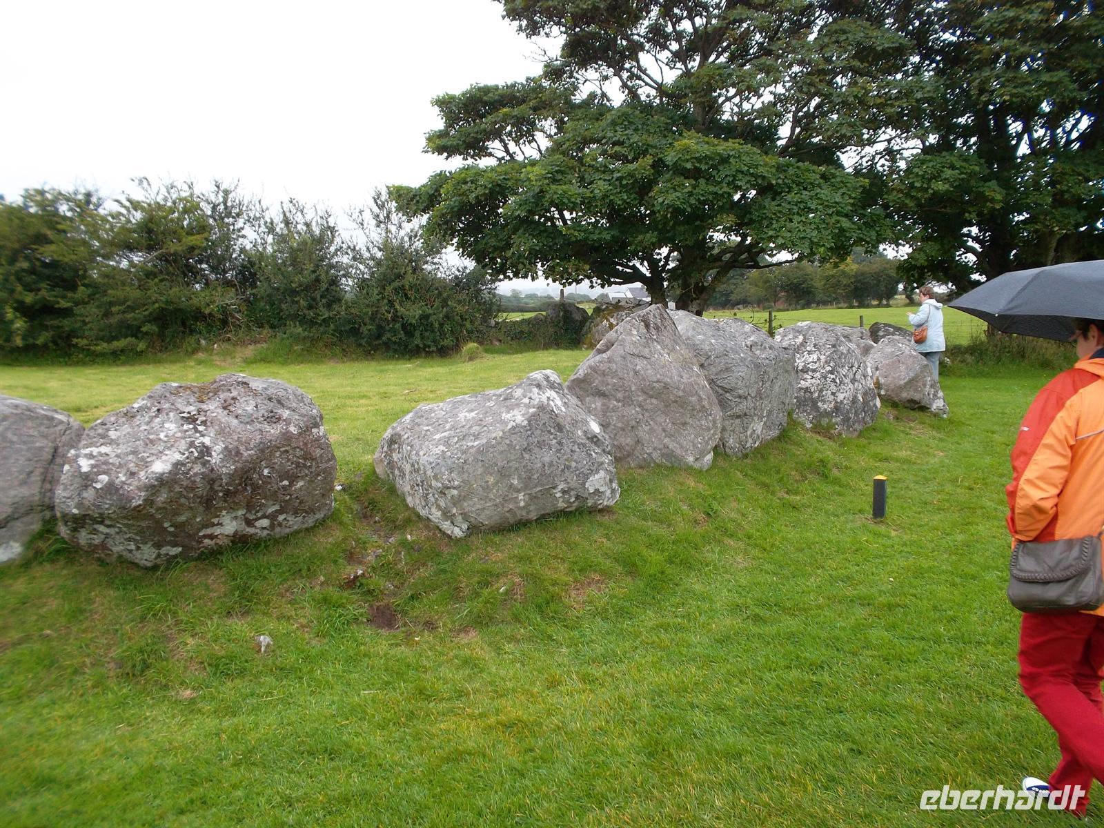 Kurz darauf schon erreichten den dicht neben Sligo liegenden Megalithfriedhof von Carrowmore. Die Großsteinkultur aus der Jungsteinzeit ist hier in all ihren Spielarten zu finden: Menhire (stehende Steine), Cromlechs (Steinkreise) und Dolmen (Großsteingräber) - sogar ein mit Steinen bedecktes Hügelgrab. Ein großes Areal, das Geschichte atmet! Nach einigen Erklärungen konnten wir - spazierengehend - die interessanten Details dieses prähistorischen Friedhofs entdecken.