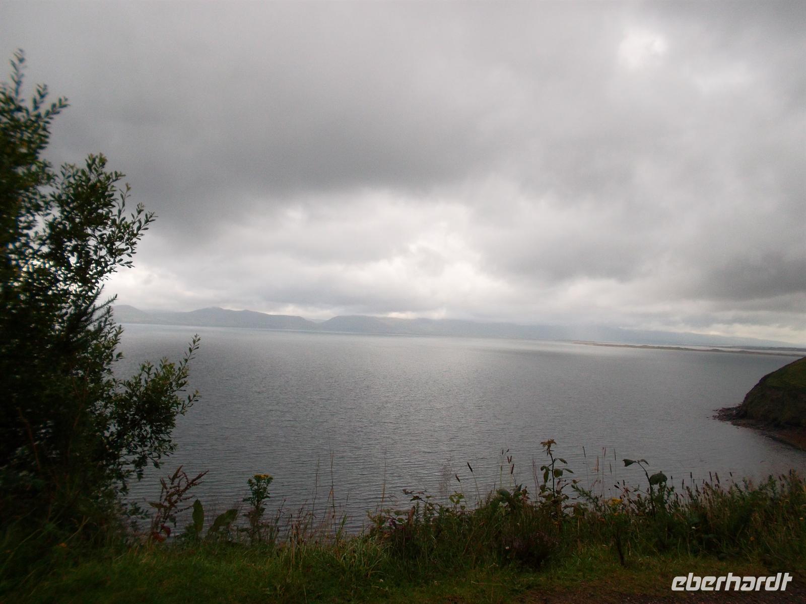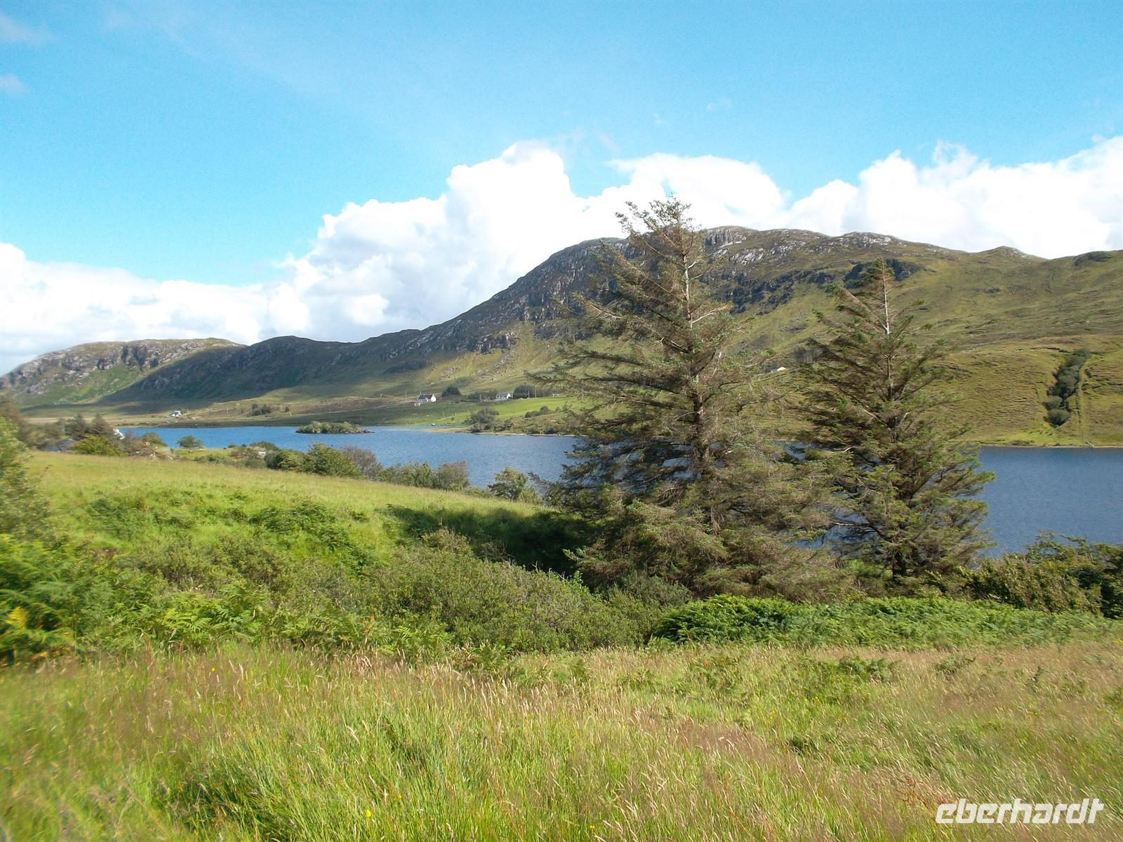 Bei schönem Wetter ging es heute zum fakultativen Ausflug in den Glenveagh Nationalpark, an dem alle Reisenden teilnahmen. Vorbei am Seengebiet um Gartan, von wo der Heilige Kolumban stammte, der in Irland Mönch wurde und dann Schottland christianisierte, führte die Tour in eines der idyllischsten Täler im Norden Irlands. Der heutige Park konnte erst entstehen, als ein Landspekulant Mitte des 19. Jahrhunderts die ganze Gegend aufkaufte und zu Glenveagh - dem „Tal des Lebens“ zusammenfasste. Der Besitzer John George Adair vertrieb 244 Pächter aus dem Gebiet, um Viehzucht zu betreiben und ließ 1867 mit dem Bau von Glenveagh Castle beginnen, das 1873 fertig gestellt wurde. Nach seinem Tod und dem seiner Frau Cornelia kauften nacheinander zwei Amerikaner das Anwesen und der letzte Besitzer, Mr. McIlhenny, ließ ab 1940 von Fachmann Jim Russell den Garten umgestalten. Er verkaufte 1975 die Ländereien an das Irische Office of Public Works, damit dieses den National Park gründen konnte. 1983 überließ er dann auch den Garten und das Schloss mit dem Großteil der Einrichtung der Nationalparkverwaltung. So kann das Schloss mit seiner Einrichtung heute noch im fast ursprünglichen Zustand besichtigt werden und wurden - der Nationalpark 1984 und das Schloss 1986 - für die Öffentlichkeit zugänglich gemacht.