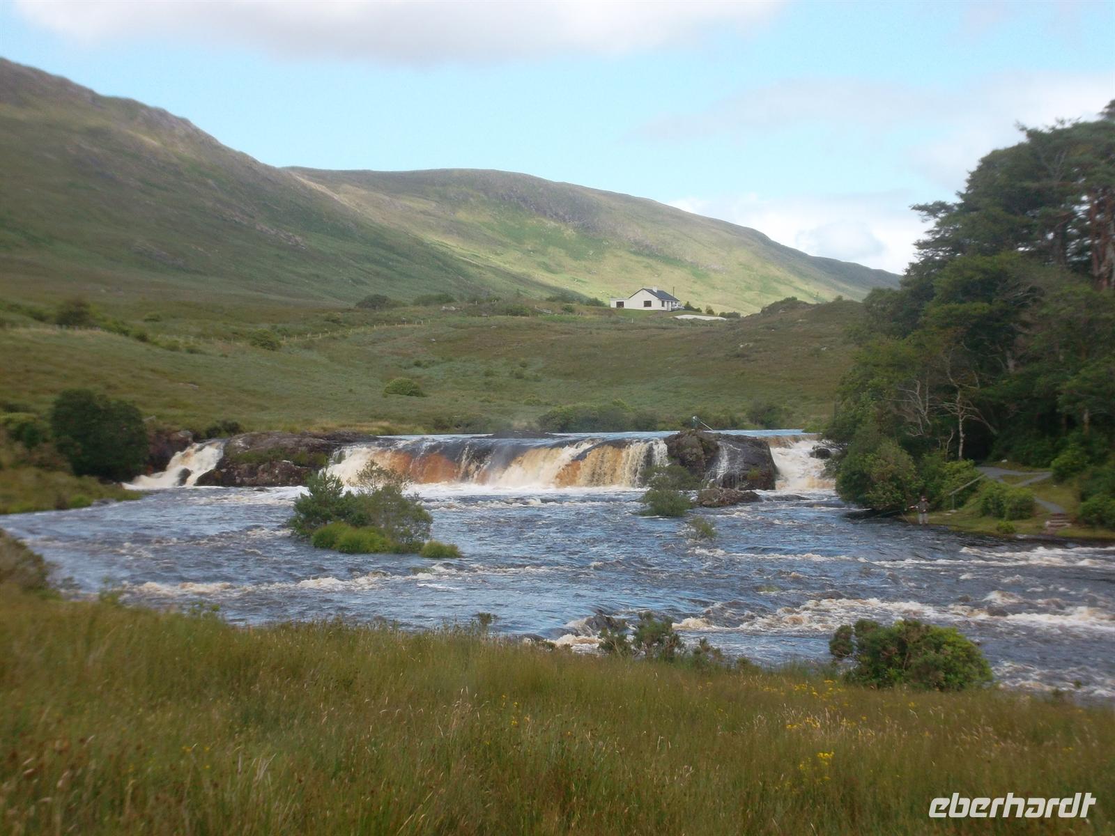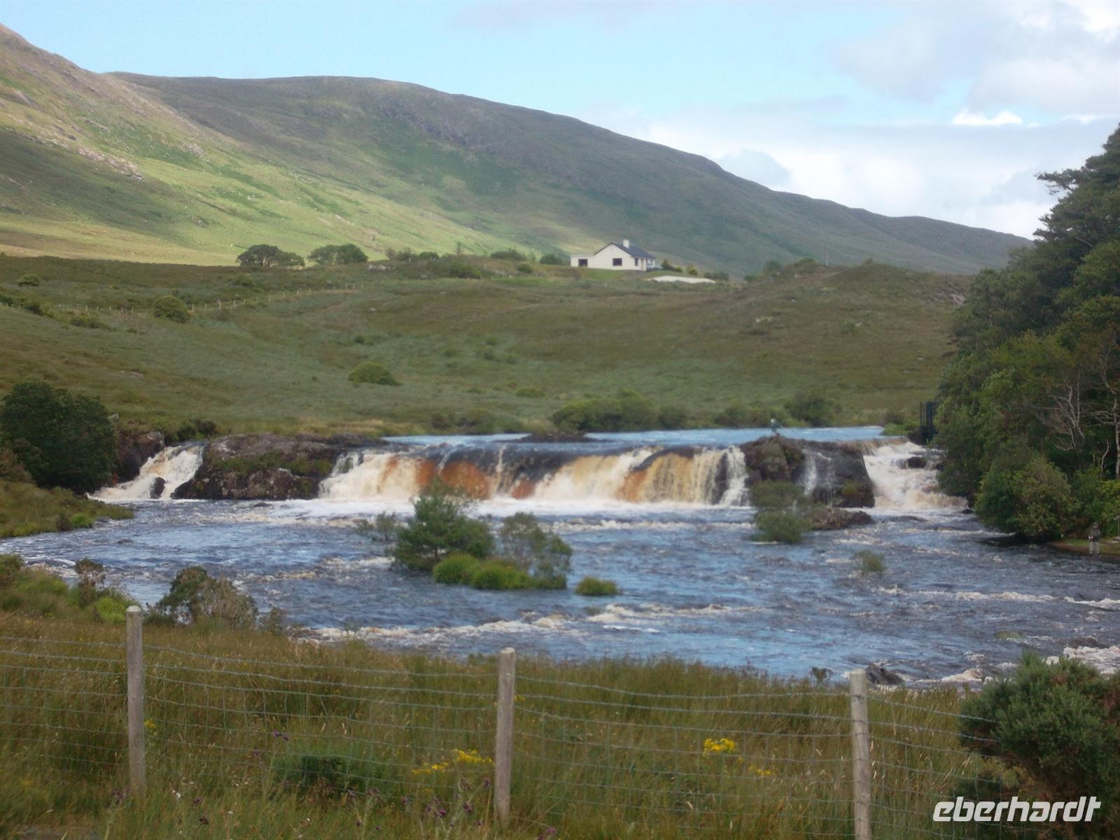 Der nächste Fotostopp zeigte die Aasleigh Falls, bei denen der kleine Fluß Erriff ein paar Meter über die Felsen springt. Um die Maumturk Mountains herum ging es dann zu einem weiteren Stopp nach Maam Cross, der Kreuzung der wichtigsten Straßen in Connemara, bevor wir zum Abendessen an Galway vorbei ins „Lady GregoryHotel“ zurückkehrten.