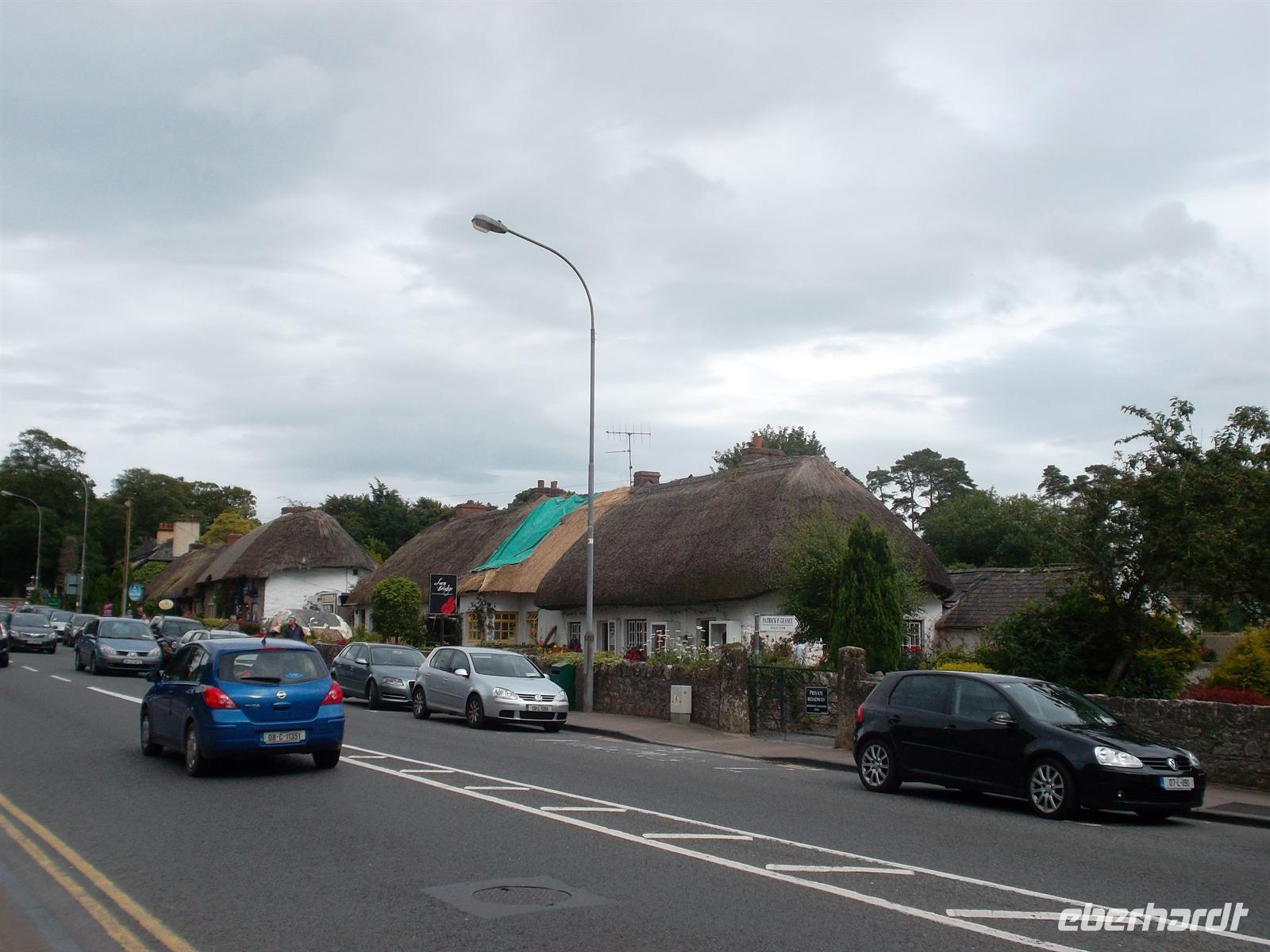 Es blieb genug Zeit für längere Spaziergänge, jede Menge Fotos und für die Mittagspause, bevor wir unseren Weg zum Besuch von Bunratty Castle und Folk Park fortsetzten. Rings um die einstige Normannennburg Bunratty erstreckt sich heute ein Freilichtmuseum der besonderen Art: In der Burg befindet sich ein Museum und die einstige Bankett- und Audienzhalle der Burg und um sie herum wurden verschiedene traditionelle irische Bauern- und Stadthäuser errichtet, teilweise an anderen Stellen abgetragen und im Bunratty Folk Park wieder aufgebaut. Nach ungefähr eineinhalb Stunden nostalgisch-irischen Bummels ging es weiter nach Tralee - nicht ohne noch einen kurzen Fotostopp im Vorzeigedorf Adare mit seinen „thatched houses“ einzubauen. In Tralee, der Hauptstadt der Grafschaft Kerry , wohnten wir im großen „Mount Brandon Hotel“, direkt gegenüber dem irischen Volkstheater „siamsa Tire“