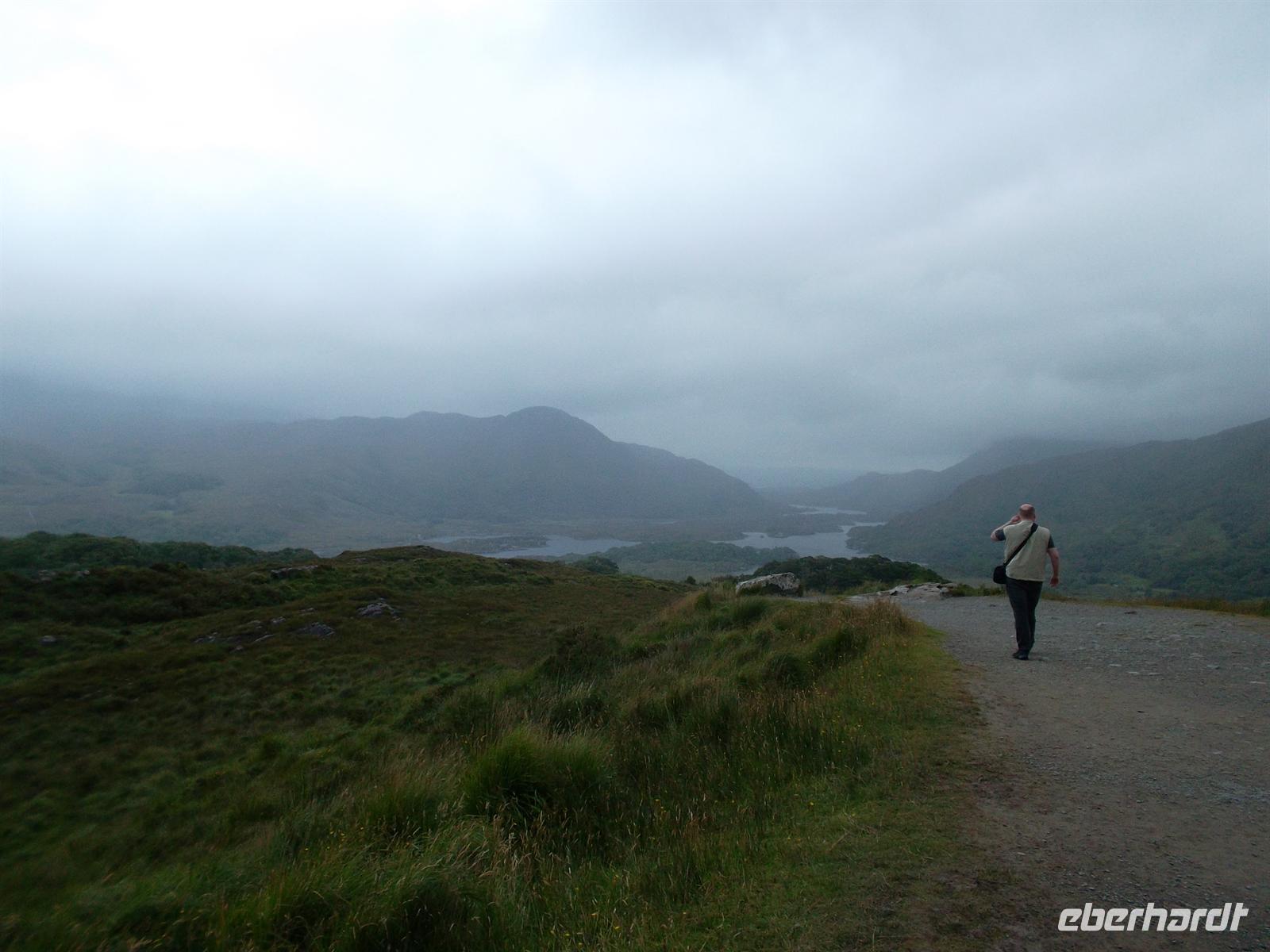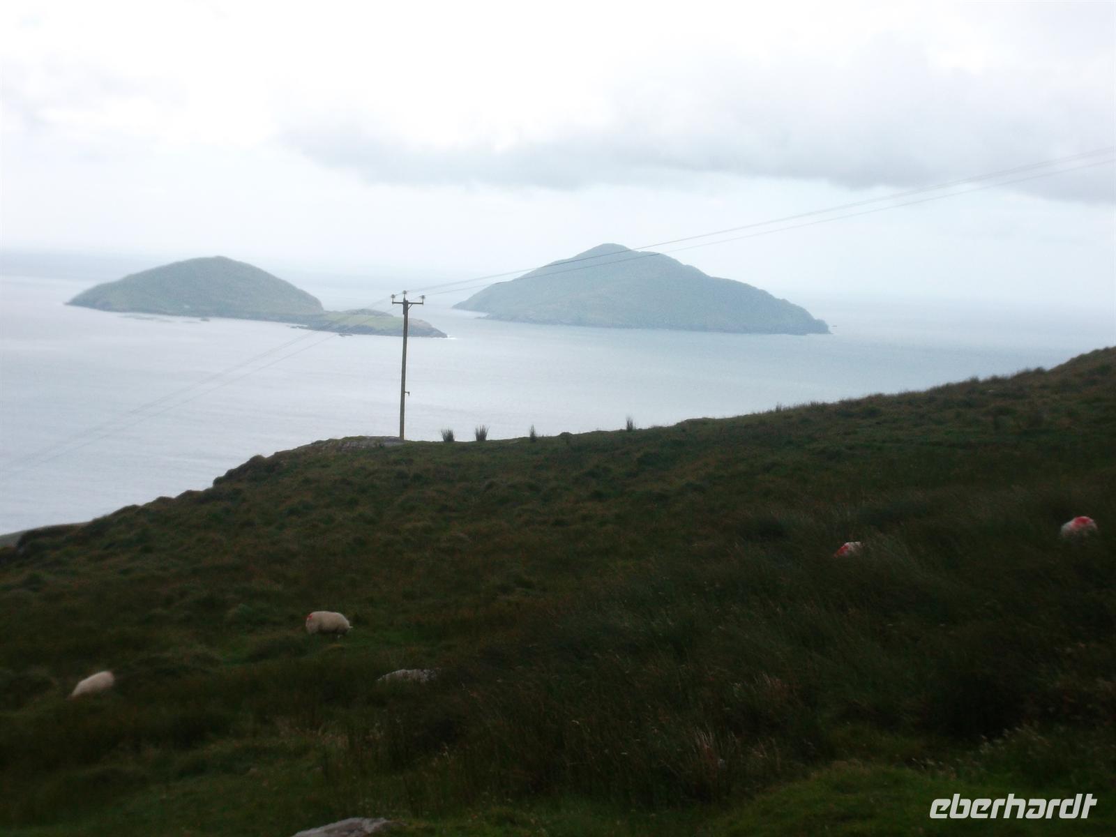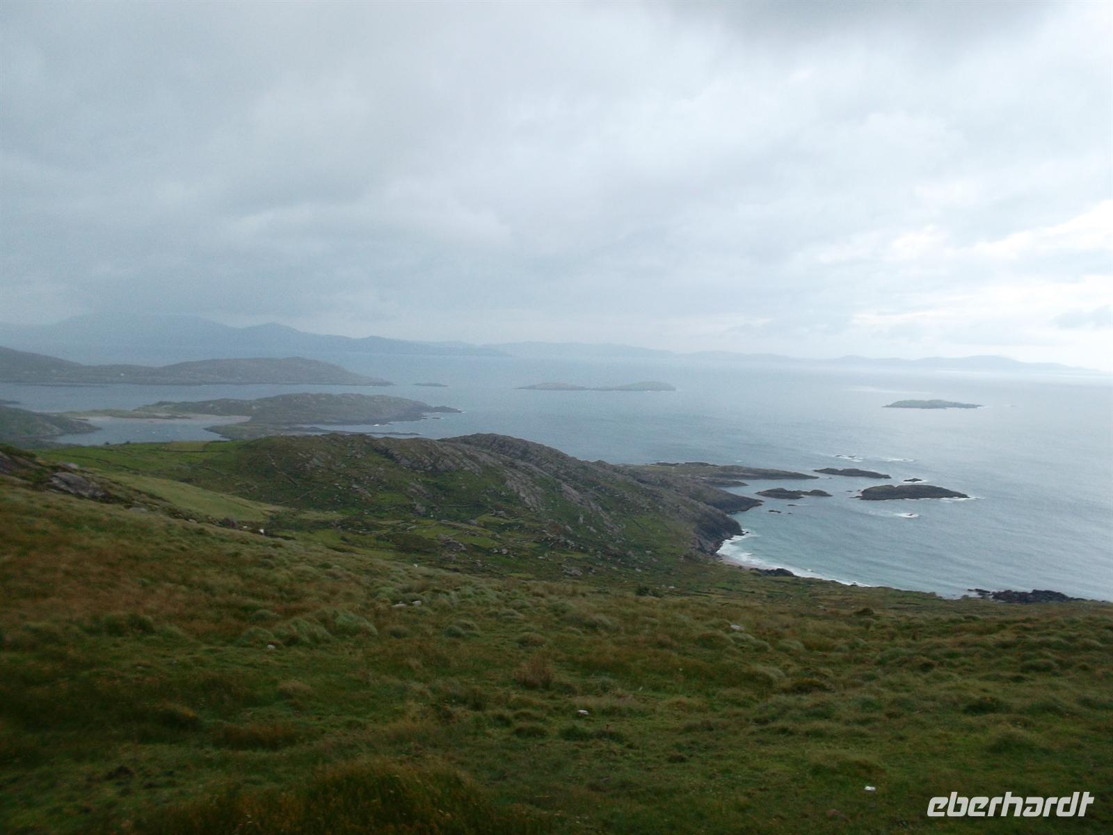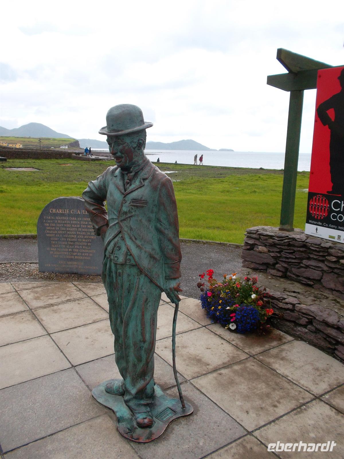 Nach Mittagspause mit Bordservice setzten wir unsere Tour rund um Kerry fort: Mit Fotostopps in Waterville, dem bevorzugten Ferienort von Charlie Chaplin, dem man hier ein Denkmal errichtet hat und am Coomakesta Pass, wo man einen herrlichen Blick auf zwei verschiedene Küstenszenerien hat und vom Wind immer fast weggeweht wird…