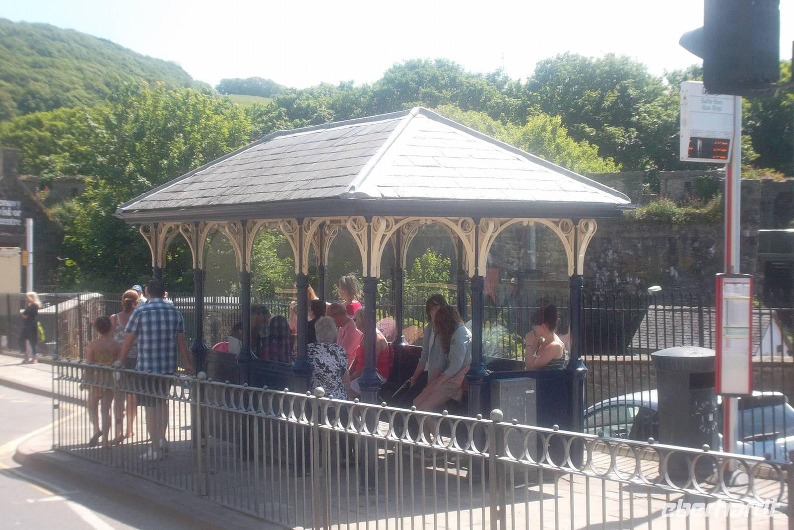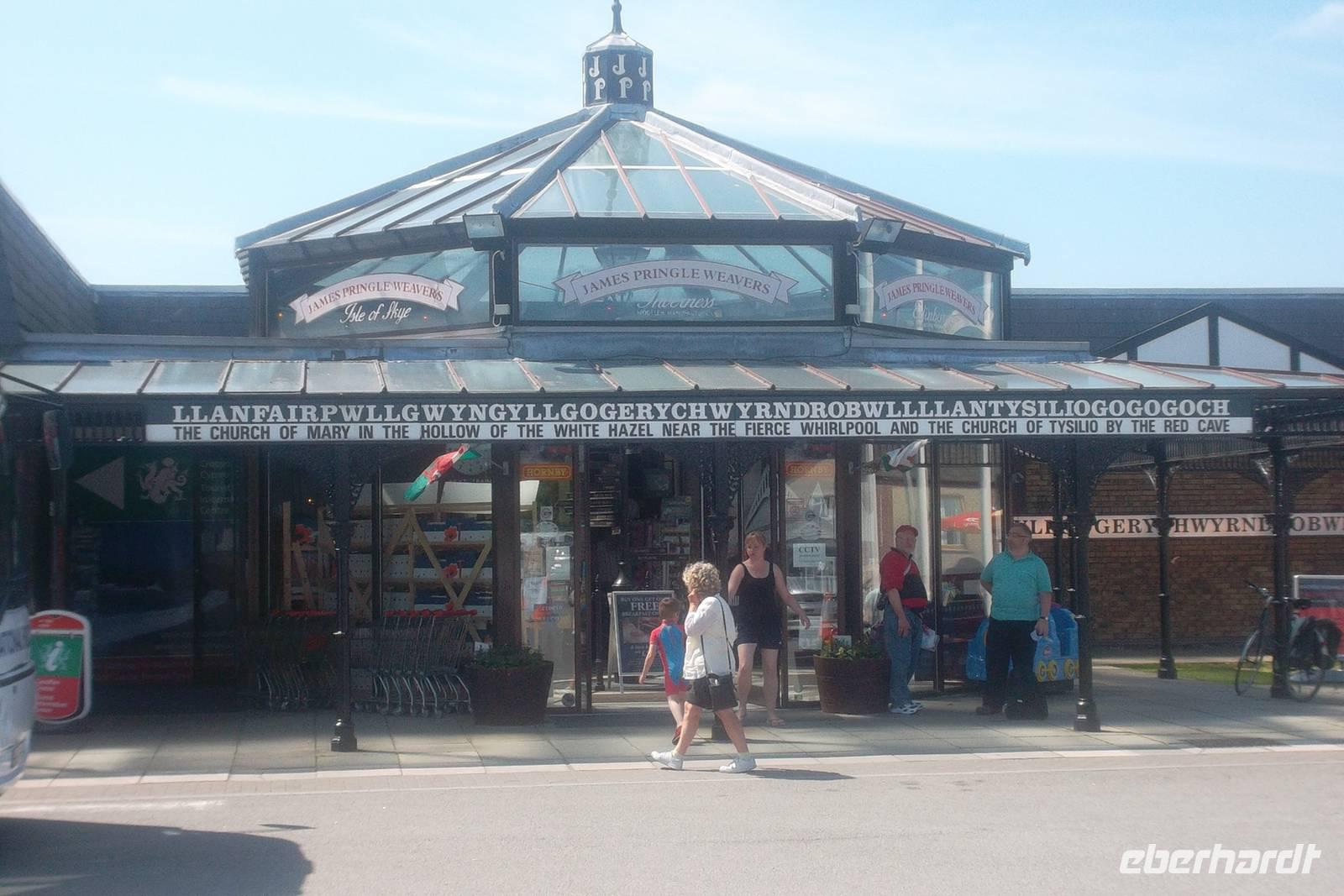 Nach Überquerung der malerischen Meerenge Menai-Strait, die die Insel Anglesey von Festland-Wales trennt, legten wir noch einen Stopp in einem ungewöhnlichen Ort ein. Er ist bekannt für den längsten Ortsnamen Europas und heißt Llanfairpwllgwyngyllgogerychwyrndrobwllllantysiliogogogoch - abzulesen beispielsweise an der Eisenbahnstation. .