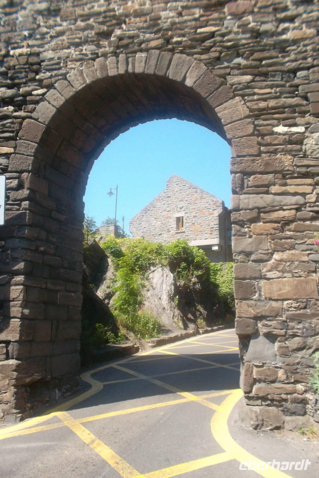 Mittagspause legten wir wie immer während dieser Reise - denn wir hatten ja heute keine Bordverpflegung - im kleinen „Hauptort“ der Region Connemara ein. Clifden ist ein typisches irisches Städtchen mit buntbemalten Häusern, das wohl keine zweitausend Einwohner, aber eine sehr hübsche Geschäftsstraße mit vielen Restaurants, Pubs und Souvenirgeschäften hat.