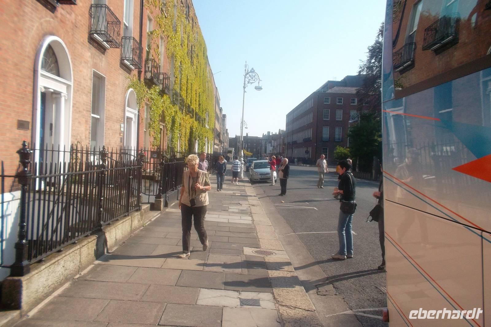 Nach dem Frühstück luden wir unsere Koffer in den Bus und ich konnte zuerst die komplette Reisegesellschaft - nunmehr aus 36 Personen bestehend - begrüßen. Unsere Stadtführerin Hillary Carr brachte uns ihre Stadt interessant nahe und zeigte uns nach den berühmten „doors of Dublin“ - hinter denen sich die buntgestalteten Eingangstüren der altehrwürdigen georgianischen Häuser verstecken und von denen keine gleich aussieht die verschiedenen Parks und Wohnviertel Dublins. Besonders interessant ist der Phoenix-Park, der größten Park Europas. Nach verschiedenen Stopps - unter anderem im Phoenix-Park und vorher an der St-Patricks-Kathedrale - gelangten wir wieder in der Innenstadt, fuhren am Parlament vorbei und besuchten zum Schluss die Dubliner Universität Trinity-College. Von hier ist es nicht weit zur Einkaufsstraße Grafton Street, zur Universitäts-Bibliothek mit dem berühmten „Book of Kells“ und zu anderem Sehenswerten der Innenstadt, in der nun die Reisegäste gut eineinhalb Stunden Freizeit nutzen konnten.