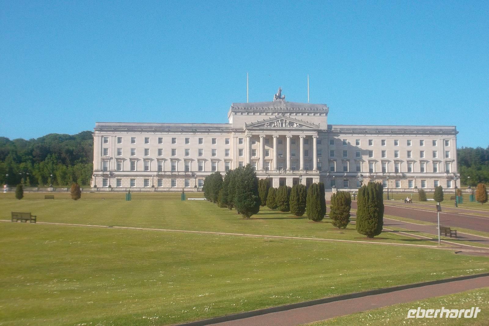 Gegen Mittag fuhren wir mit unserem Bus auf der neugebauten Autobahn in Richtung Nordirland, um für ein weiteres kleines „Extra“ abzuschwenken. Das alte, berühmte Kloster Monasterboice liegt hinter dem Boyne-Tal unweit der Autobahn. Es hat neben der beeindruckenden Kirchenruine den Rest eines Rundturmes, vor allem aber zwei berühmte, reichverzierte Hochkreuze. Hier gibt es das Muireadach-Cross, das wohl aus dem neunten Jahrhundert stammt und reich mit biblischen Szenen verziert ist. Außerdem steht westlich davon das „Tall Cross“, Es ist auch reich mit Skulpturenschmuck verziert und gilt als das höchste historische Steinkreuz in Irland. Von hier setzten wir die Reise nach Nordirland fort. Da wir Belfast früh erreichten, konnten wir in uns er Hotel „Jurys Inn“ einchecken und uns danach mit der hiesigen Stadtführerin Bibi Barretrt treffen. Sie zeigte uns auf eiuner Rundfahrt Belfasts Höhepunkte: das gewaltige Rathaus aus viktorianischer Zeit, die Neostil-Häuser, den „Crown-Pub“ und den neogotischen Uhrturm. Schließlich fuhren wir auch noch hinaus zum herrlich gelegenen Parlamentsgebäude Stormont. Immer wieder faszinierend aber ist die Fahrt durch die Straßen von West- und Ost-Belfast, die zur Zeit der „troubles“, wie man hier den Nordirland-Konflikt nennt, mit bekannten Wandmalereien verziert wurden und die bis heute die Religionsteilung in Belfast bezeugen. Nichts tut jedoch der Tatsache Abbruch, dass Belfast eine wunderschöne Stadt voll quirligen Lebens ist, wovon sich jeder abends beim Pubbesuch überzeugen konnte, denn beispielsweise der denkmalgeschützte „Crown Liquor Saloon“ mit alten Gaslampen, Marmortheke und Mahagoni-Ausstattung lag nur drei Gehminuten von unserem Hotel entfernt!