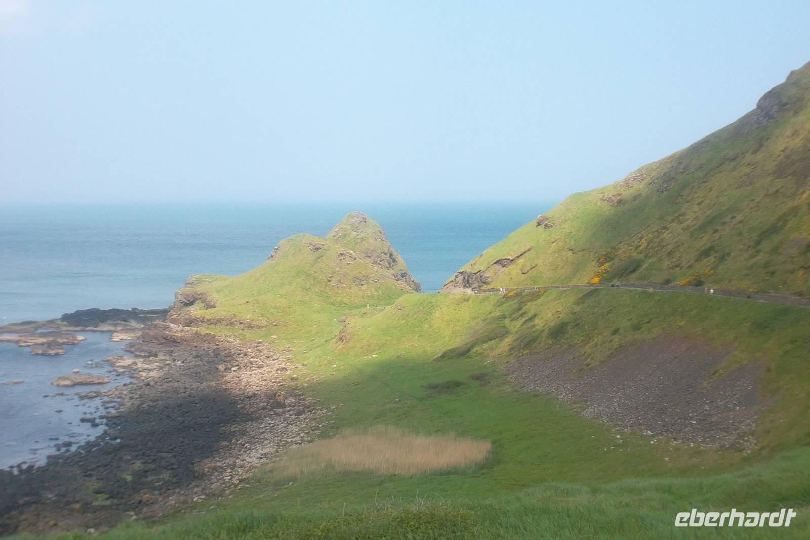 Die wohl größte Sehenswürdigkeit des nordirischen Nordens ist der „Giants Causeway“, eine Felsenformation vulkanischen Ursprungs, die zum UNESCO-Weltnaturerbe gerechnet wird. Von der Legende zum „Damm der Riesen“ erklärt, besteht die Formation aus mehr als 40.000 Basaltsäulen. Diese regelmäßig geformten Naturobjekte sind über 60 Millionen Jahre alt und weisen überwiegend sechseckigem Querschnitt auf, wobei die größten dieser Steinsäulen bis zu zwölf Meter hoch sind. Mehrere Kilometer weit führt die Basaltschicht entlang der Klippen und führt dann ins Meer hinein. Wissenschaftlich gilt der „Giants Causeway“ als Abkühlungsphänomen mit Spannungsrissen aus ehemals heißer Lava. Die Legende aber schreibt den Vulkan-Damm vom Riesen Fionn zu. Entweder habe er ihn gebaut, um einer Riesenbraut aus Schottland näher zu kommen oder aber, um mit seinem schottischen Widersacher Benandonner zu kämpfen Er hatte riesige Felsen aus den Klippen der Küste herausgerissen und ins Meer geschichtet, dann aber Angst vor dem schottischen Riesen bekommen. Mit List konnte er aber schließlich seinen Widersacher in so große Furcht versetzen, dass der den Damm zerstörte um ungehindert zurück nach Schottland zu gelangen. Ein ganz neues Besucherzentrum bietet viel unterhaltsam dargebrachtes Wissenswertes. Da wir dieses Jahr sehr schönes Wetter hatten, war der Spaziergang zu den schönsten Basaltformationen ein echtes Vergnügen..