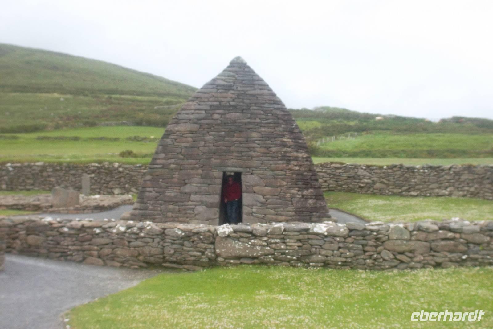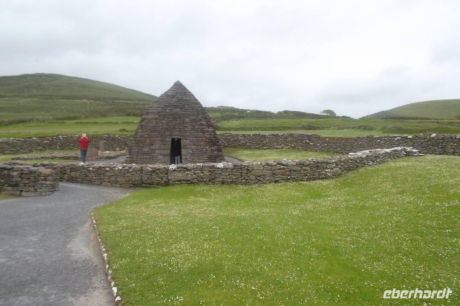 Diesmal hatten wir Glück, denn es war genügend Platz am schönsten Aussichtspunkt des Slea Head, von wo man auch die Blaskett-Inseln sehen kann. Diese vorgeschobenen Felseninseln waren noch bis in die sechziger Jahre des 20. Jahrhunderts bewohnt und dienen heute nur noch zum Schafsaustrieb und für Besichtigungen bei gutem Wetter und ruhiger See. Traditionell konnte ich - als „Richtig reisen-Extra“ - auf dem Heimweg noch einen Besuch am Gallarus Oratory einschieben. Vielleicht ist es die älteste erhaltene Kirche Europas, deren Form an ein umgedrehtes Schiff erinnert. Wie die Bienenkorbhütten besteht sie aus nur einem fensterlosen Raum mit einem Eingang und wurde aus unglaublich perfekt passendem Trockenmauerwerk errichtet.