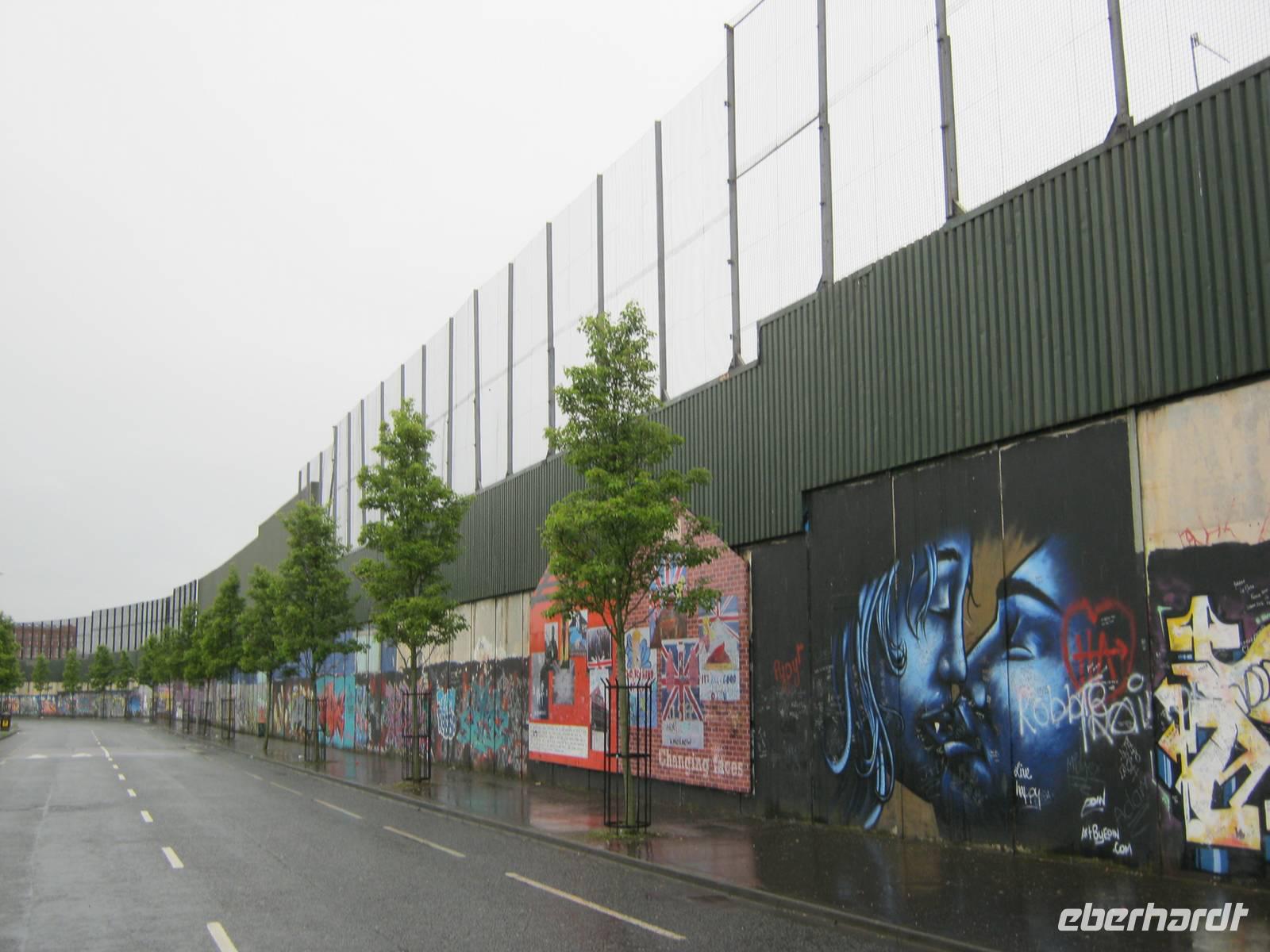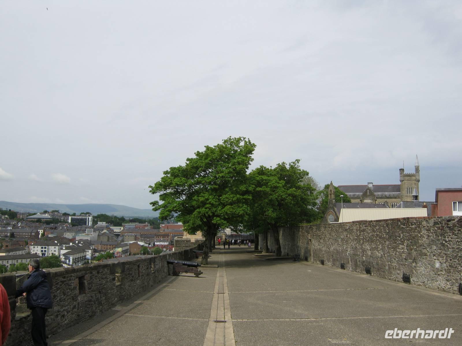 (London-) Derry ist durch eines der schönsten Volkslieder weltweit bekannt - „Oh Danny boy...", aber hier entstand auch das berührende Kirchenlied „Amazing grace", welches in seiner Dudelsack-Variante in den 70ern Furore machte. Die Stadtmauer aus dem frühen 17. Jahrhundert gilt als die besterhaltene ganz Großbritanniens; auf ihr kann man wunderbar flanieren und dabei Einblicke in die Ortsgeschichte von den Zeiten des Bürgerkrieges gewinnen. Spätestens auf der Bogside, dem katholischen Siedlungsgebiet, werden Erinnerungen an die blutigen Ereignisse der „Troubles" wachgerufen durch Denkmäler (you are now entering free Derry und Bloody Sunday Memorial) und Wandgemälde. Für Ausländer ist es schwer, die vielfältigen Hintergründe dieser leidvollen Phase zu begreifen aber dennoch berührend.