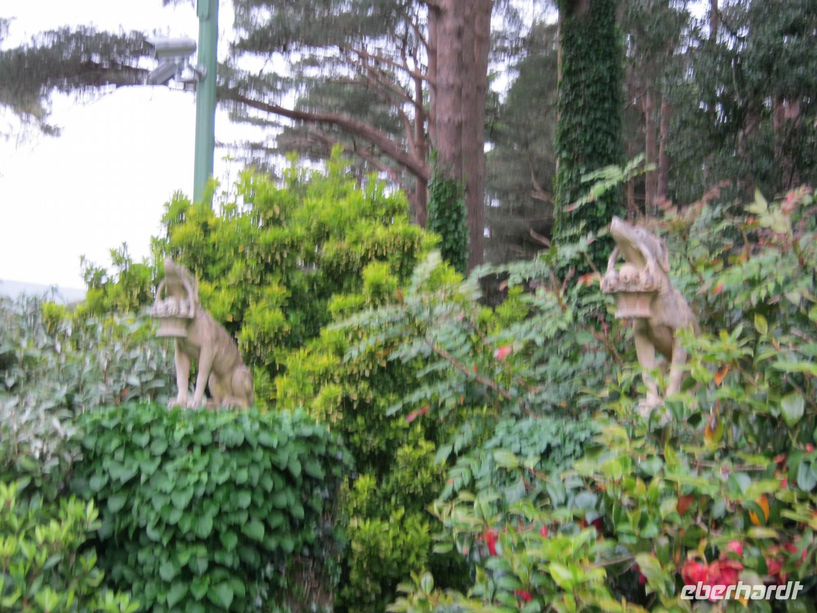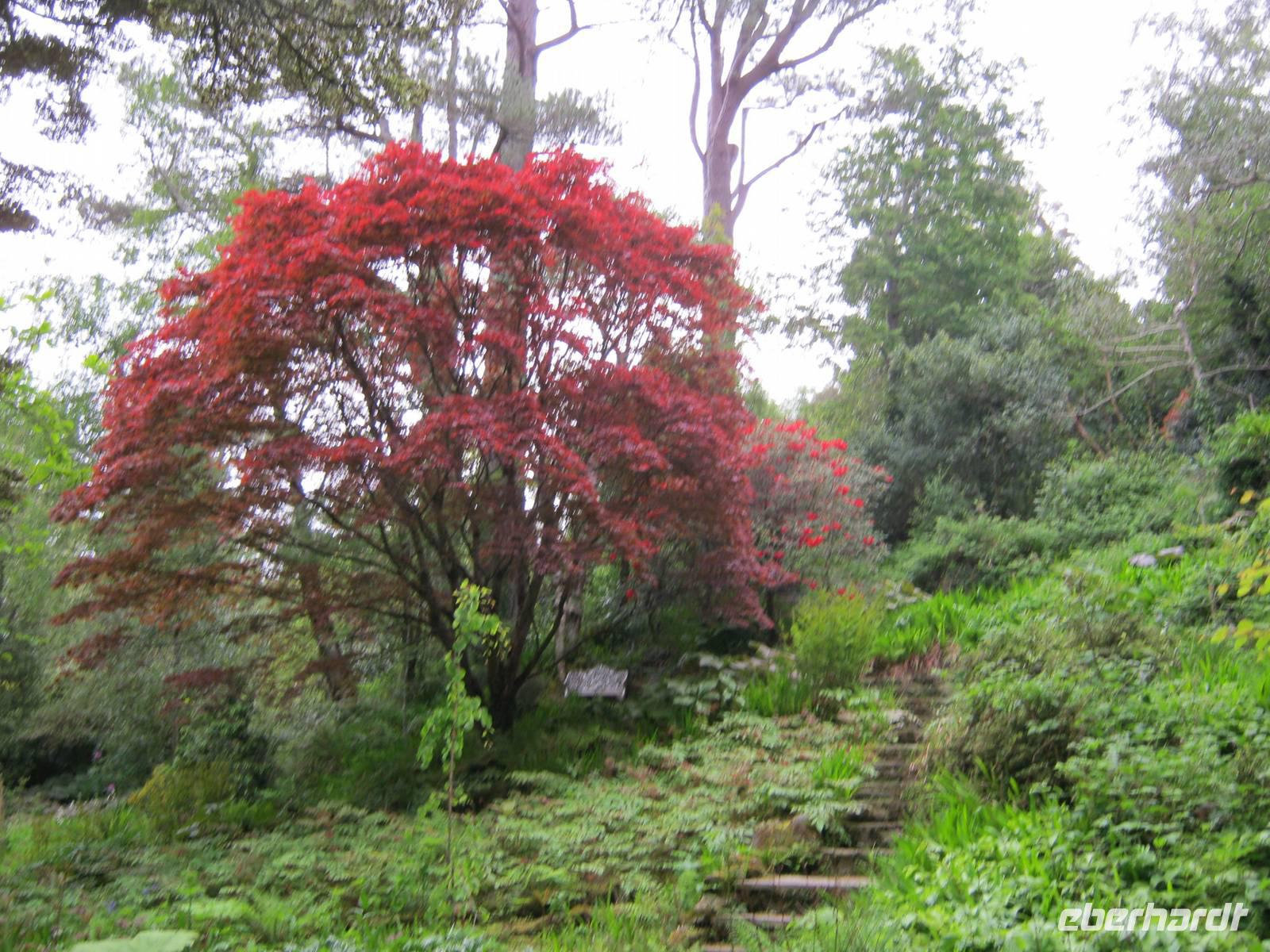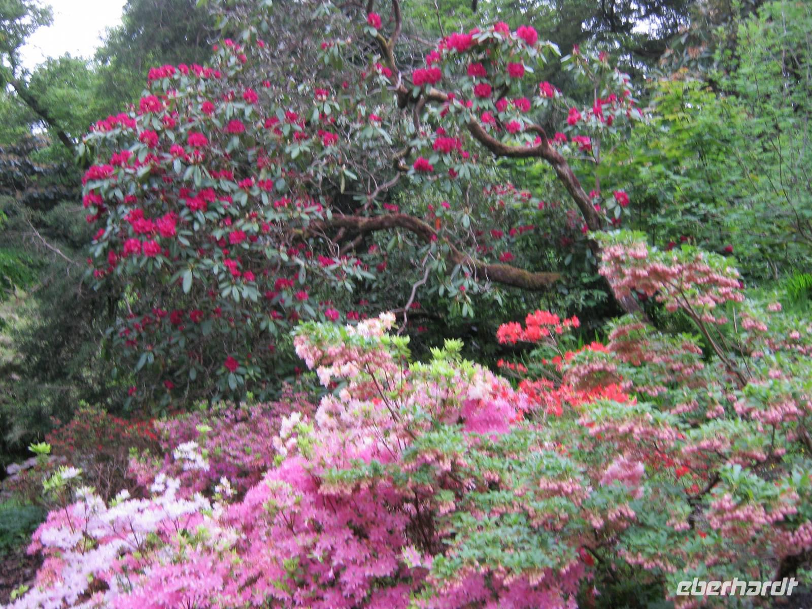 Unser erster fakultativer Ausflug führte in den Glenveagh Nationalpark. Dort hatte in der zweiten Hälfte des 19. Jahrhunderts ein reicher und grausamer Tyrann in einem windgeschützten Winkel der Bergeinöde sich sein eigenes kleines Paradies mit nachgebautem Ritterschloß und umliegendem Park geschaffen. Die Besitzung erlebte wechselvolle Schicksale und gehört heute dem Staat. Bei der Innen-Besichtigung erfährt man viel über den Lebensstil der ehemaligen Bewohner und über die Blütezeit der Gastfreundschaft als Greta Garbo und Yehudi Menuhin hier weilten. Zum selbstversorgenden Gutsbetrieb gehörten neben Stallungen und Gewächshäusern auch ein ausgedehnter Blumen-, Obst-, Gemüse- und Kräutergarten. Immerhin mussten siebzig Vasen im Haus täglich frisch bestückt werden. Die Pleasure Grounds mit ihren teilweise exotischen Gewächsen gehören heute zu einem botanischen Forschungsverbund.
