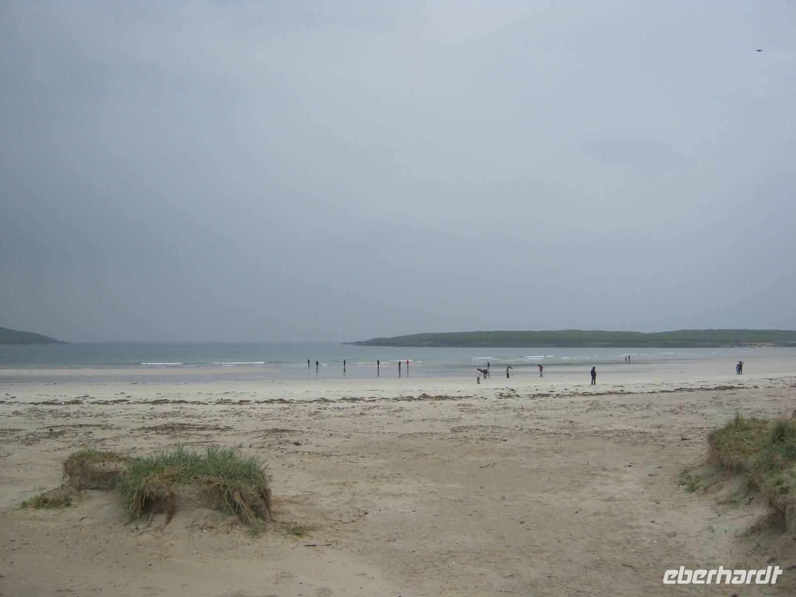 Weiter führte die Route durch das County Donegal mit seinen Bergen deren höchster der Mount Errigal ist, zum „Seebad" Naran am Atlantik mit seinem wunderschönen Sandstrand. Leider war kein Badewetter! Überhaupt zeigte sich das Wetter während der ganzen Reise typisch irisch - nämlich wechselhaft, aber im großen und ganzen hatten wir noch Glück; richtig heftig wurde es erst am Rock of Cashel, wo wir uns dann in den Kinoraum flüchteten. In Ardara bot sich uns die Gelegenheit eine Manufaktur zu besuchen, wo einer der letzten Meister am Handwebstuhl den berühmten Donegal-Tweed herstellt. Wir lernten eine Menge über Textilien und einige ließen es sich nicht nehmen das eine oder andere Stück aus dem dem Familienbetrieb angeschlossenen Laden zu erwerben - ein passendes Mitbringsel aus Irland.