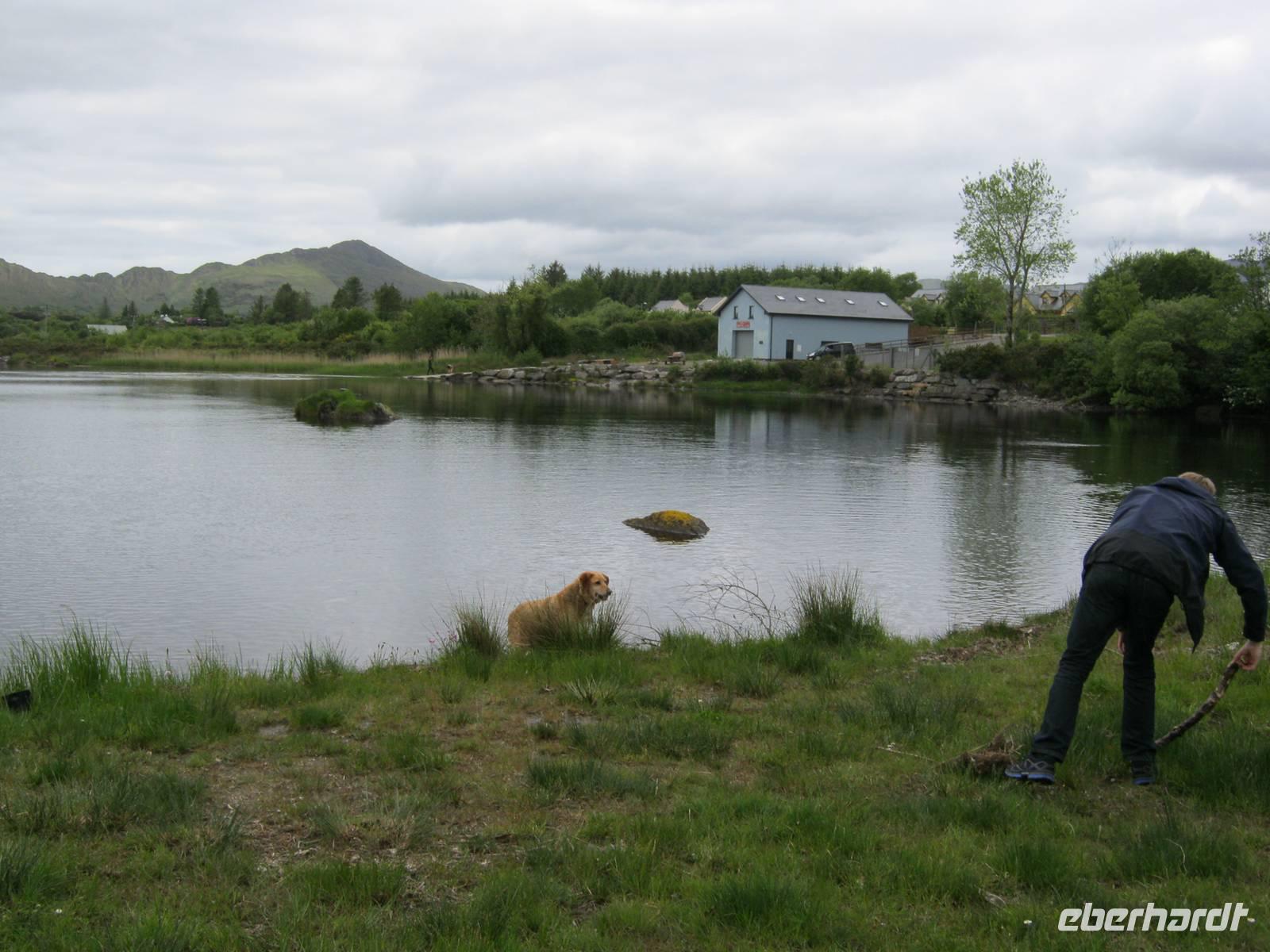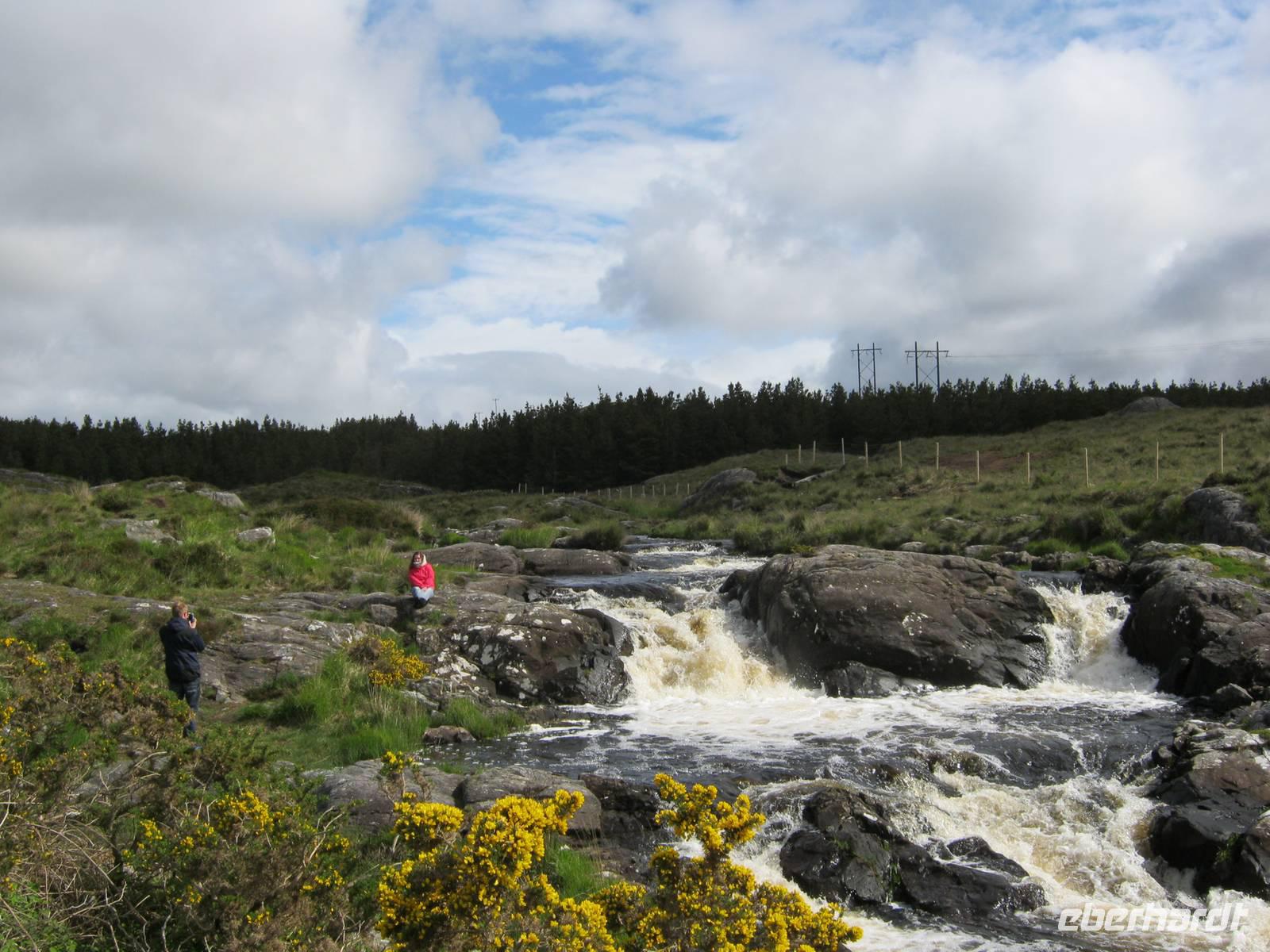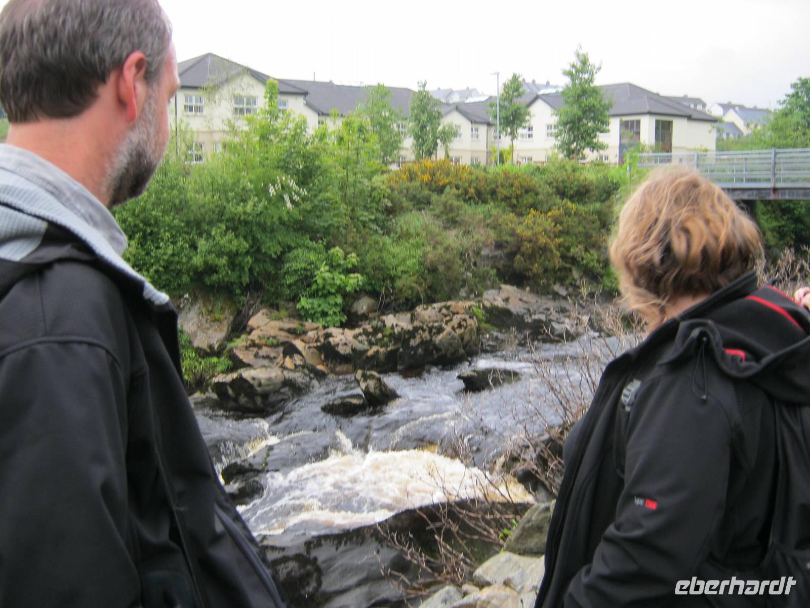Kurz nachdem wir die (heute unsichtbare) Grenze zur Republik Irland wieder überschritten hatten, bezogen wir Quartier in der prosperierenden Kleinstadt Letterkenny im Station House Hotel, das an den früheren Bahnhof erinnert. Gleich über die Straße kann man von der Brücke aus das Phänomen beobachten, dass der Fluss je nach Ebbe und Flut scheinbar seine Fließrichtung ändert.
