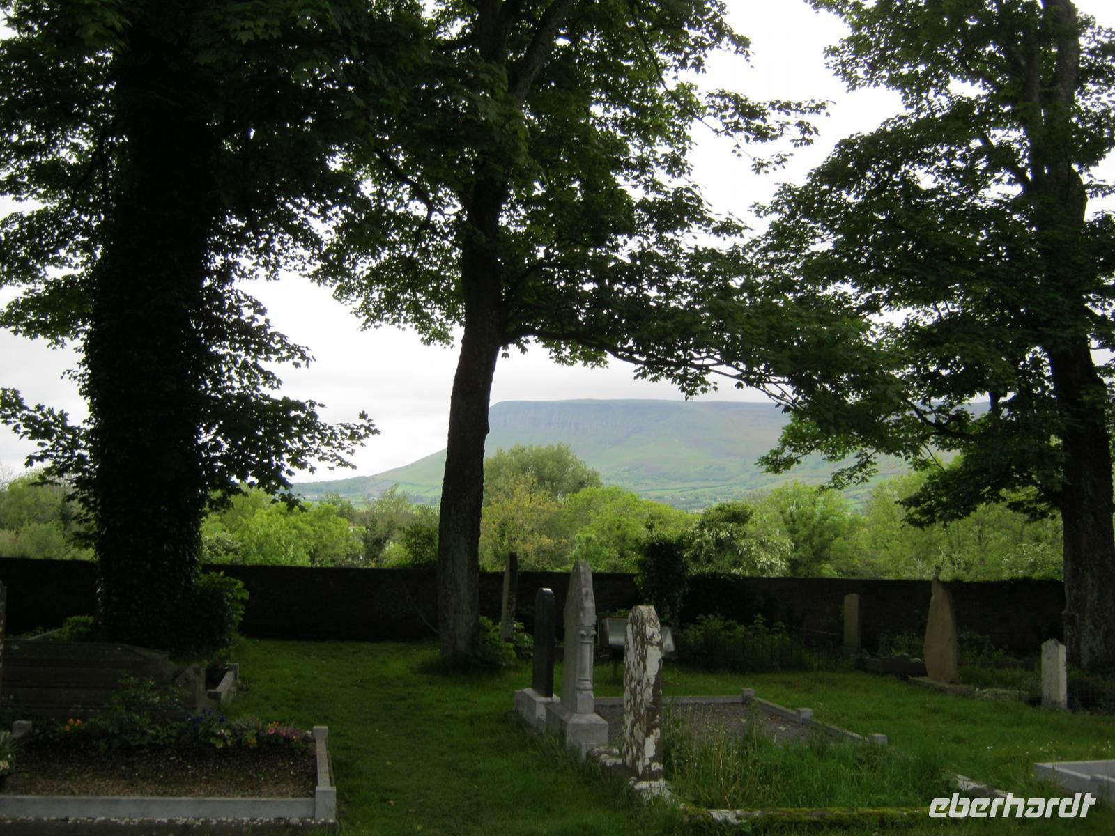 Wenn man südlich weiter Richtung Sligo fährt kommt man durch den kleinen Ort Drumcliff, wo der bedeutendste irische Dichter William Butler Yeats im Schatten des sagenumwobenen Benbulben-Massivs glückliche Kindheits- und Jugendtage bei seinem Großvater verbracht hatte und deshalb auch dort begraben sein wollte. An seinem einfachen Grab, geschmückt nur durch einen tiefsinnigen Spruch, muss man einfach einige seiner schönsten Verse rezitieren. Die Kirche ist ebenfalls sehenswert; man lernt viel über die ländliche Gesellschaft Irlands.