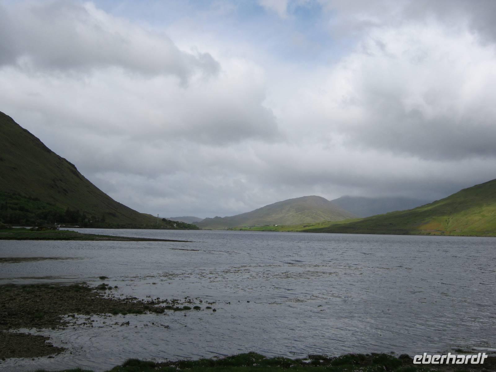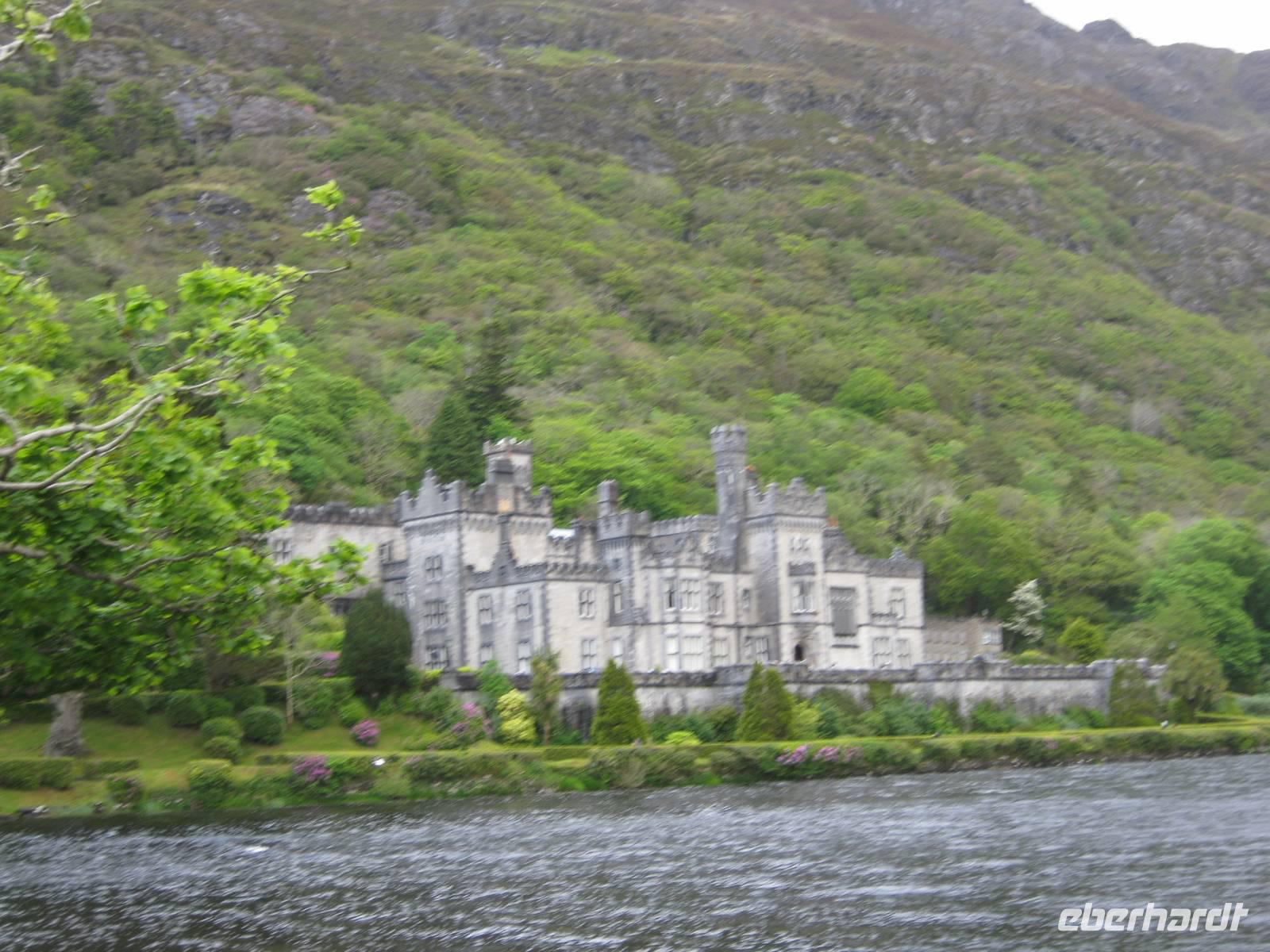 Zur Rundfahrt in die Connemara-Region fuhren wir mit einheimischem Bus samt Fahrer Eric, da unser Jens seinen wohlverdienten und von Brüssel sanktionierten Ruhetag hatte. Wir fuhren erst an Galway vorbei die Küste entlang und dann hinein ins wilde Connemara mit Fotostopp am kleinen „Guinness"-Wasserfall. Zu unserem Leidwesen mussten wir feststellen, dass das an der Schlüsselkreuzung gelegene, als Pausenort gern gewählte Peacock's Hotel geschlossen hatte und wir somit auch nicht die daneben gebaute Replik des Cottage aus dem Film „The quiet man" mit John Wayne und Maureen O'Hara betreten konnten. Also ging es weiter durch das pittoreske Leenaune an Irlands einzigem echten Fjord Killary Harbour ein Stückchen entlang zu einer der meistfotografierten Sehenswürdigkeiten, der malerischen Kylemore Abbey. Dahinter steht eine romantische und tragische Familiengeschichte bis das Anwesen schließlich doch noch das wurde, was schon im Namen angelegt war - ein Kloster. Im Besucherzentrum kann man neben einer reichen Auswahl an Souvenirs mancherlei kaufen und kosten, was von den Schwestern, die ursprünglich aufgrund der Ereignisse des I. Weltkrieges aus Belgien fliehen mussten, selbst hergestellt wird.