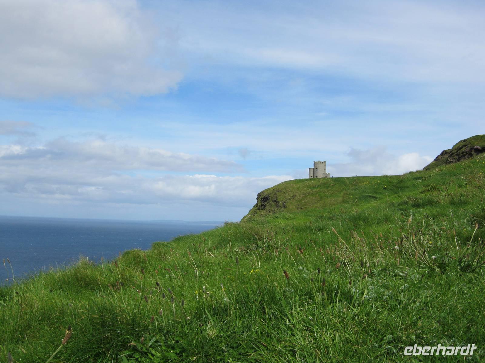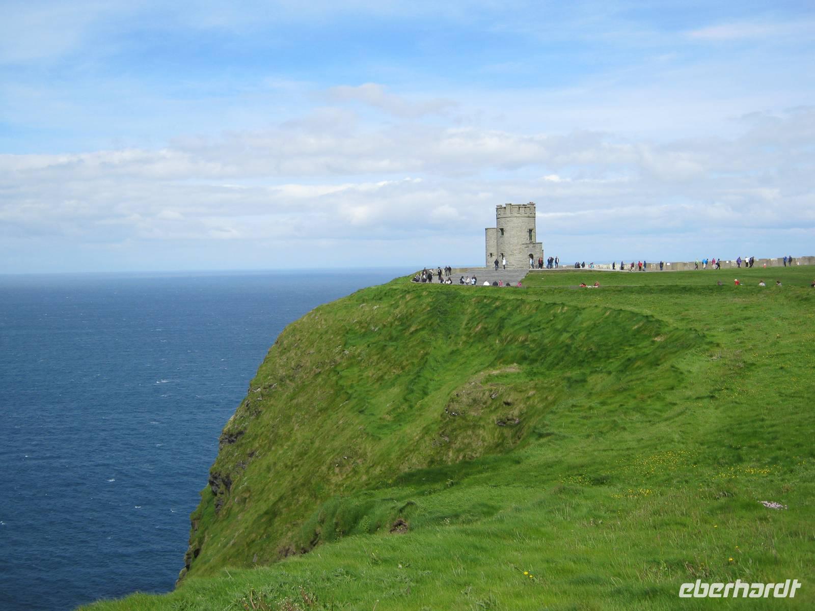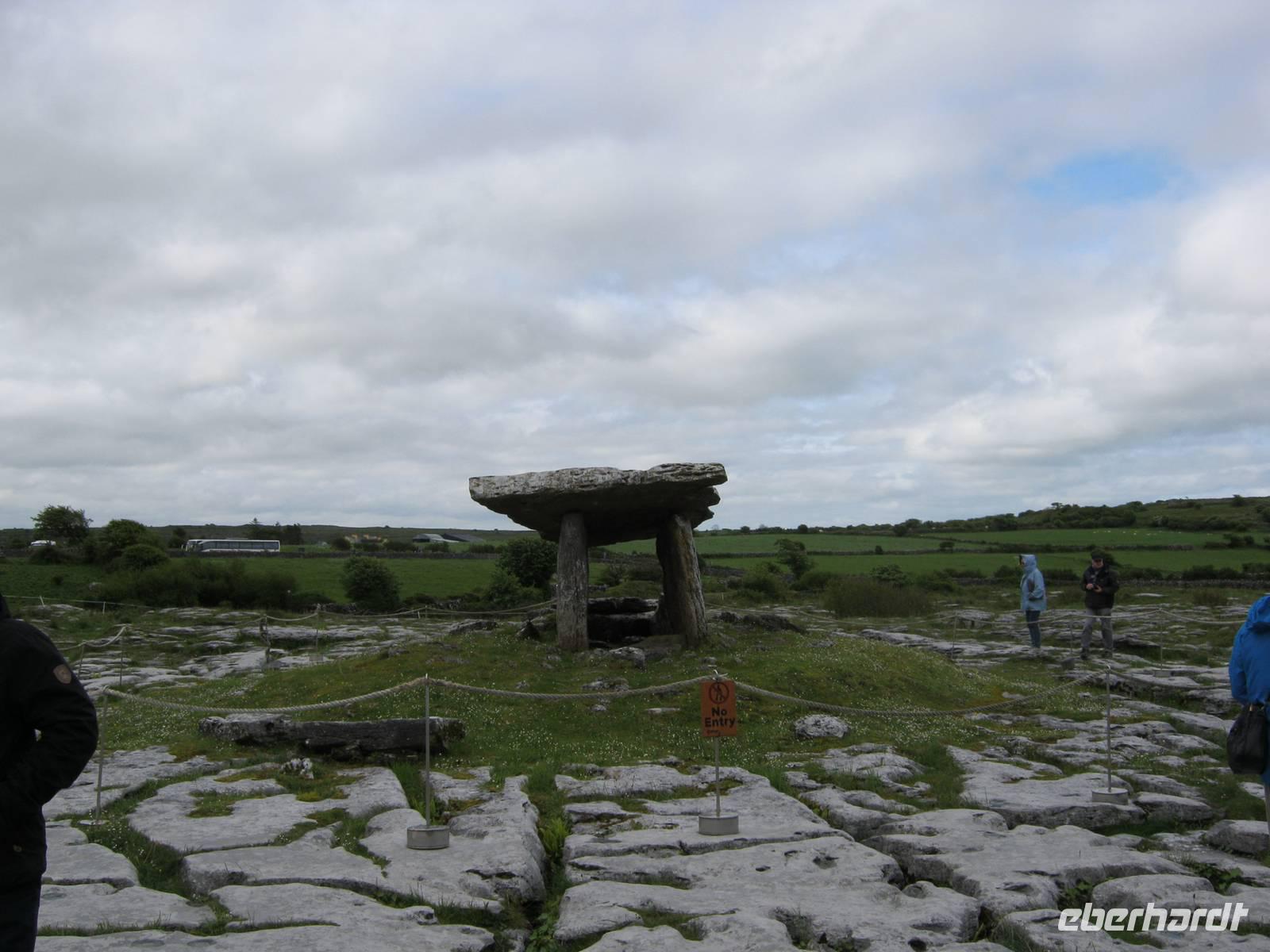 Der nächste Tag war wieder sehr abwechslungsreich. Durch den Burren, die auf den ersten Blick so abweisende Landschaft (Sie erinnern sich an das Zitat von Oliver Cromwell?), welche nichtsdestotrotz seit Jahrtausenden von Menschen und einer ganz eigenartigen Flora und Fauna besiedelt wird, wovon der Poulnabrone-Dolmen und seine Umgebung mit den aufschlussreichen Informationstafeln beredtes Zeugnis ablegen, ging es zu den Cliffs of Moher, nachdem wir noch Lisdoonvarna, den einzigen Kurort Irlands, der im September von den Teilnehmern des Matchmaking Festival förmlich birst, durchfahren hatten. Diese von Seevögeln umkreisten und am Fuß von den Wellen beleckten Klippen sind ein Muss für jeden Besucher Irlands. Die Infrastruktur ist geschickt in den Hügel eingebaut. Zwar war die Harfenistin Tina diesmal nicht persönlich vor Ort, aber eine gekaufte CD brachte sie uns in den Bus.