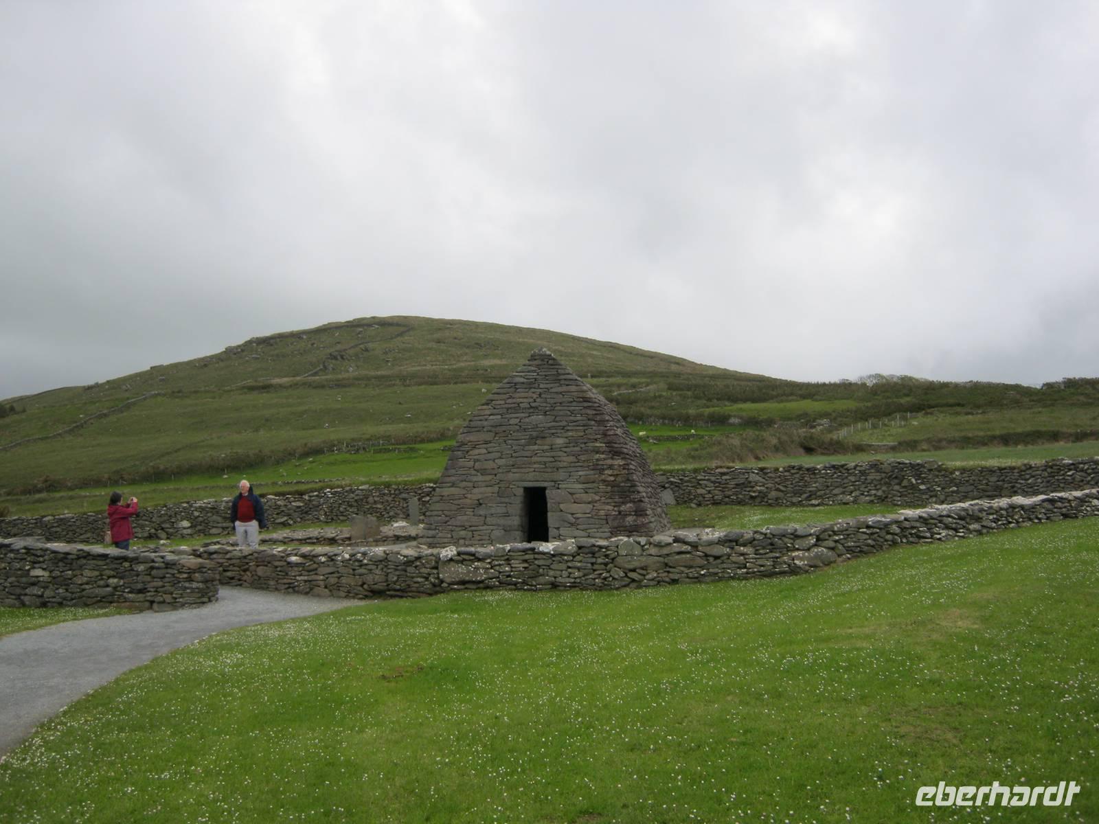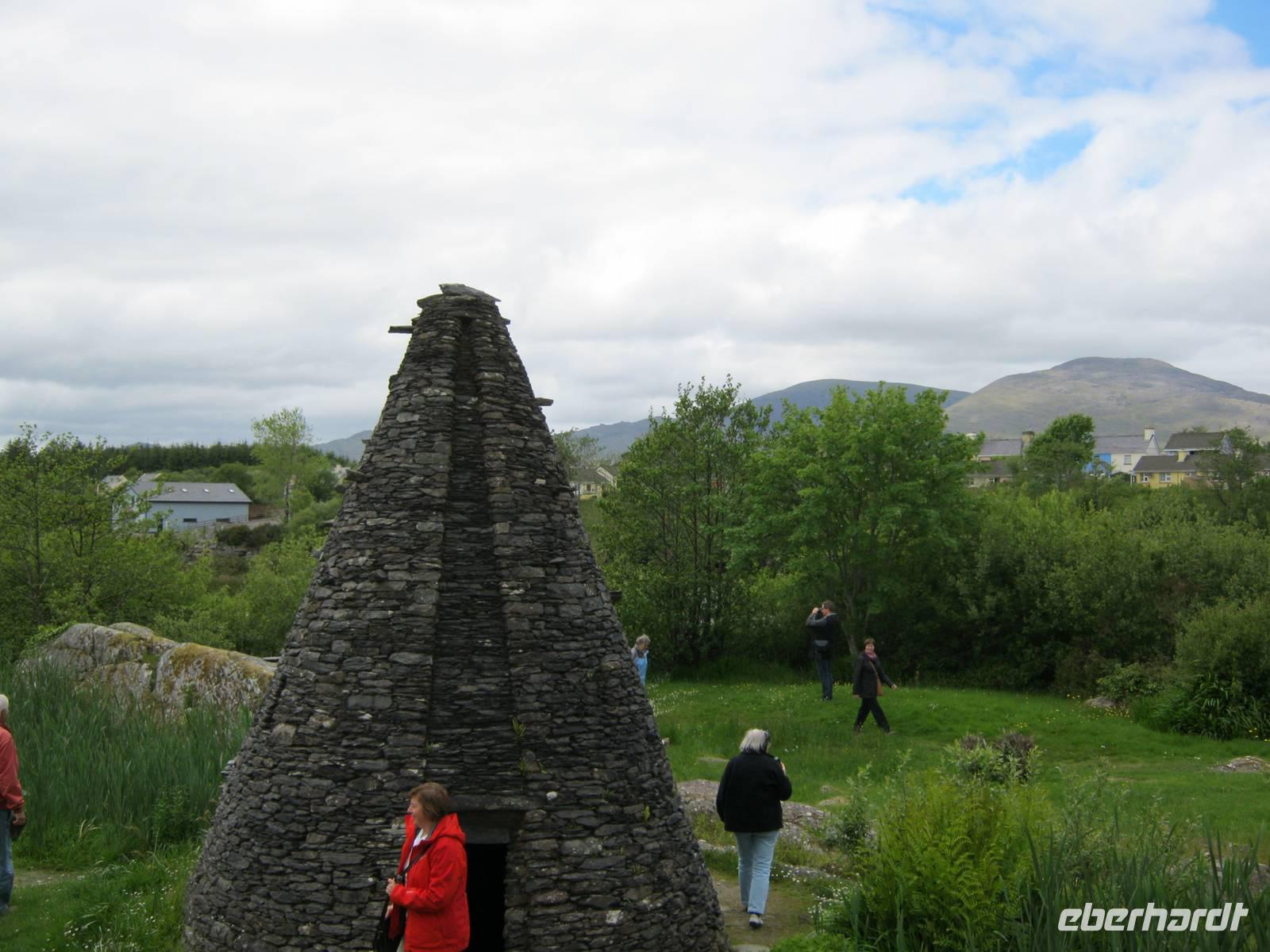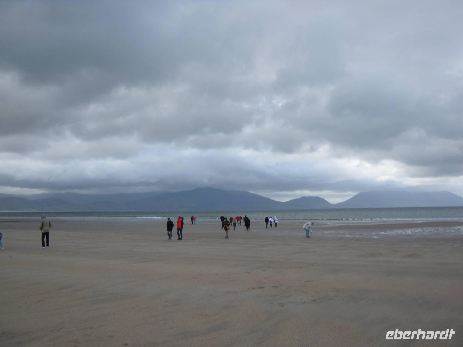 Die Halbinsel Dingle gilt noch als eines der ursprünglich gebliebenen Gebiete in Irland. Wir besuchten zunächst den kilometerlangen Sandstrand am Inch; allemal gut für einen Spaziergang; letztes Jahr haben wir im Sommer hier gebadet. Dann fuhren wir weiter in Richtung Spitze am Slea Head. Bei einem Fotostopp bewiesen Möwen ihre Flugkünste indem sie hochgeworfene Brotstückchen in der Luft auffingen. Das Gallarus Oratory ist einzig in seiner Art und seit vielen Jahrhunderten wasserdicht. Der Hauptort Dingle ist ein beliebtes Urlaubsziel und liegt an einer geschützten Bucht, in der sich schon seit Jahren der Delphin Fudgie tummelt. Sehenswert ist die große Kirche. Über die Berge und vorbei an der Windmühle von Blennerville ging's wieder ins Hotel.
