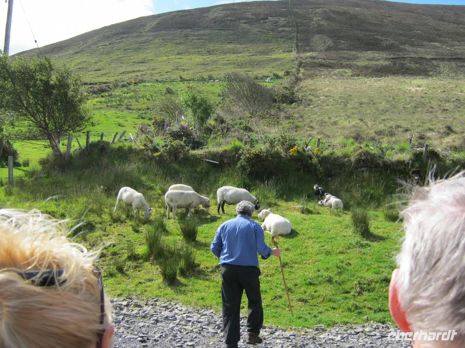Der Ring of Kerry ist definitiv eine der schönsten Panoramarouten der Welt. Ich beginne die Ganztagestour gern mit einem Fotostopp mit Esel und Hündchen um dann bei meinem alten Freund Brandon (einem vielfachen Champion!) die hohe Kunst der Arbeit mit Hunden und Schafen zu bewundern. Für mich, der ich selbst einst einen Border-Collie besaß, immer ein sehr emotionaler Moment. Und Schafe gibt es in zahlreichen Varietäten, wie man dort lernt. An Cahersiveen sind die alte Kaserne sowie die aufgelassene Eisenbahnbrücke besonders malerisch. Überhaupt gab es früher sehr viel mehr Eisenbahnstrecken in Irland als heutzutage; eigentlich schade. Die Mittagspause machten wir in Waterville, wo Charlie Chaplin oft gern gesehener Urlaubsgast war. Ein Gruppenbild mit ihm ist obligatorisch. Und in der Lobster Bar konnten wir landestypische Spezialitäten genießen. Unterwegs haben wir uns natürlich über den Great Liberator unterhalten, da wir an seinem Geburtsort sowie seinem Wohnsitz vorbeifuhren. Sneem mit seinen beiden Kirchen und beiden Marktplätzen ist anheimelnd. Über Moll's Gap zum Ladies View, der mit seiner unvergleichlichen Aussicht über die Killarney-Seen schon Queen Victoria begeistert hat und dann in Serpentinen hinunter zum Muckross House. Im Park kann man sich nicht satt sehen und so ging es schon zahlreichen Malern und Dichtern. Und dort steht - singulär in seiner Kraft und Schönheit - „mein Freund der Baum" aller Bäume. Ausgerechnet hier musste mein Fotoapparat versagen! Die Seele aber ist voll von den Eindrücken eines solchen Tages.