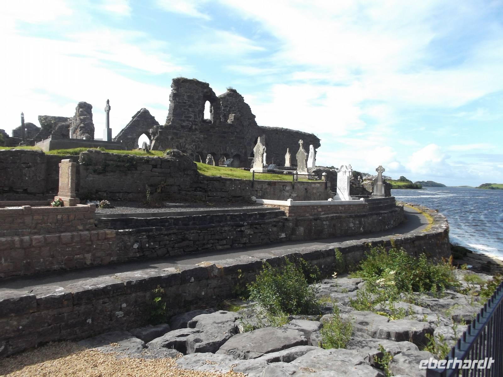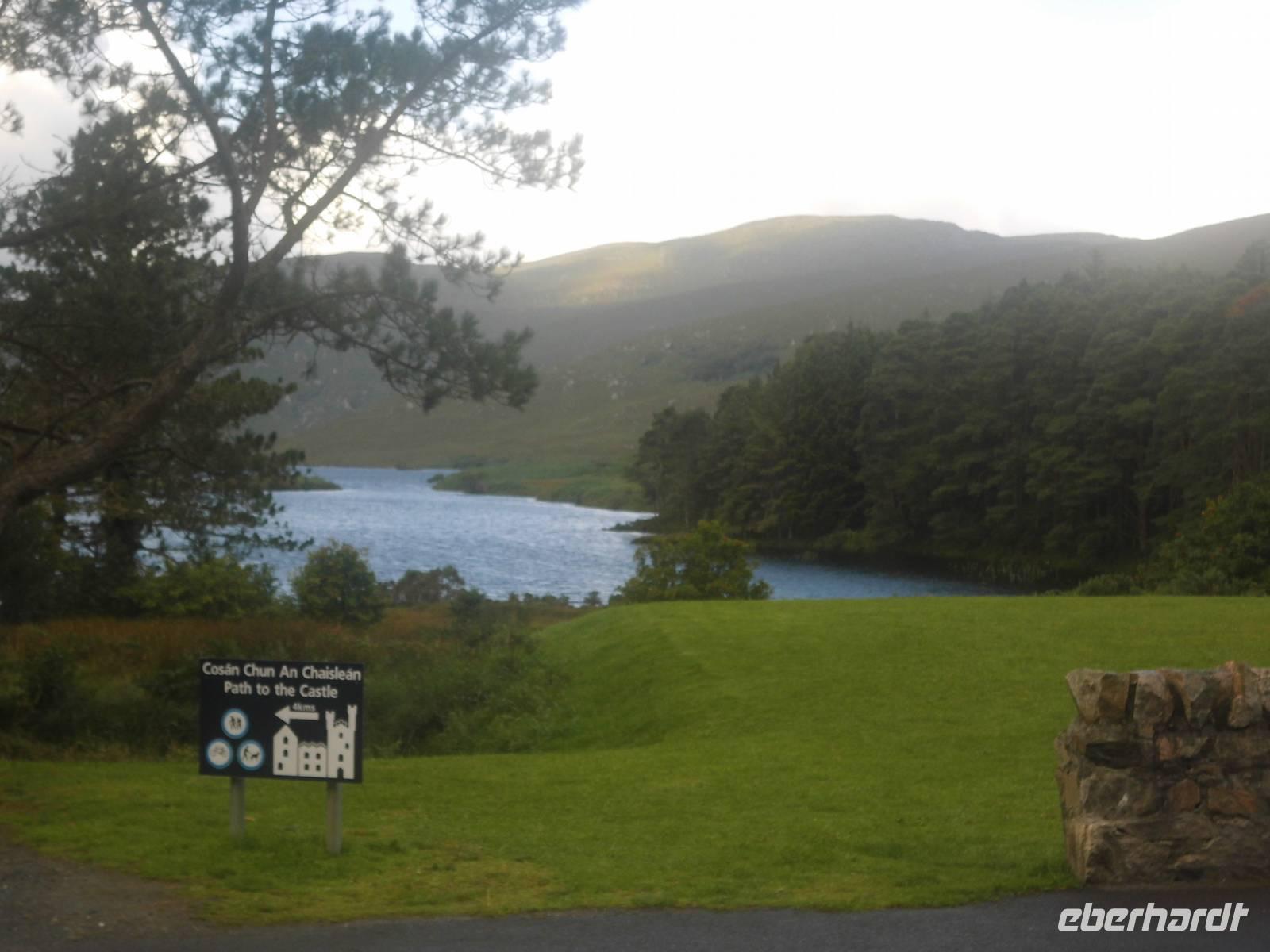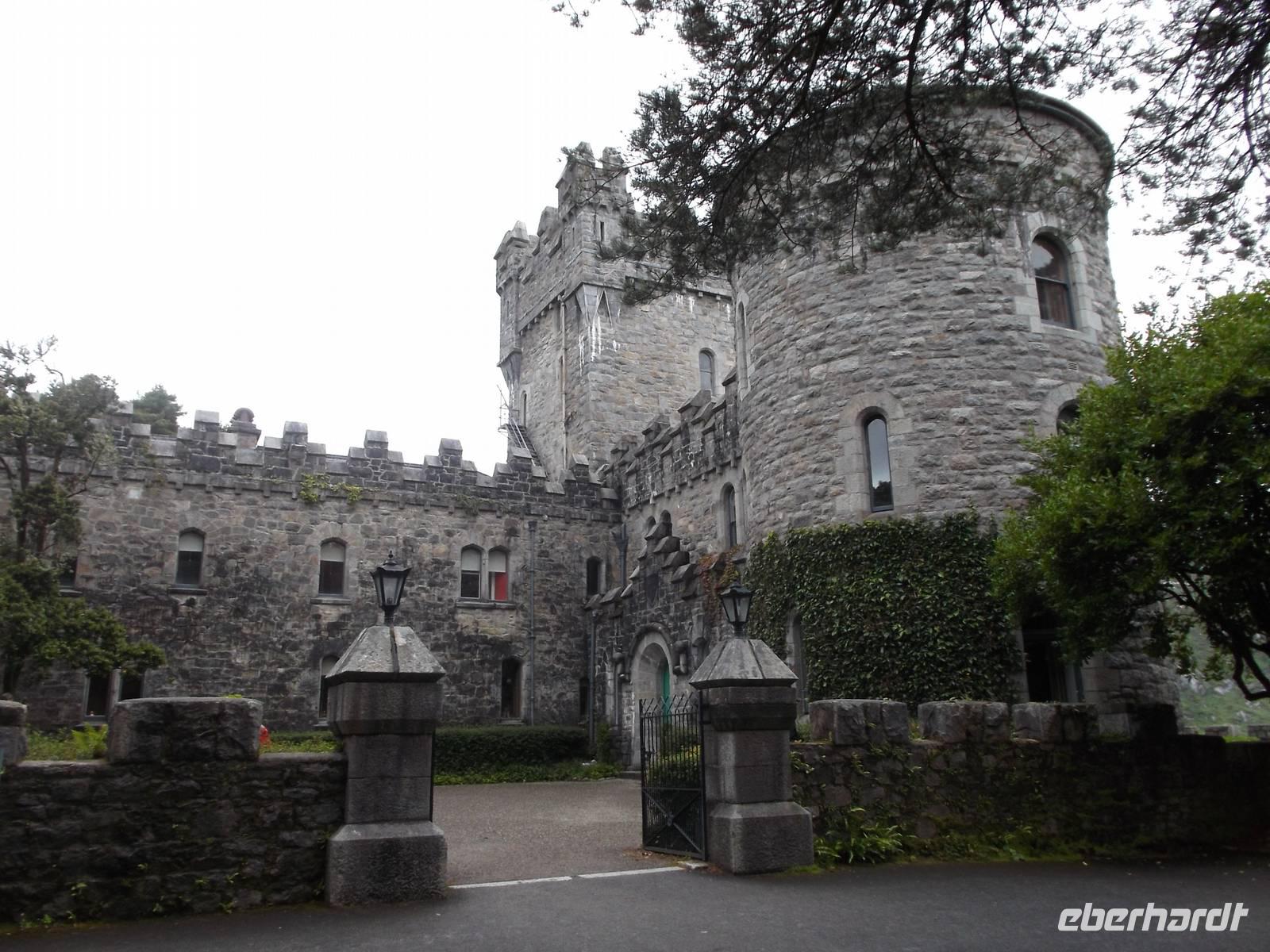 Danach setzten wir unsere Rundfahrt um die „Twelve Bens" fort, wie das nördliche Gebirge Connemaras heißt, dessen höchste Erhebung, der Benbaum, 730 m über dem Meeresspiegel liegt. Eine Pause legten wir in der malerische am See gelegenen Abtei von Kylemore ein. Deren Geschichte reicht zurück auf die älteste irischen Benediktinerinnenabtei, 1665 gegründet und nach vielfachen Umzügen hierher gelangt. Seit 1920 haben die Nonnen ihr Domizil in dem 1871 fertiggestellten Schloss Kylemore gefunden. Das war um 1870 von einer Industriellenfamilie erbaut worden und nach mehrfachem Besitzerwechsel zusammen mit dem riesigen Park vom Benediktinerorden erworben worden.